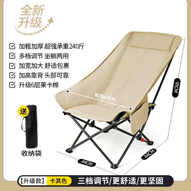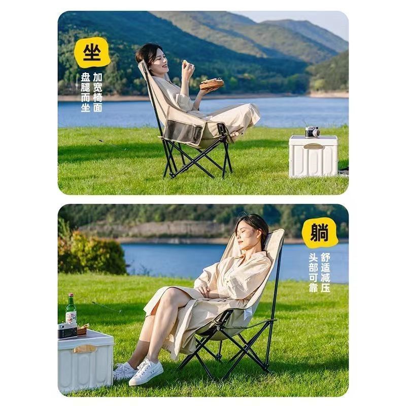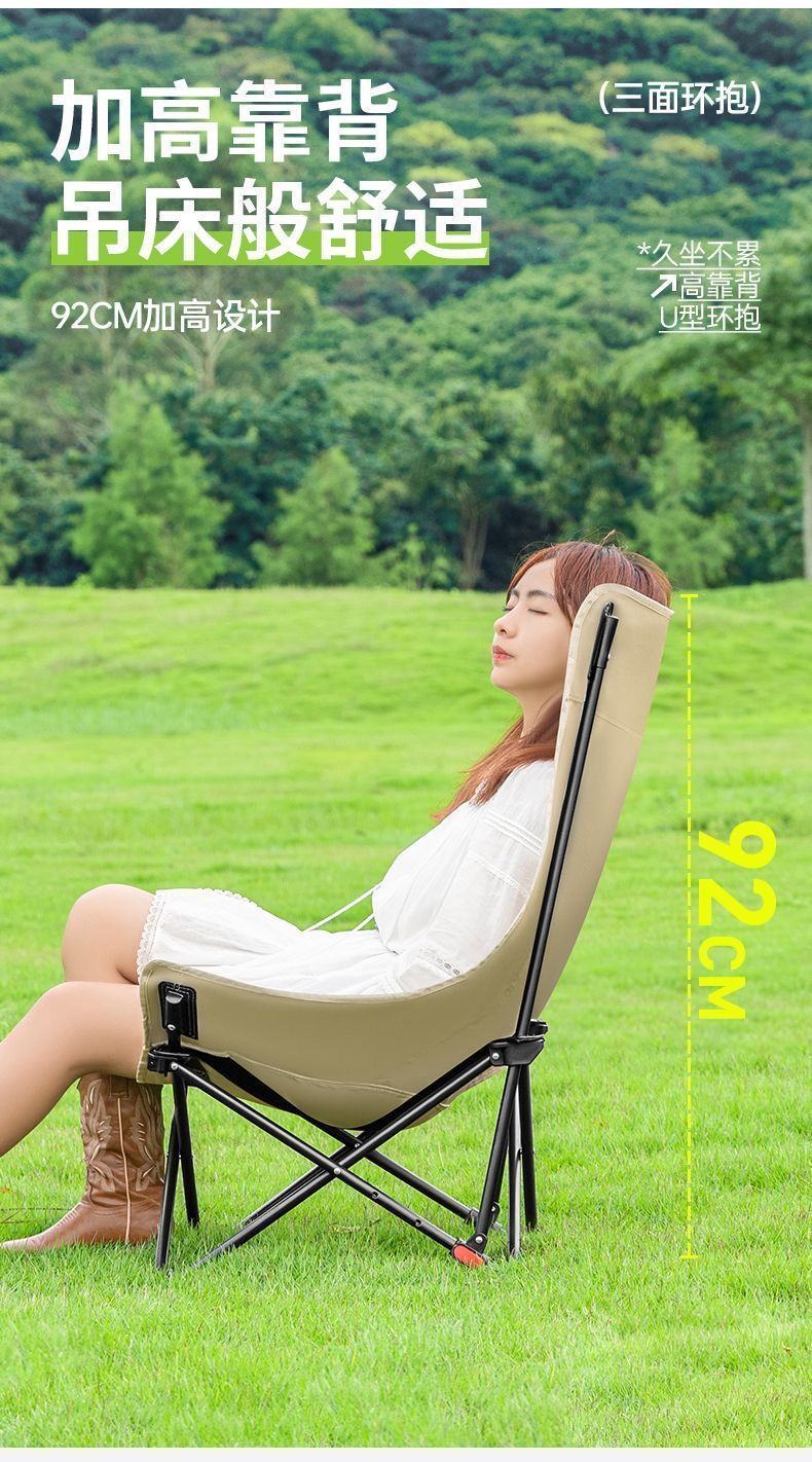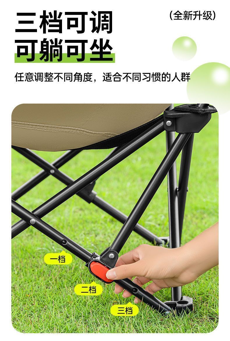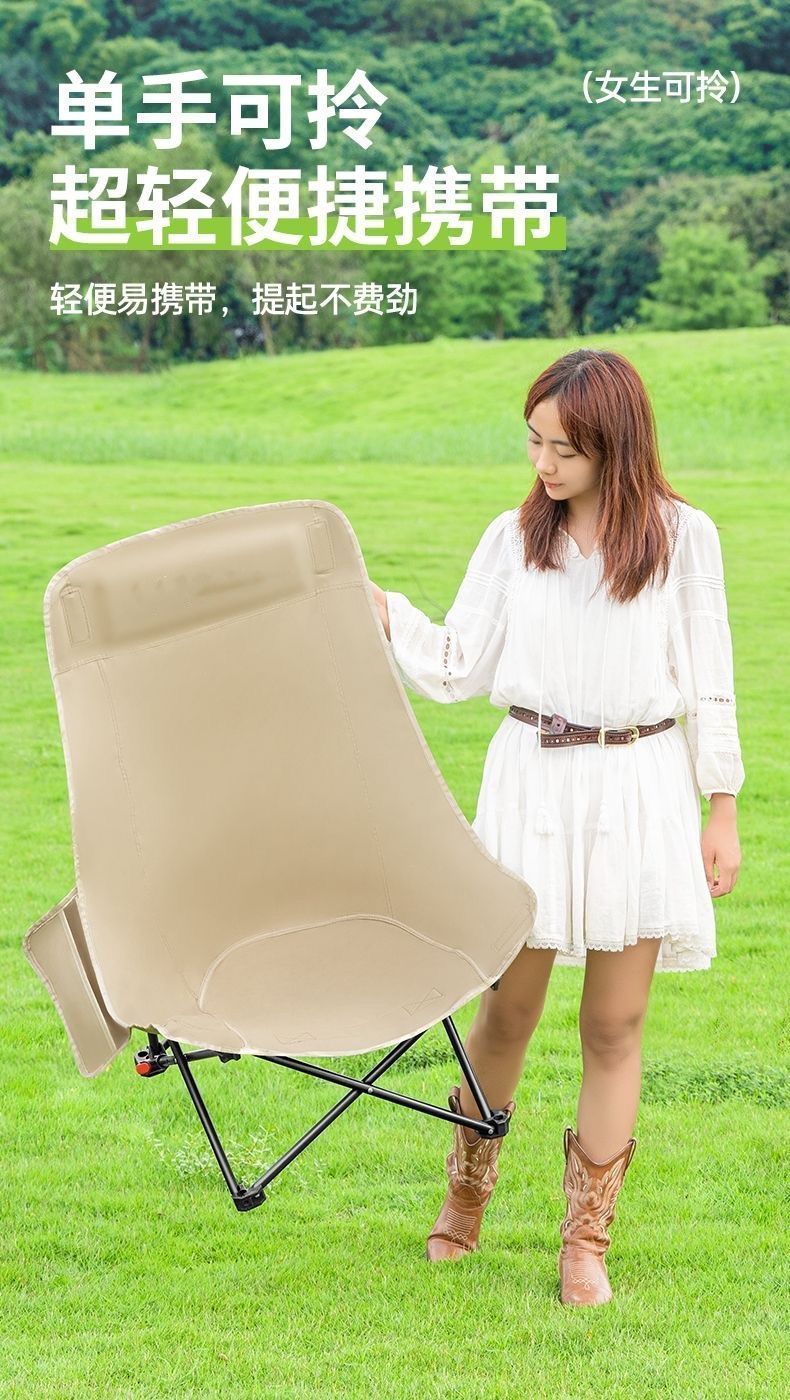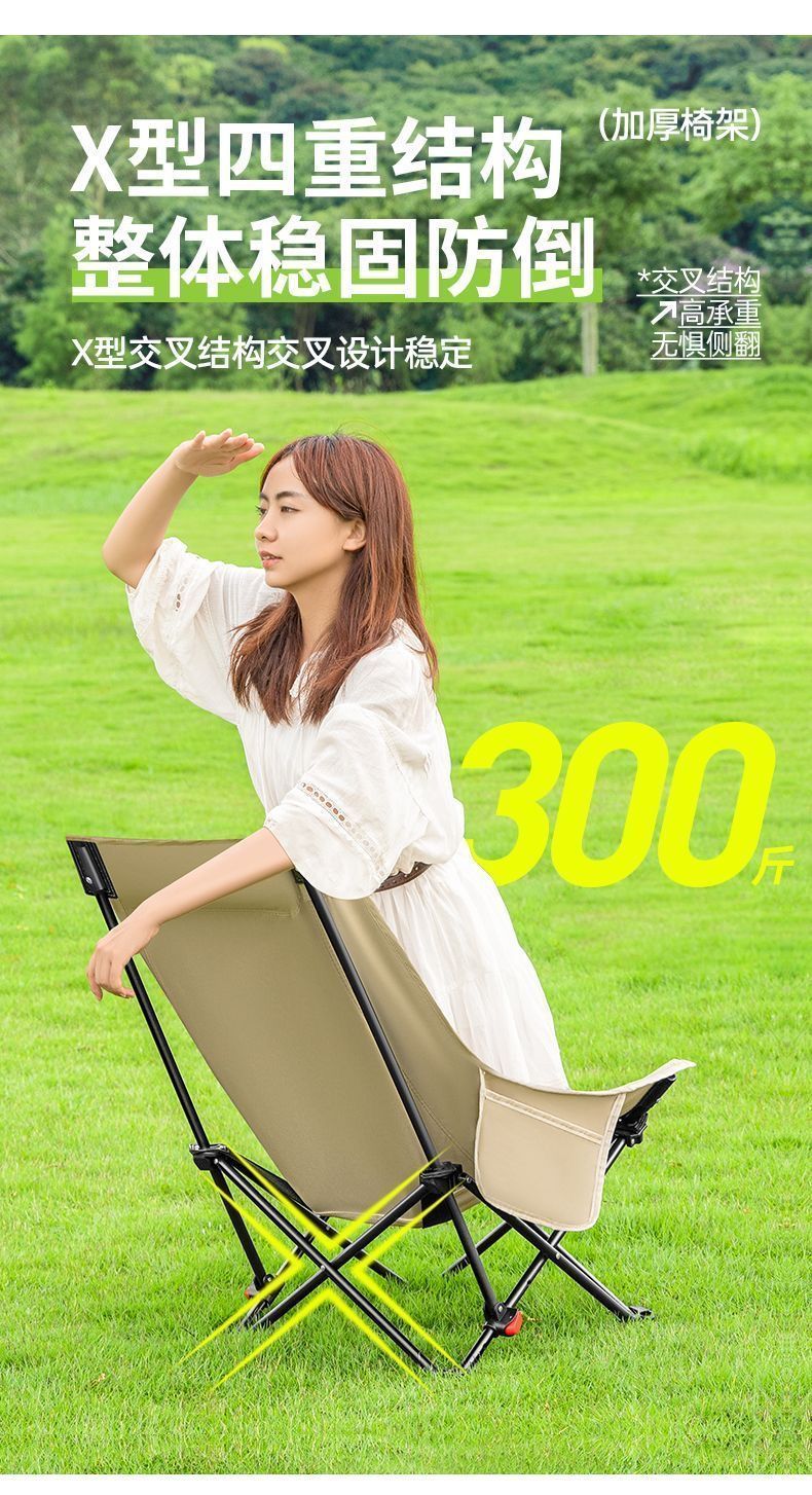 户外折叠椅月亮椅加固加高舒适超轻野餐椅便携露营椅钓鱼写生椅
