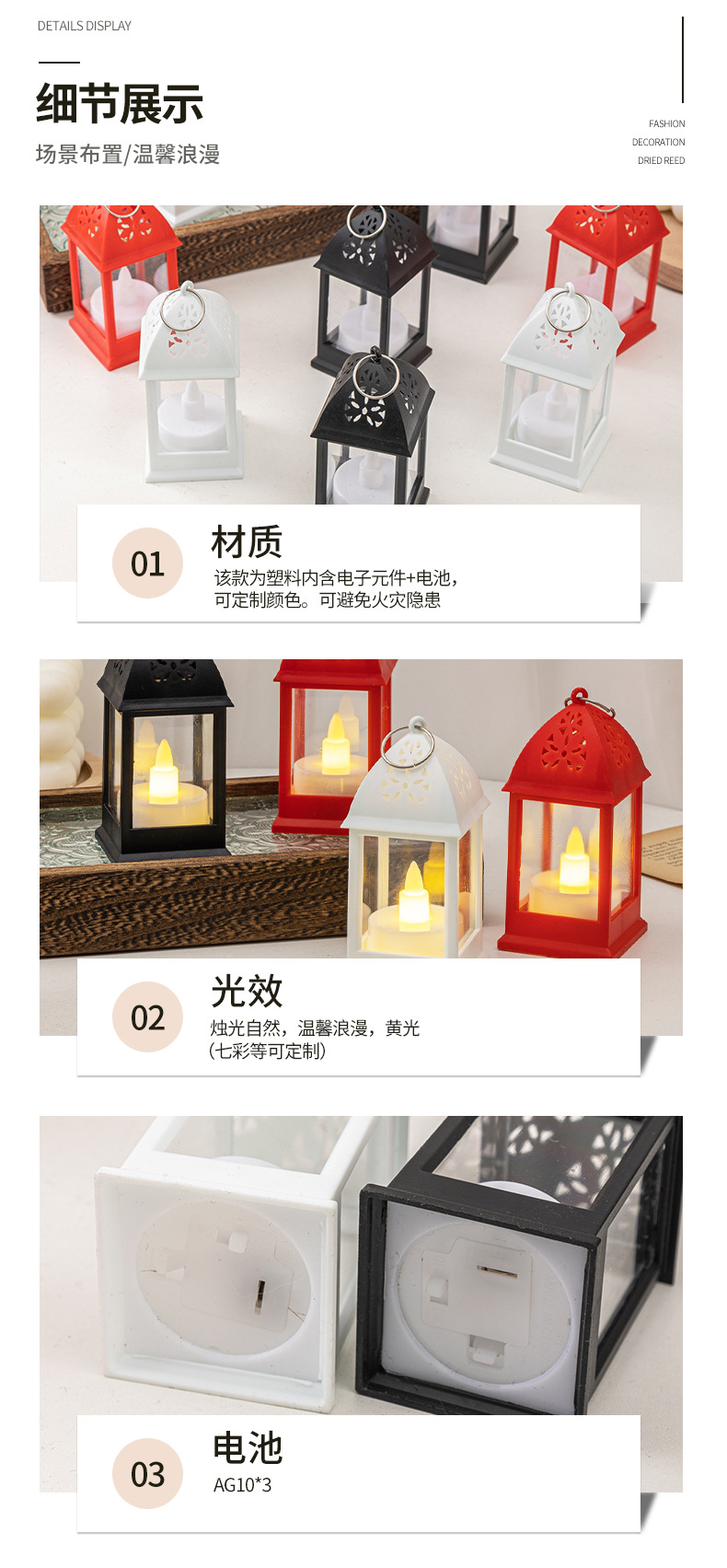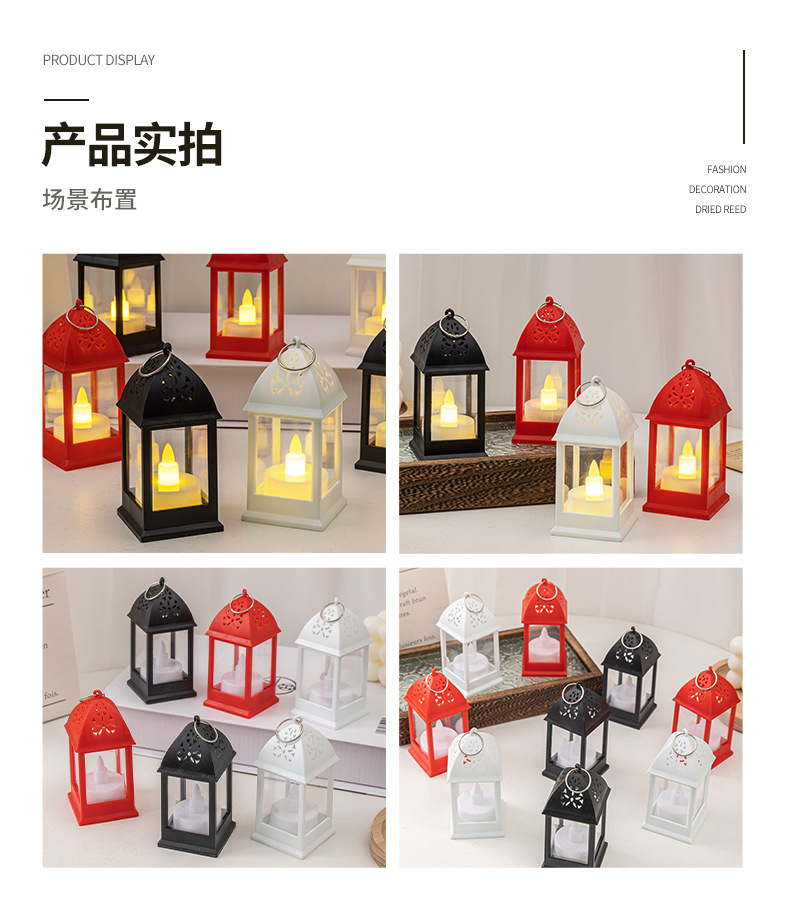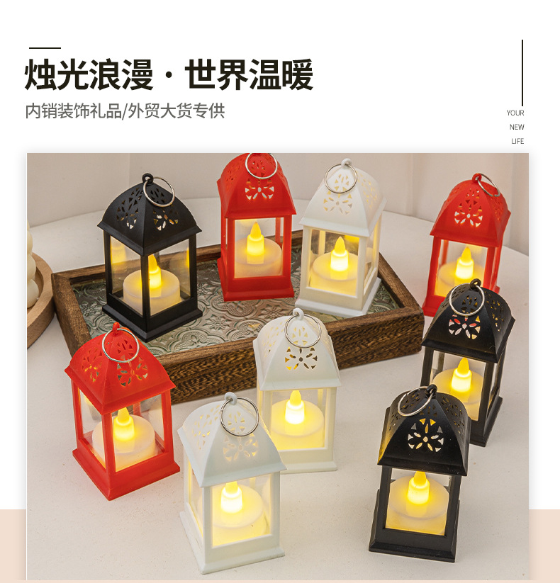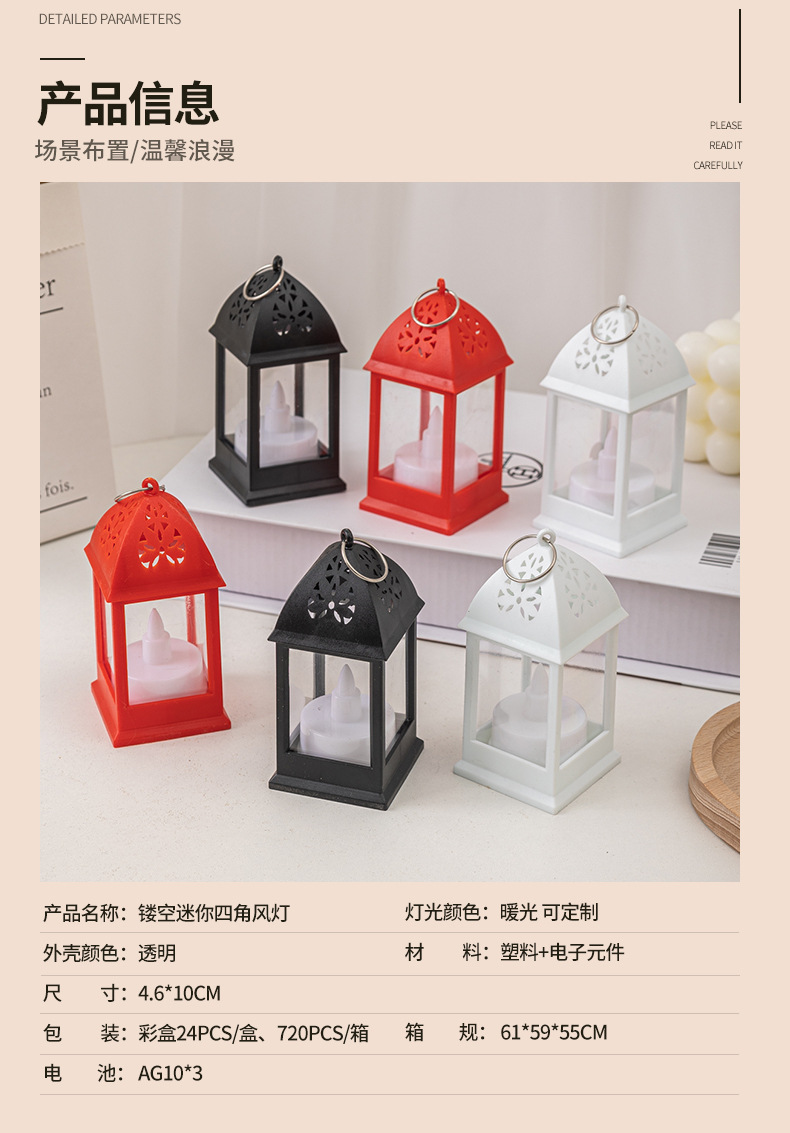 镂空四角风灯LED电子灯煤油灯灯笼家居客餐厅圣诞氛围装饰小夜灯