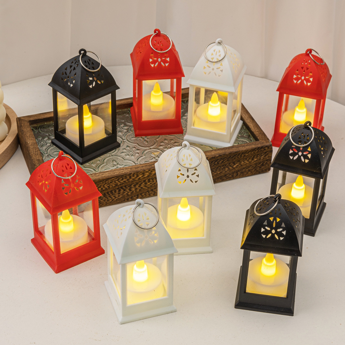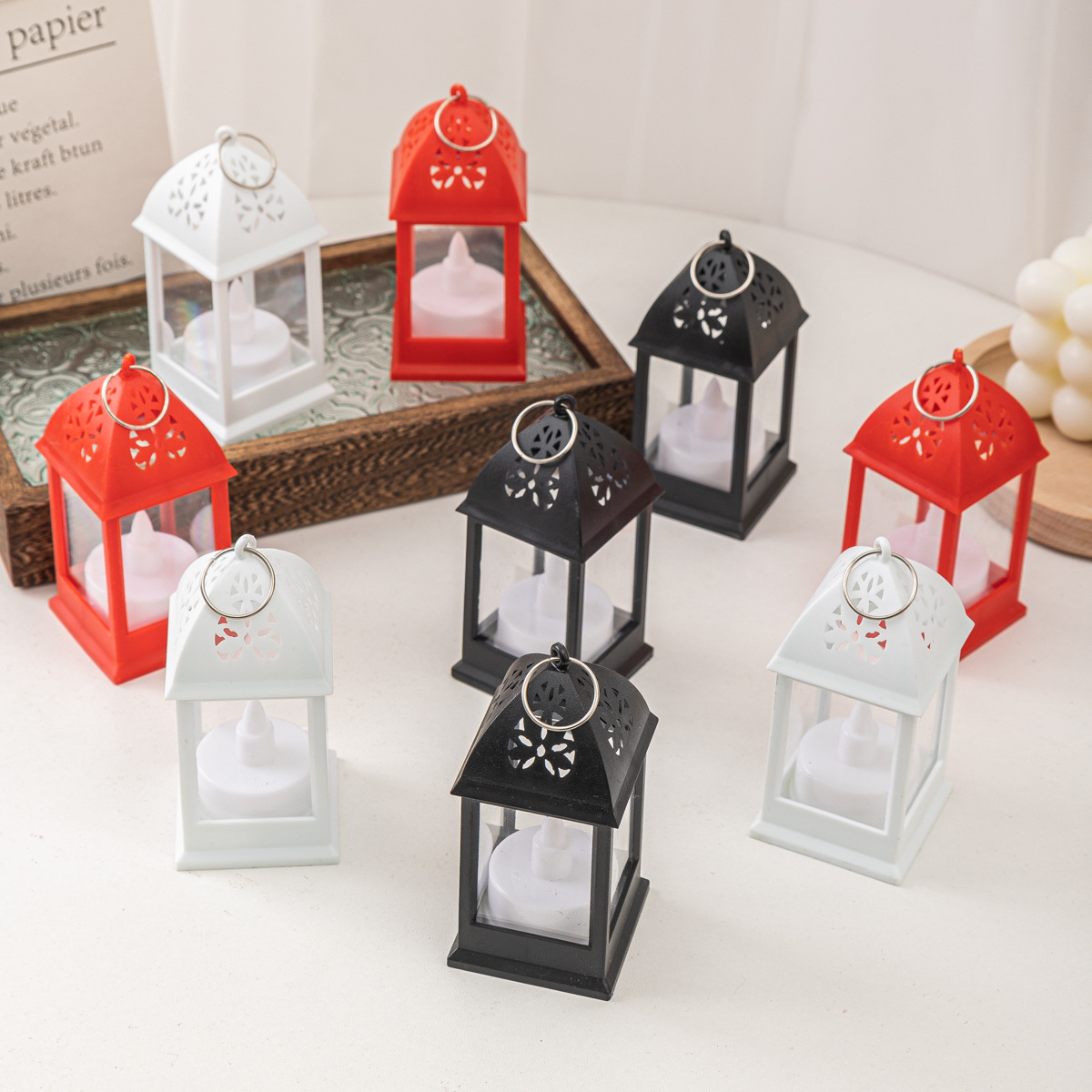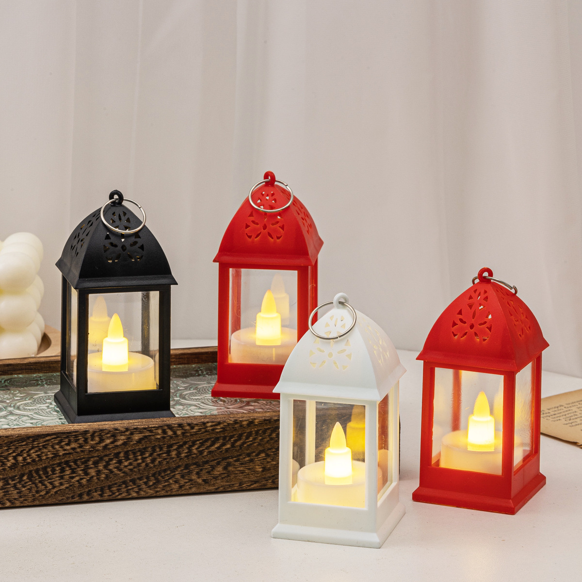 镂空四角风灯LED电子灯煤油灯灯笼家居客餐厅圣诞氛围装饰小夜灯