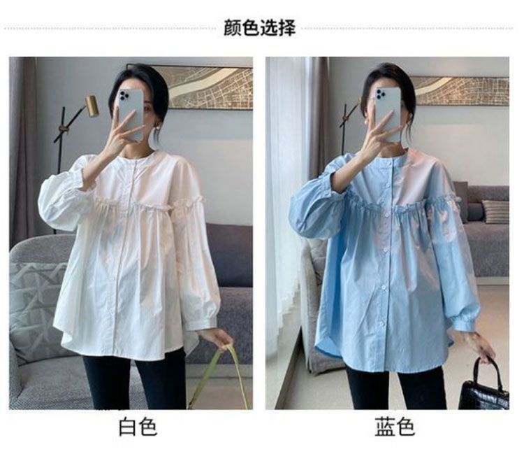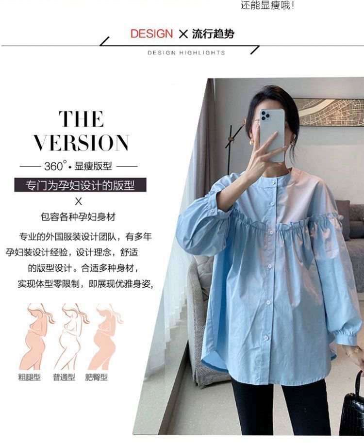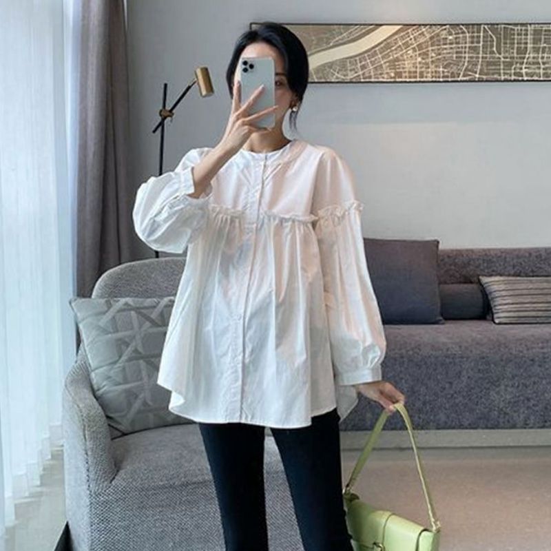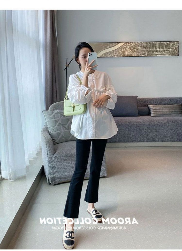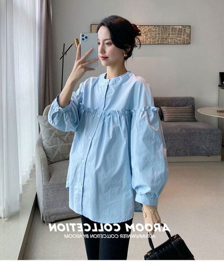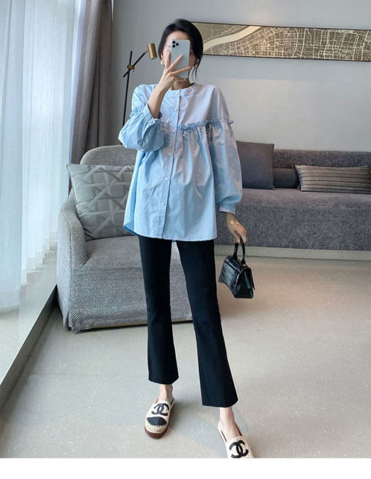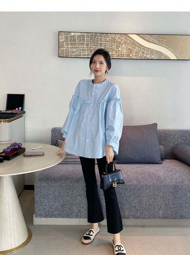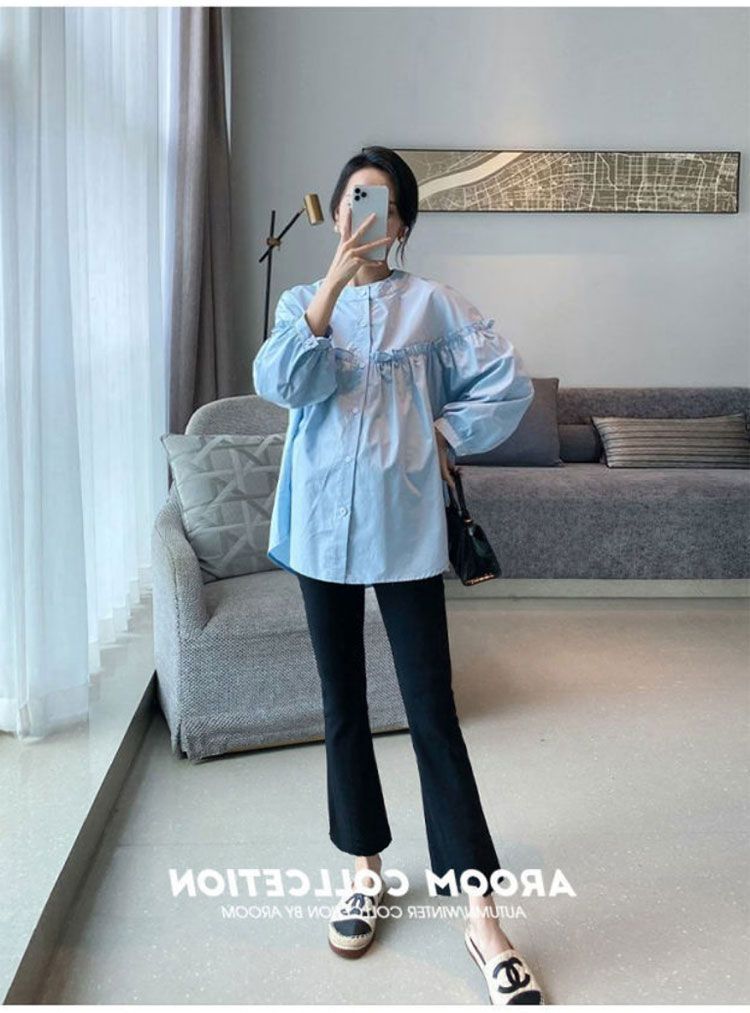孕妇套装纯棉春装外出时尚洋气衬衫淑女春秋季娃娃衫托腹裤两件套