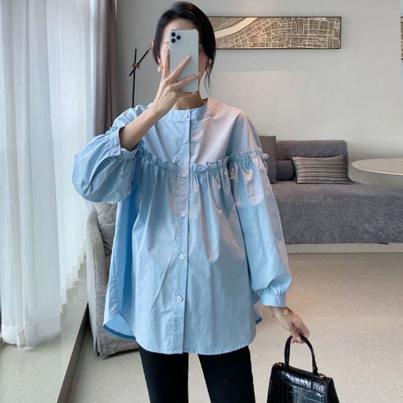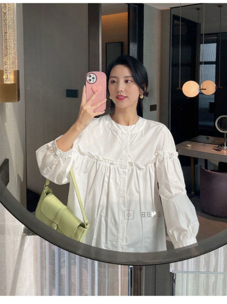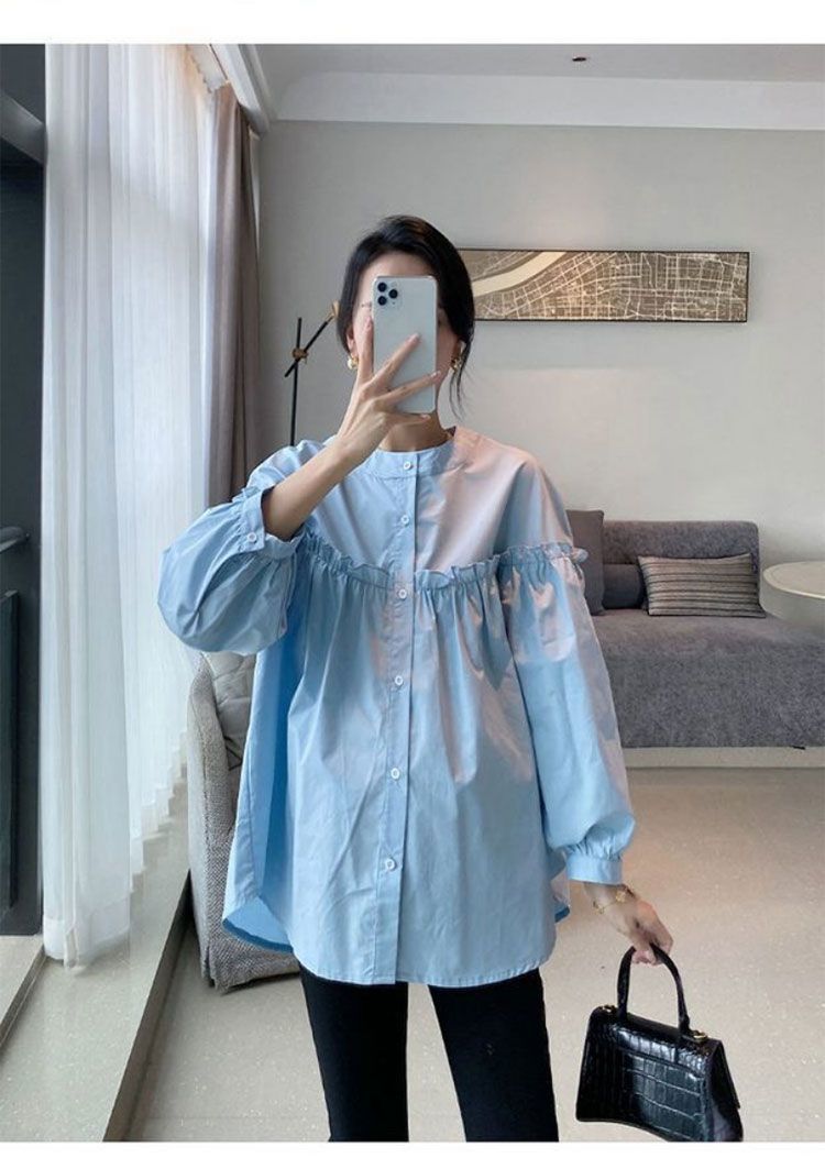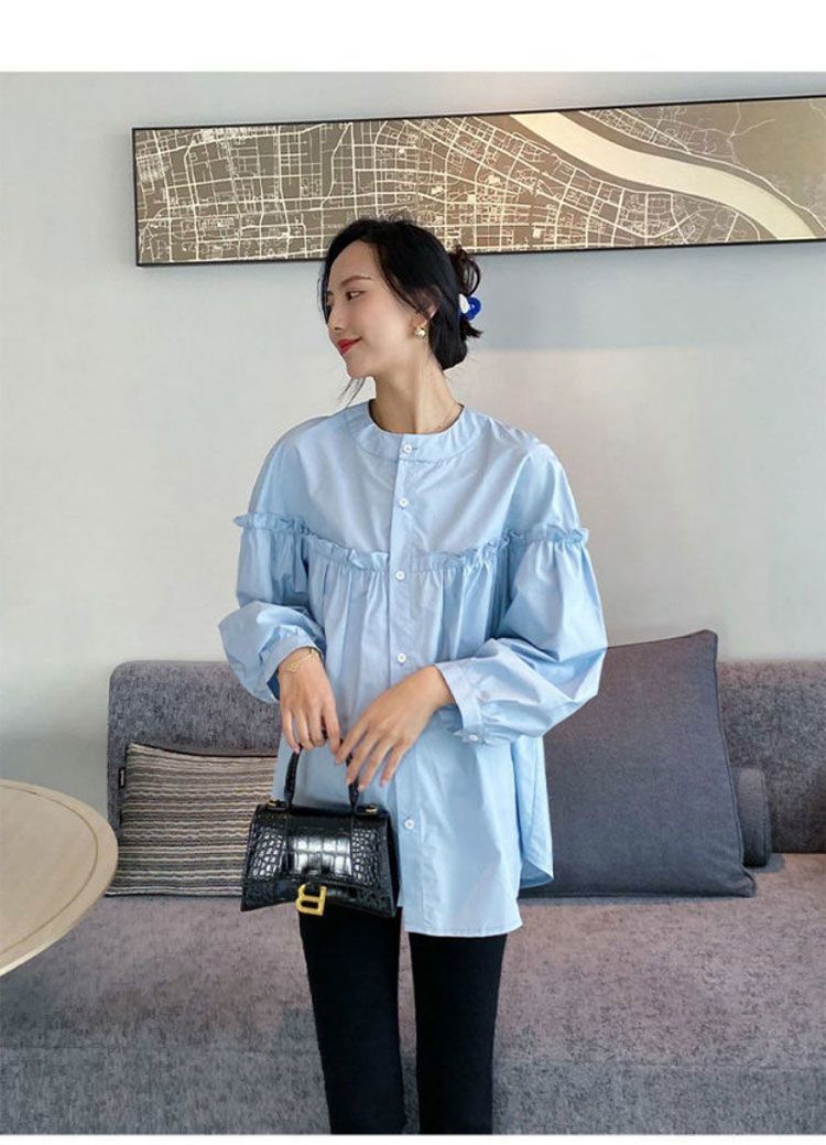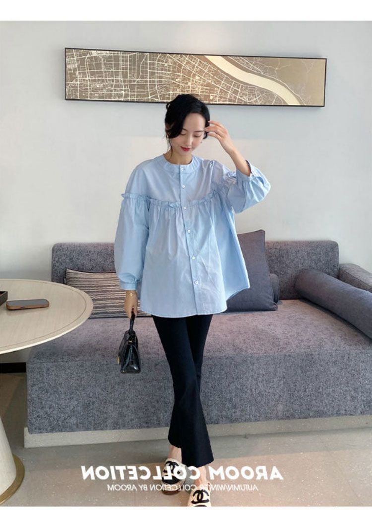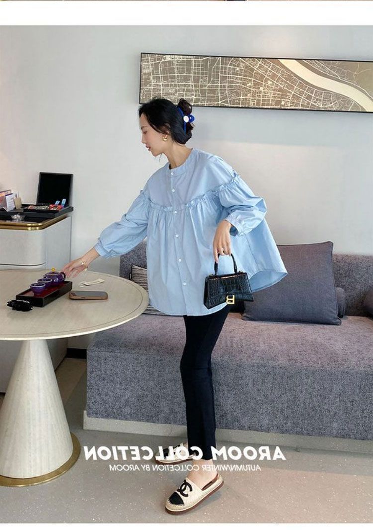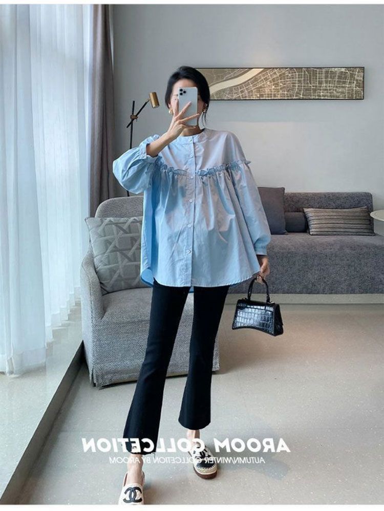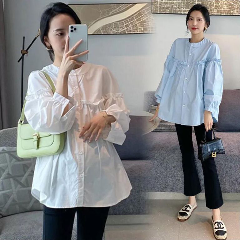 孕妇套装纯棉春装外出时尚洋气衬衫淑女春秋季娃娃衫托腹裤两件套