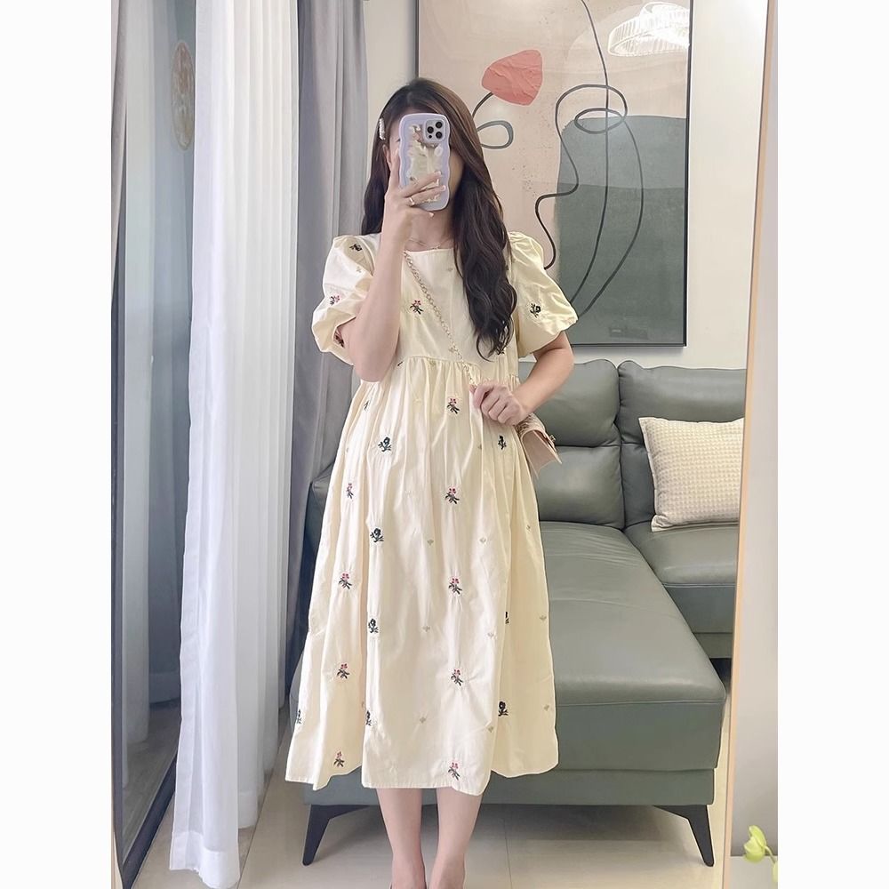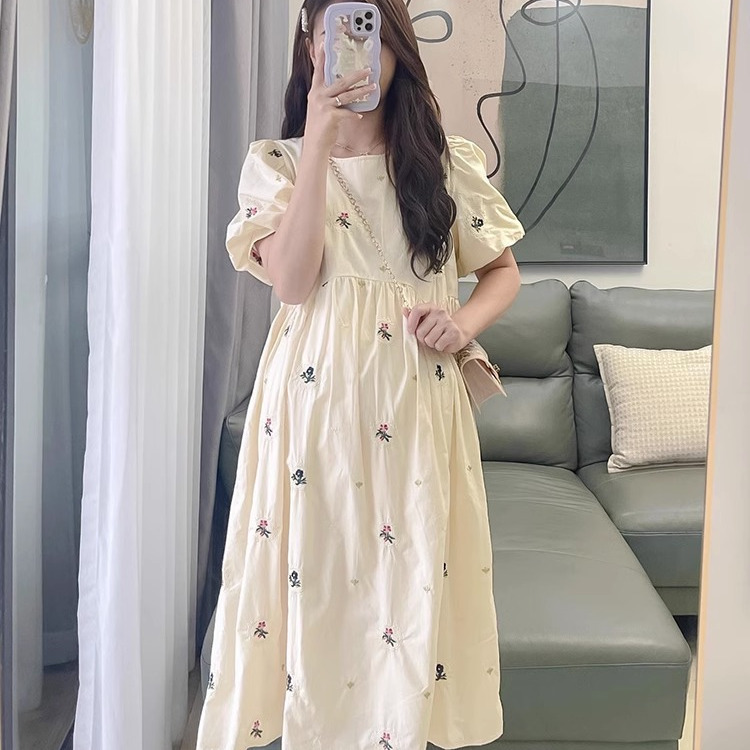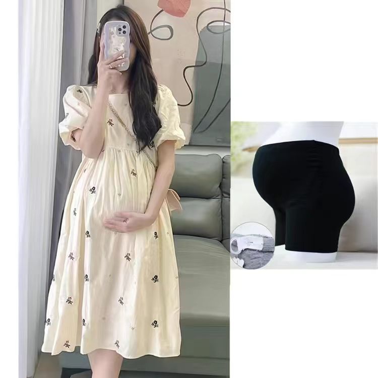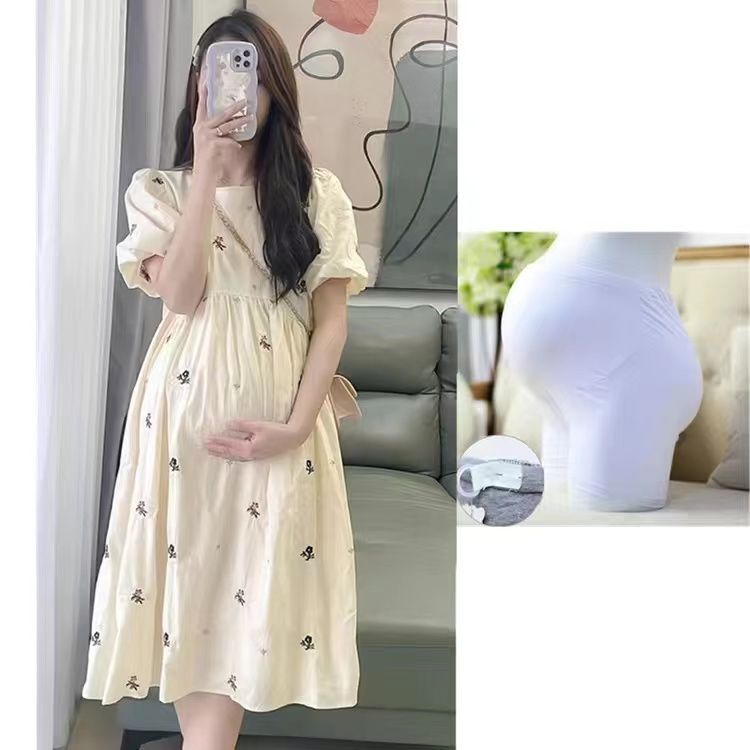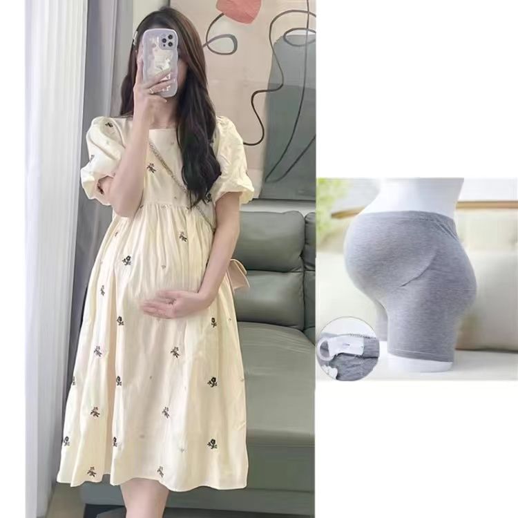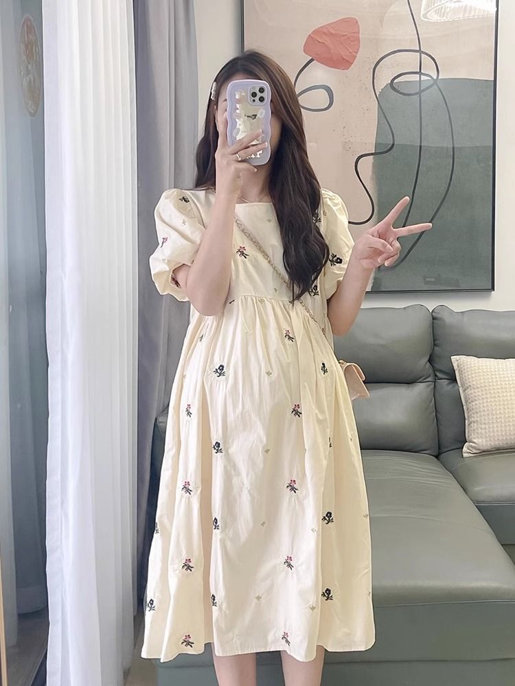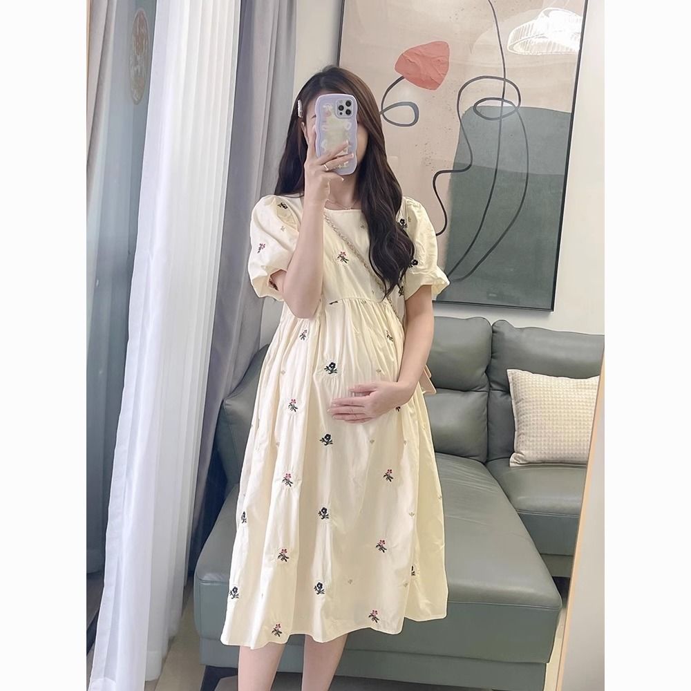 孕妇夏装连衣裙2024新款洋气法式泡泡袖碎花裙小个子孕妇夏季套装