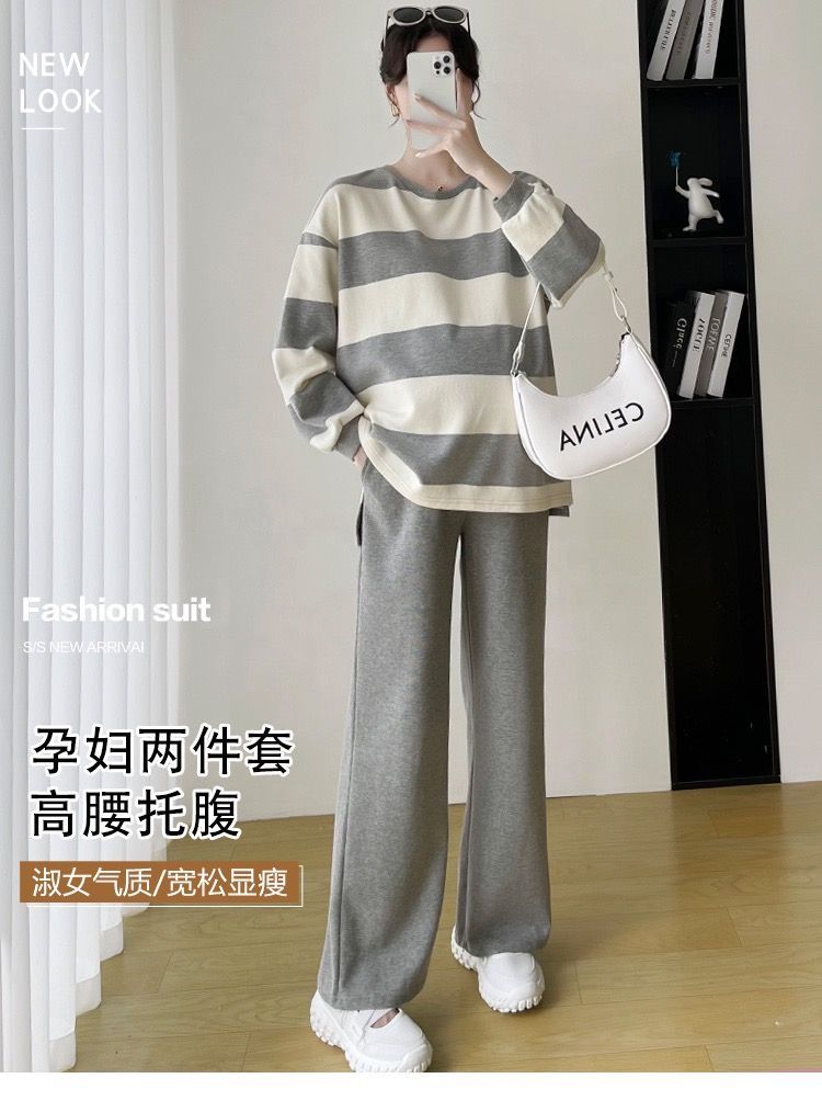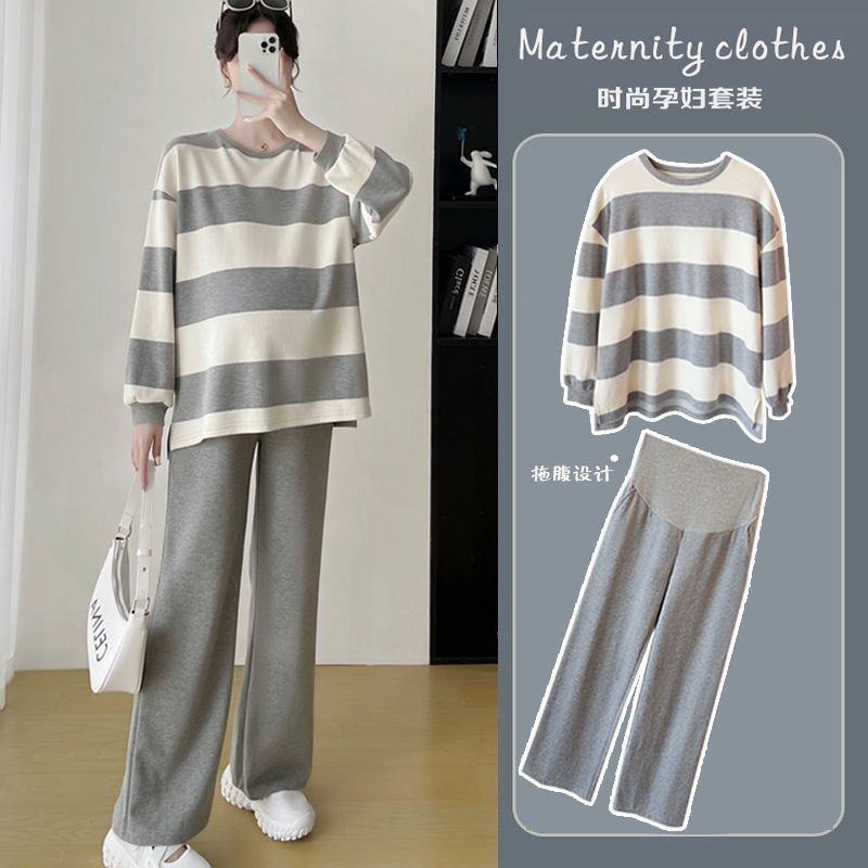 孕妇春装套装2024时尚新款春秋上衣早秋运动孕晚期秋款卫衣两件套