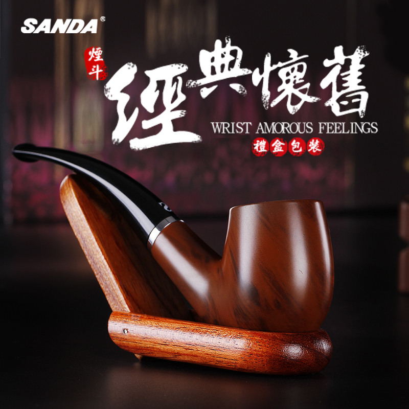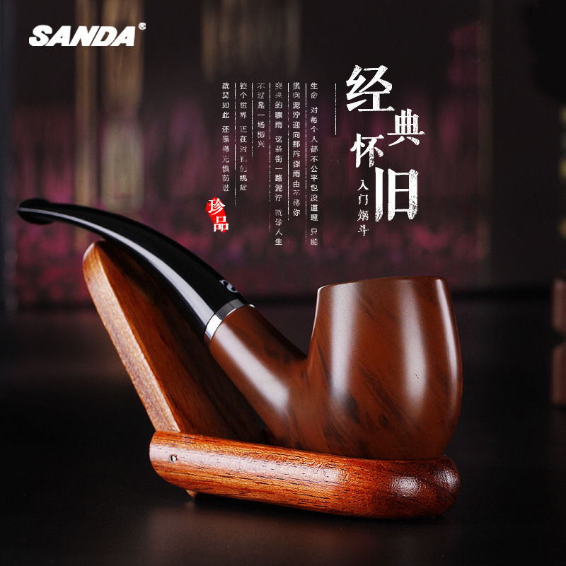 SANDA三达经典怀旧入门烟斗 烟斗烟丝斗胶木弯式烟斗循环过滤烟斗