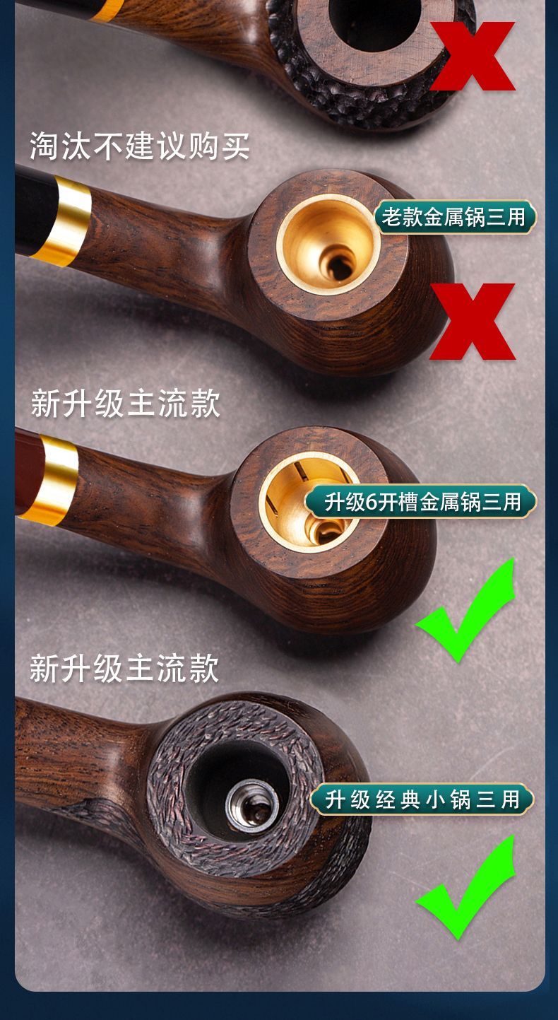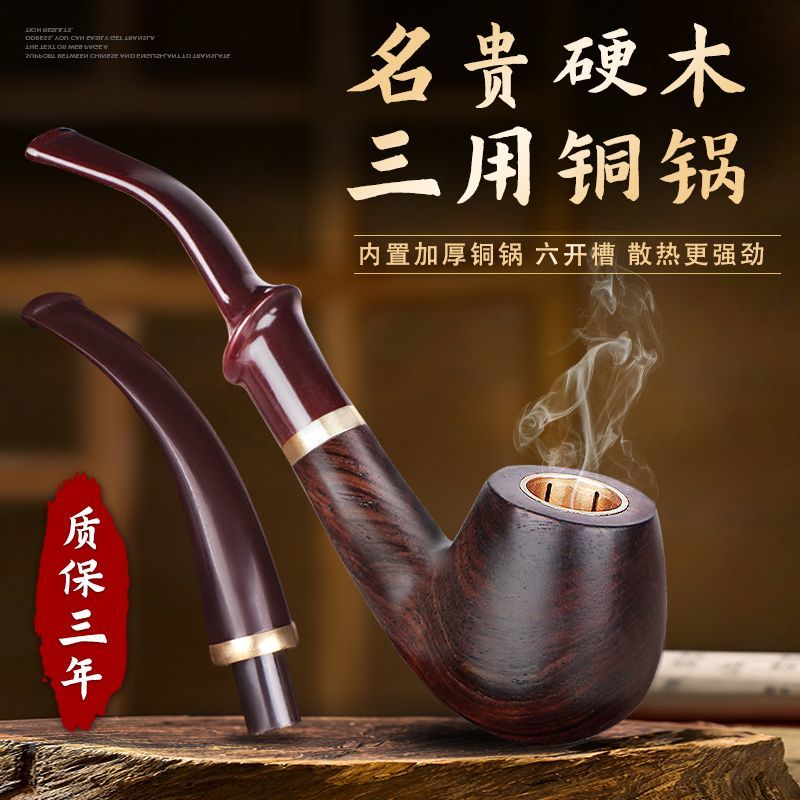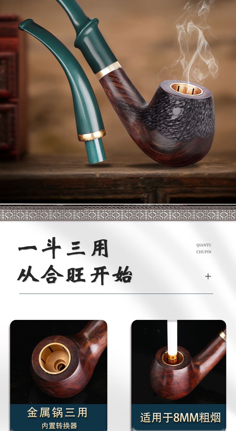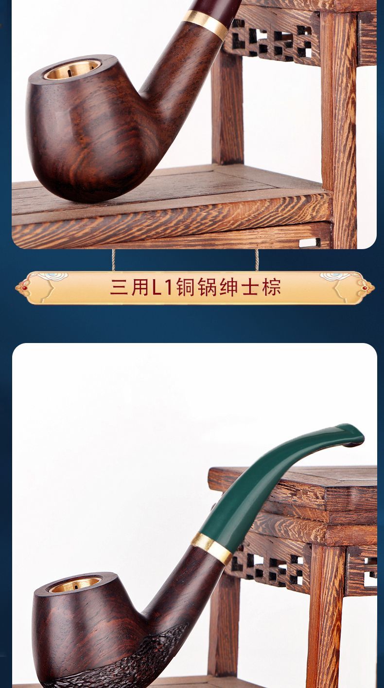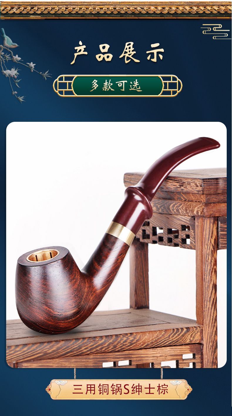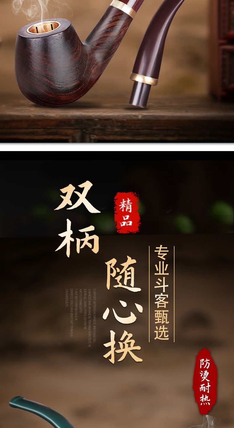 实木烟斗男士传统手工进口石楠木老式旱烟过滤斗三用弯式烟斗配件