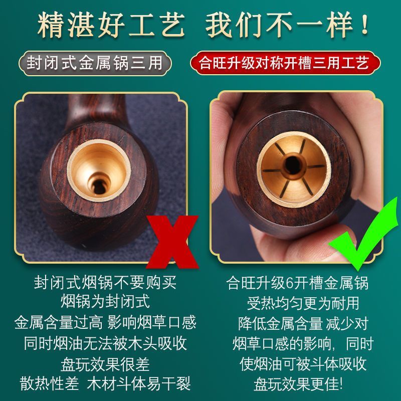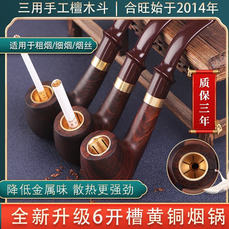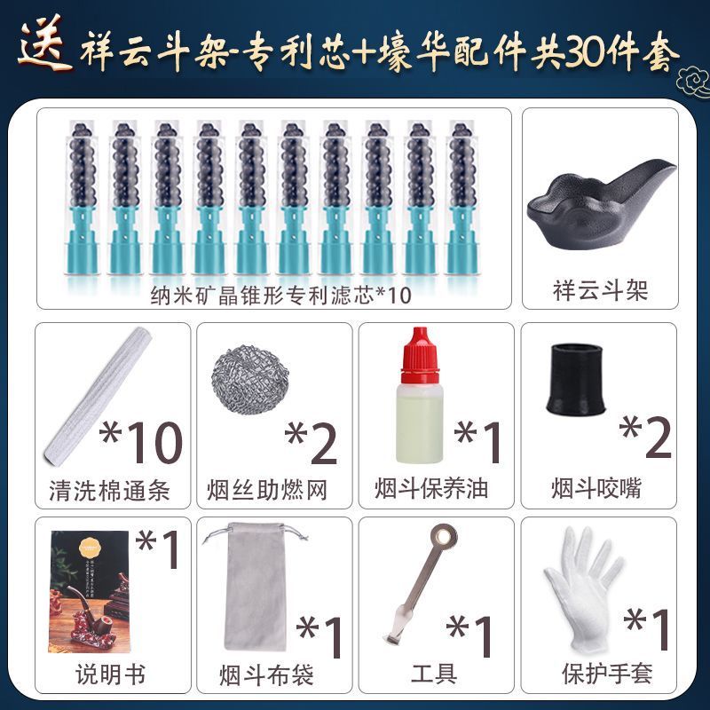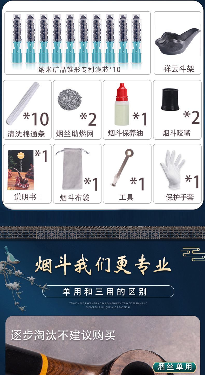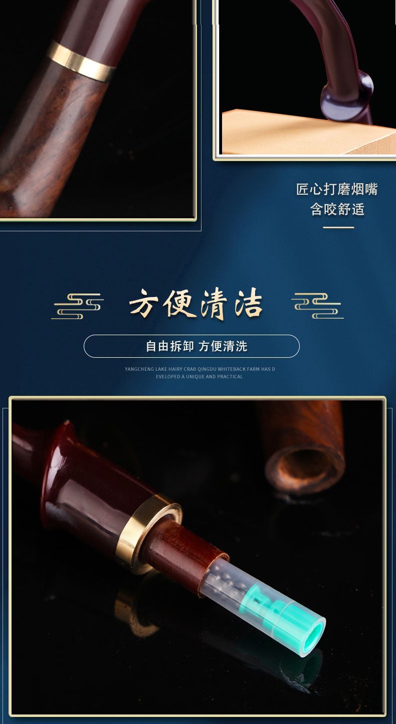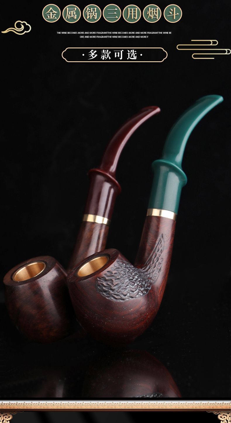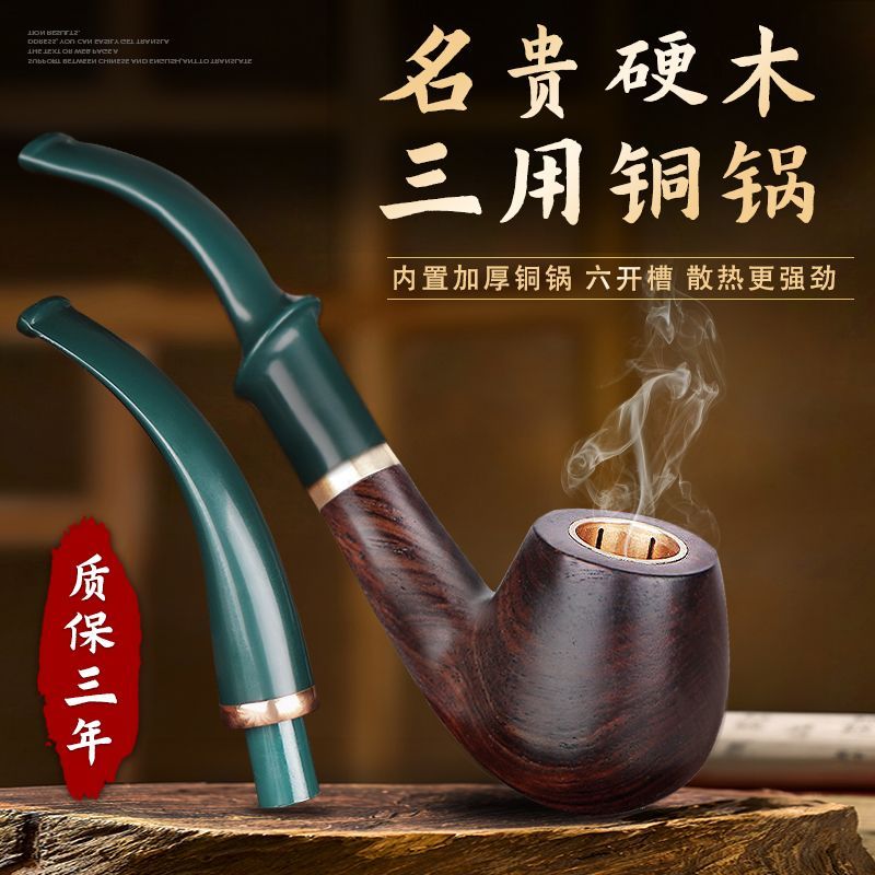 实木烟斗男士传统手工进口石楠木老式旱烟过滤斗三用弯式烟斗配件