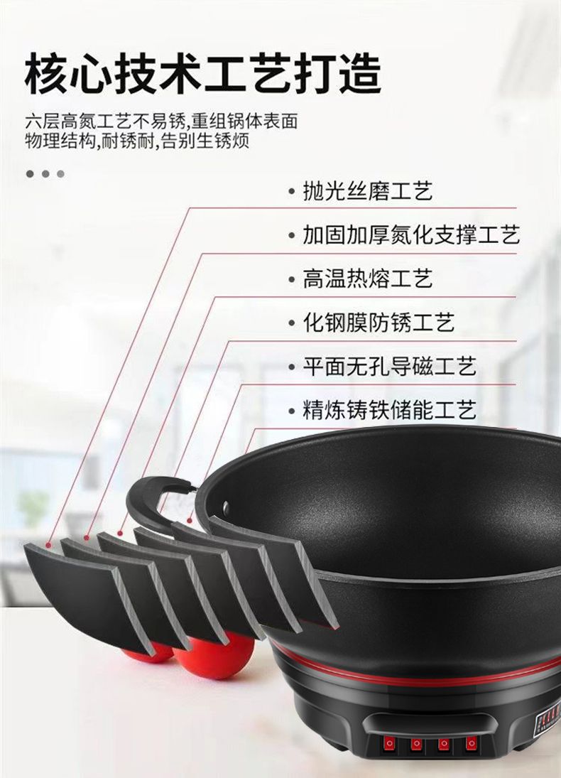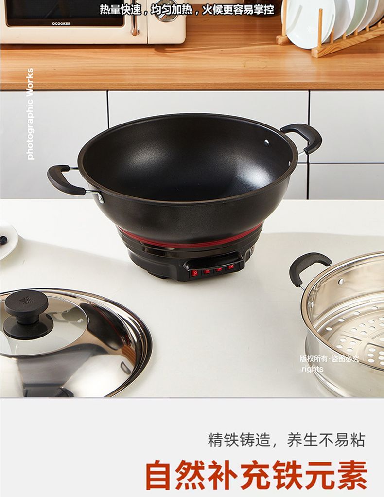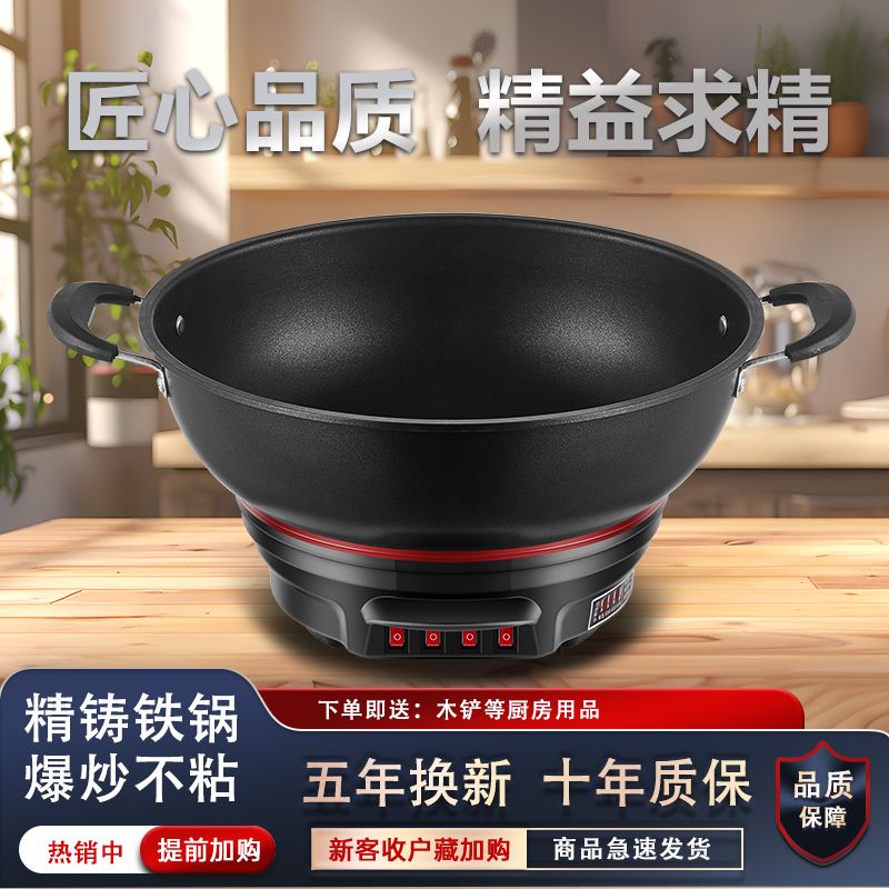 电炒锅不粘锅加厚电热锅铸铁电锅煮饭蒸炖一体式插电新款电炒锅