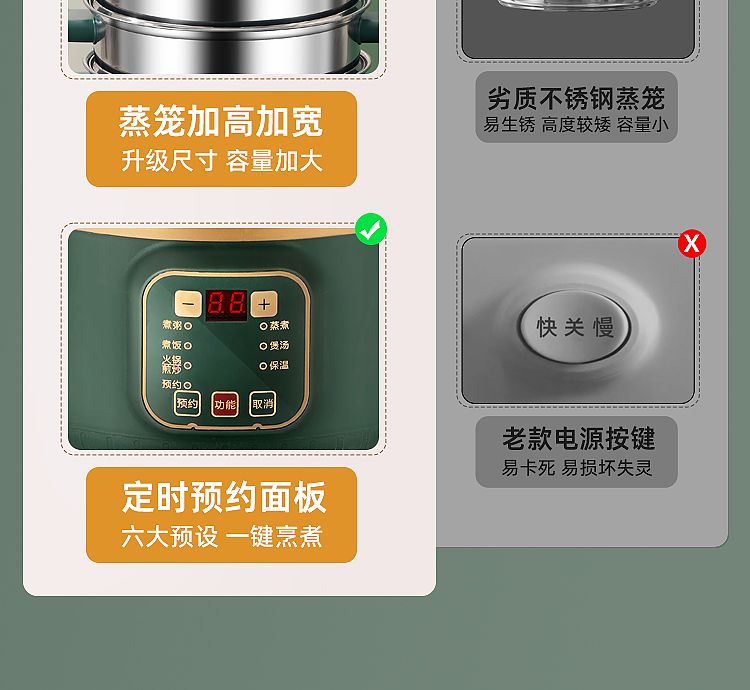 | 1.8l [suitable for 1 person] with steamer(1.8L【适合1人】带蒸笼) | USD $11.76 | 999999 piece available |