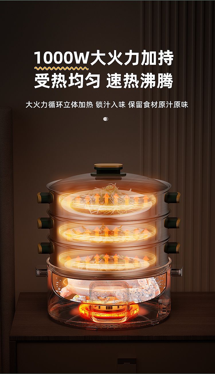 | 4.8l [suitable for 4-6 people] three steamer(4.8L【适合4-6人】三蒸笼) | USD $21.12 | 999999 piece available |
