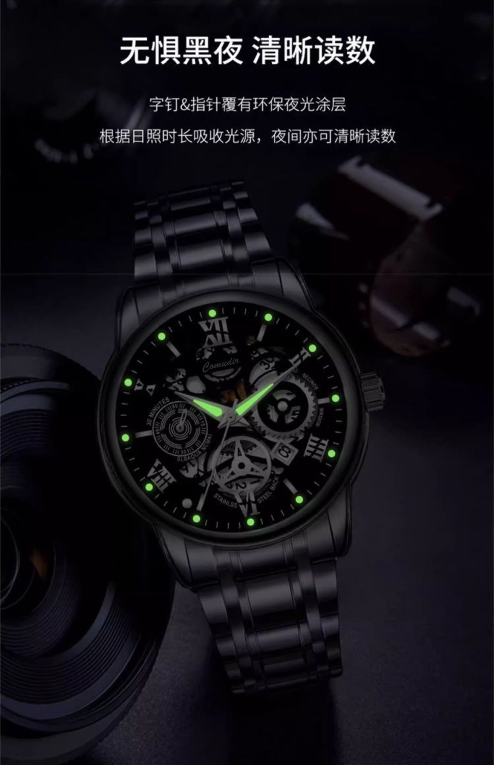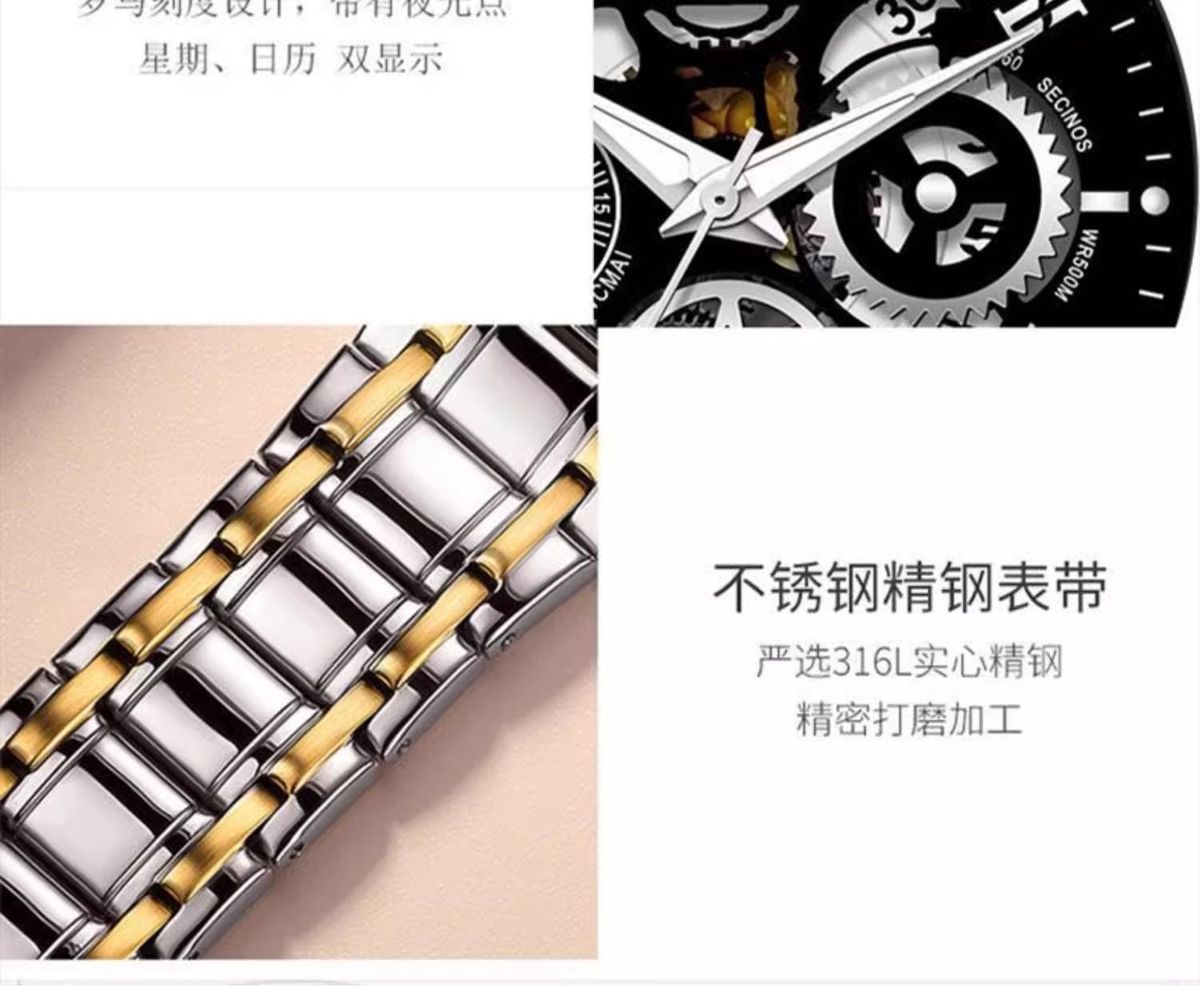 正品全自动机械表男士手表防水夜光运动潮流生日礼物新款镂空男款