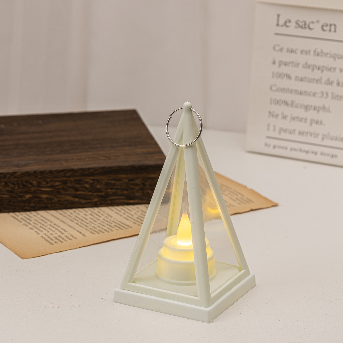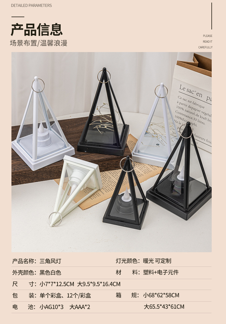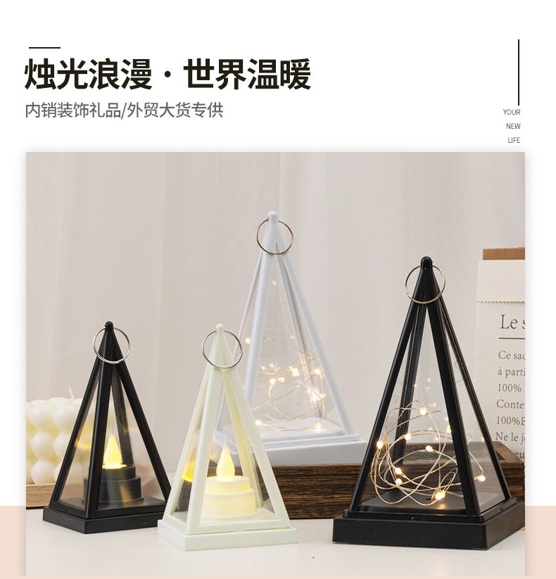 跨境热卖三角风灯LED电子三角蜡烛灯家庭节日氛围装饰灯笼小提灯