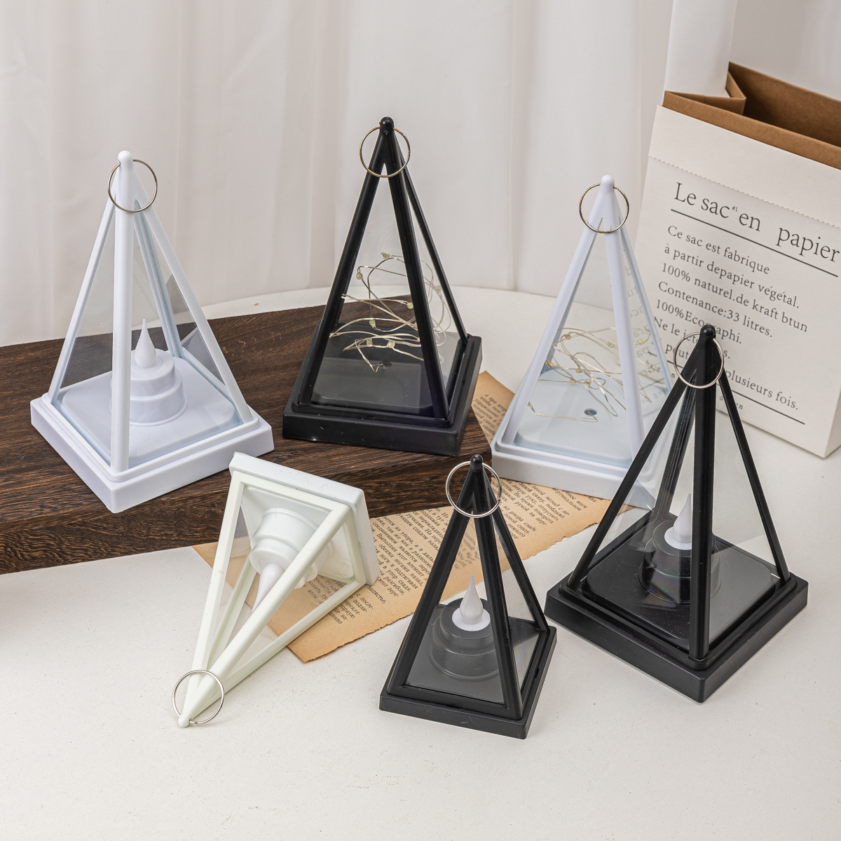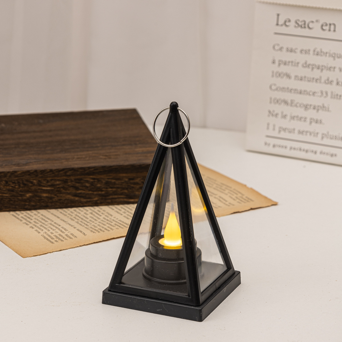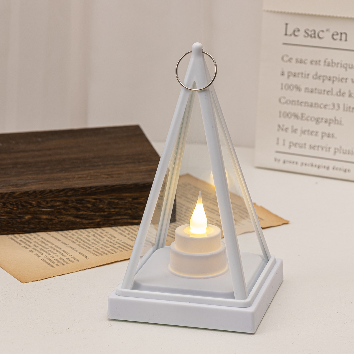 跨境热卖三角风灯LED电子三角蜡烛灯家庭节日氛围装饰灯笼小提灯