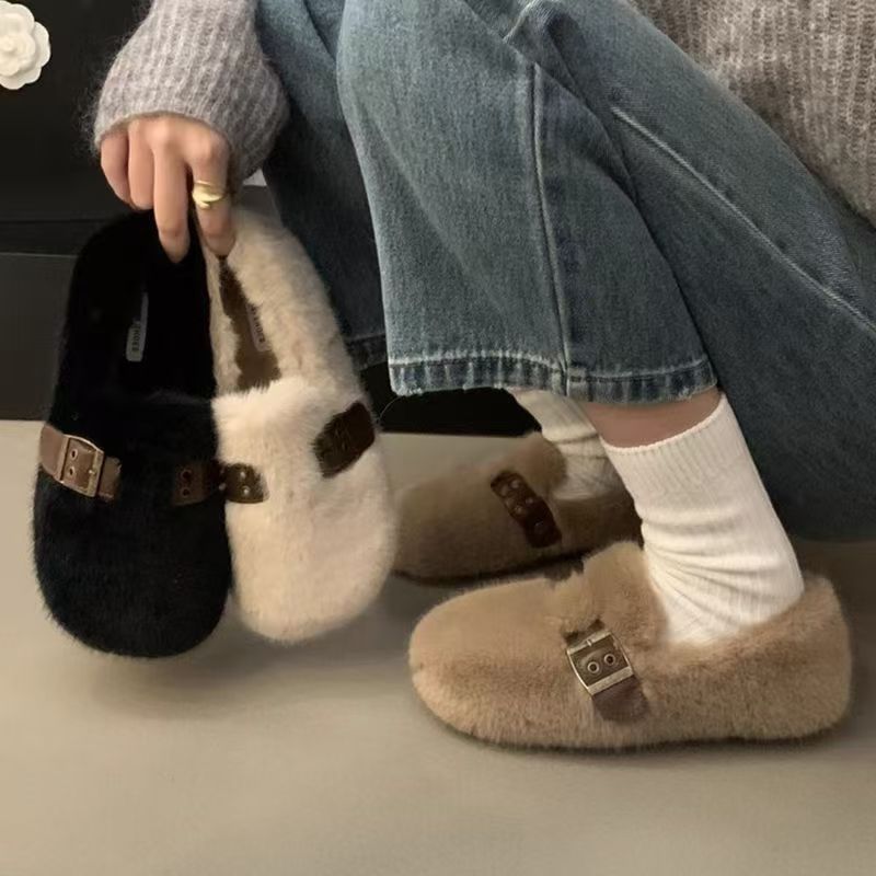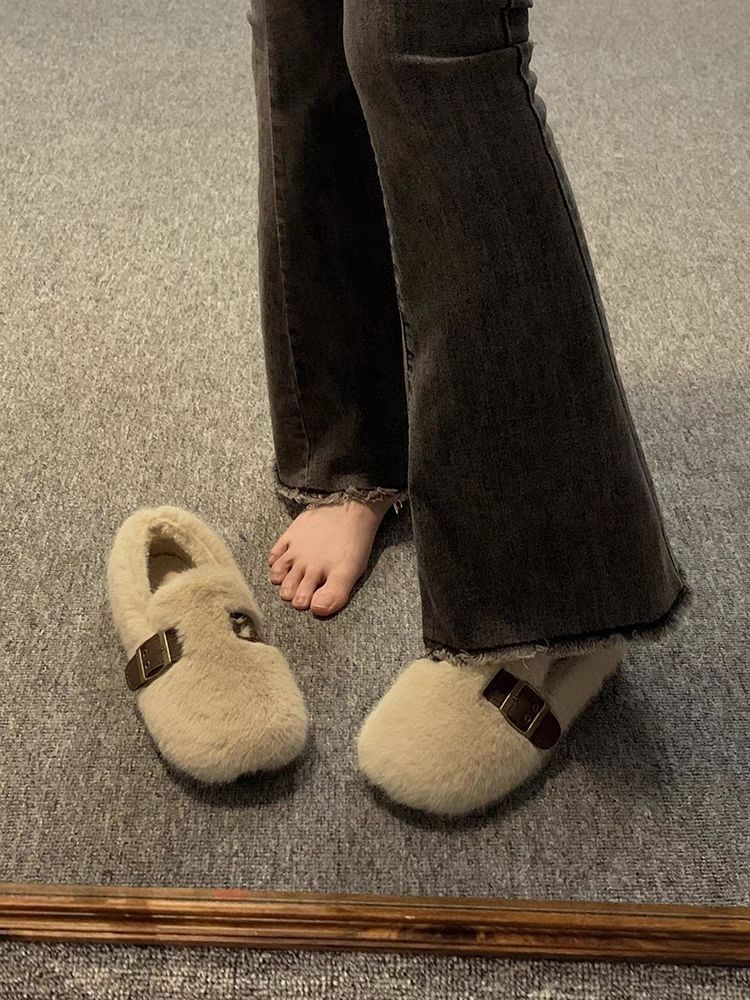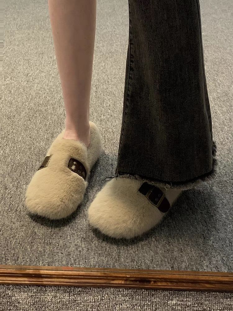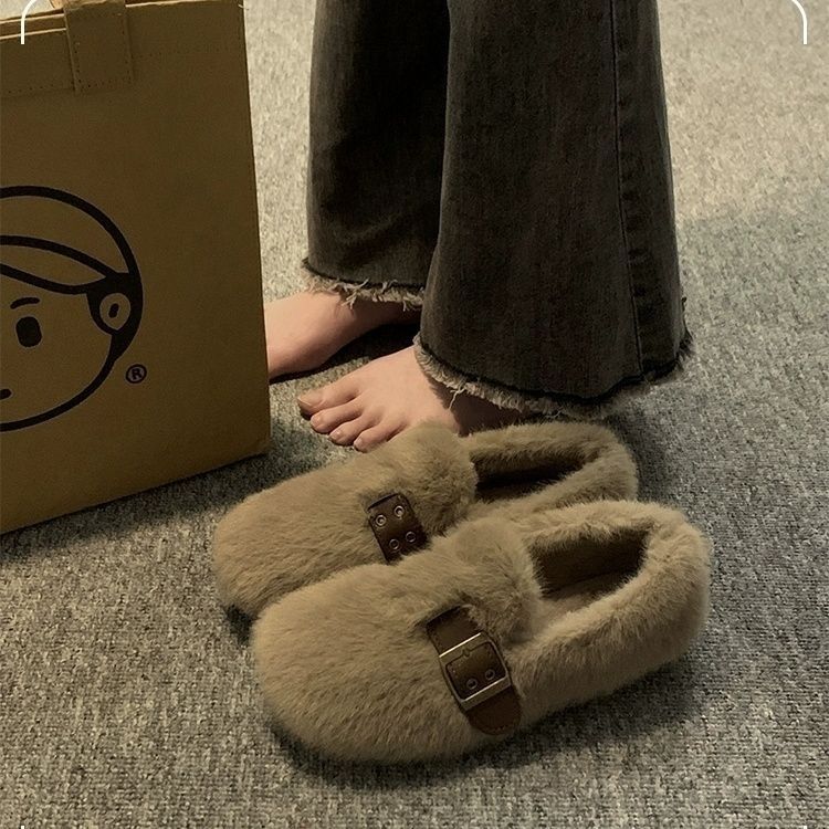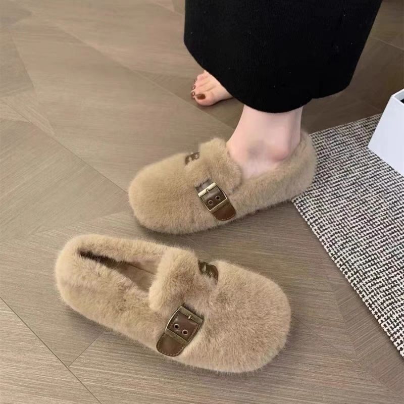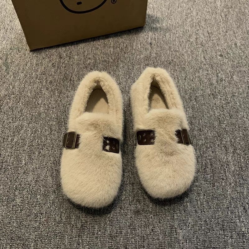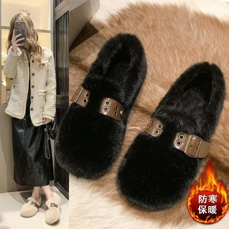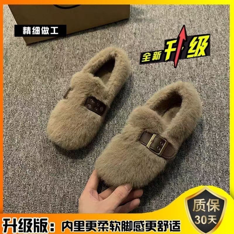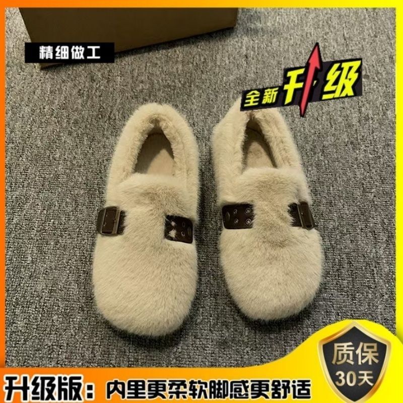 网红毛毛鞋冬天外穿2025年新款秋冬软底加绒豆豆鞋加厚保暖棉鞋女