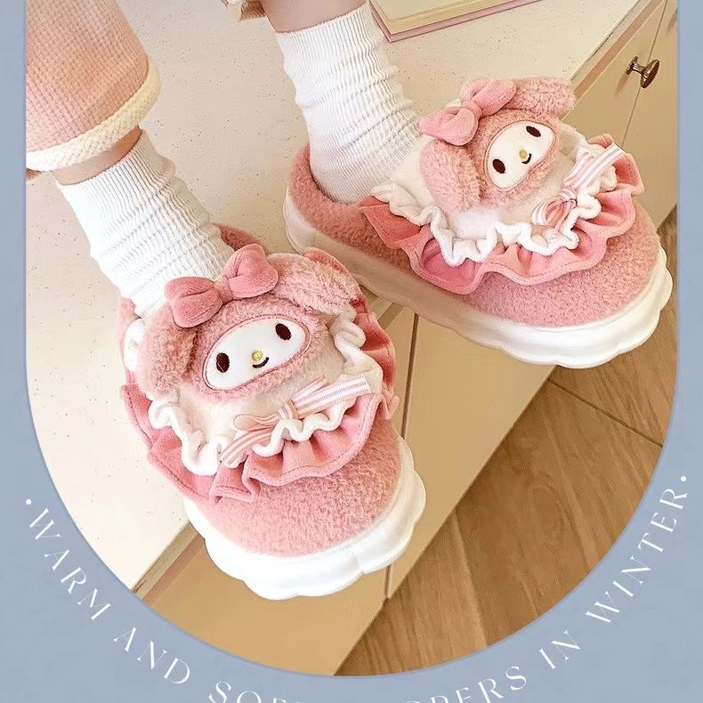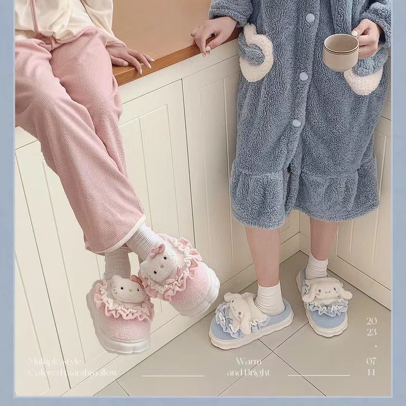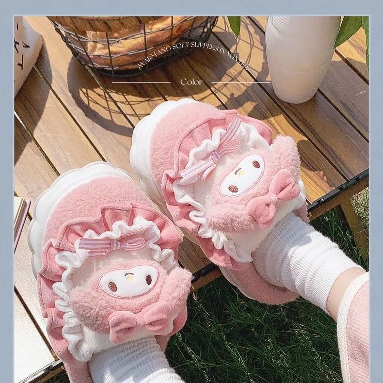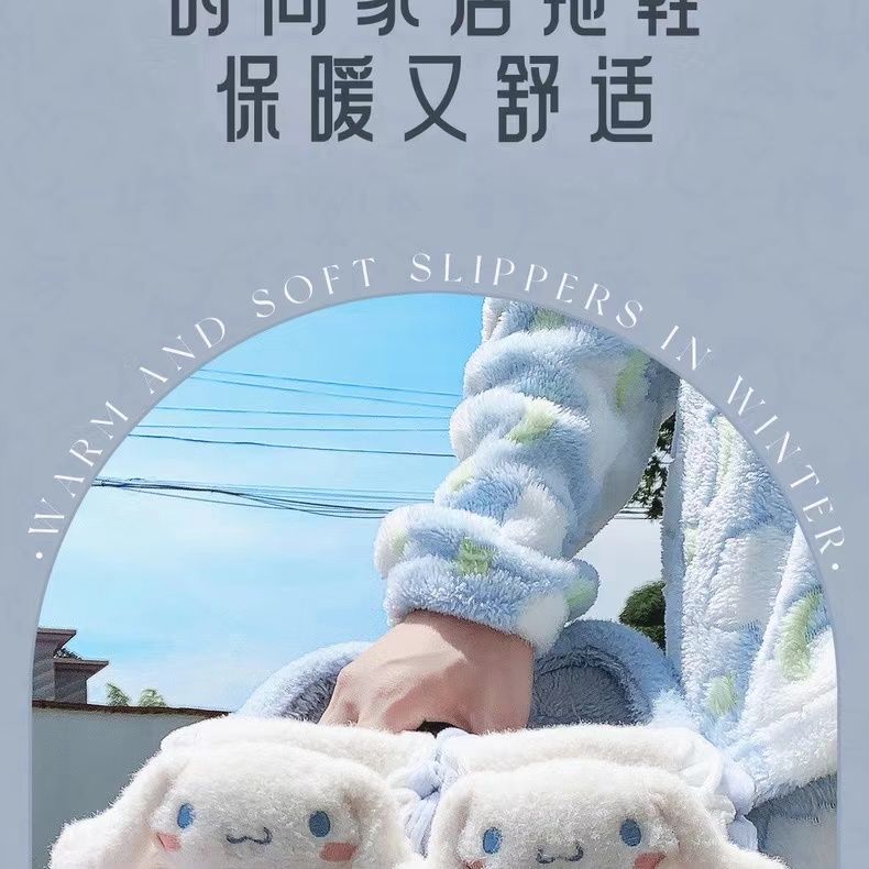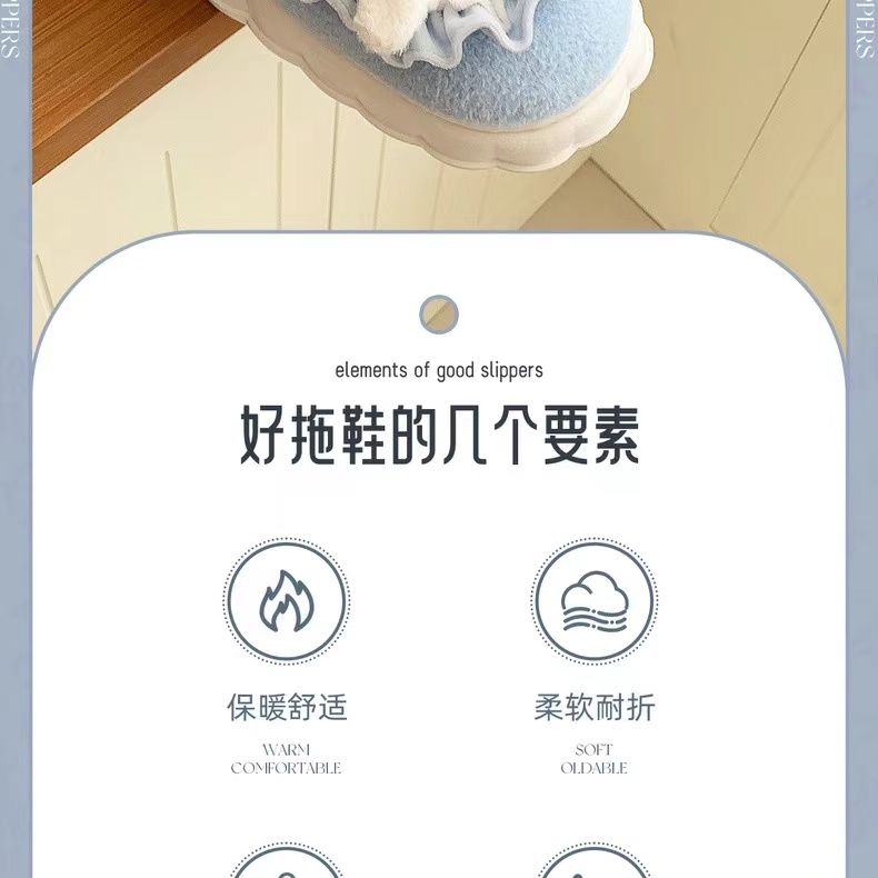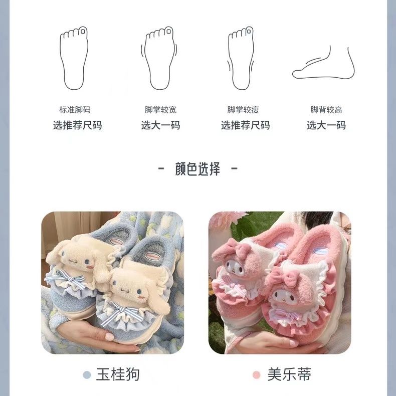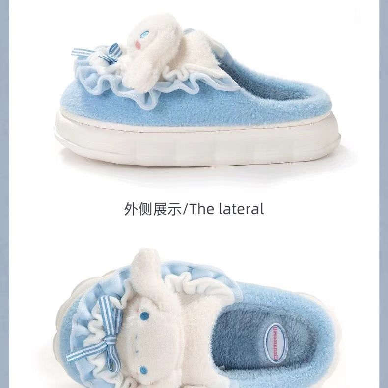 玉桂狗棉拖鞋女秋冬季室内家居可爱ins厚底防滑保暖毛绒拖鞋冬天