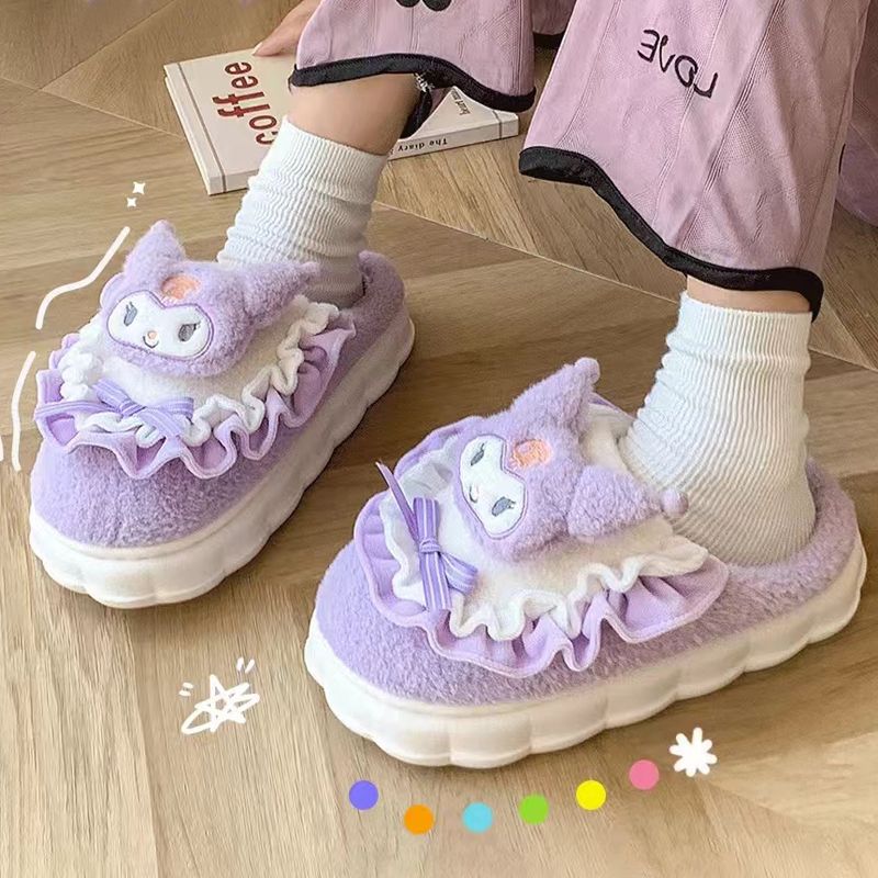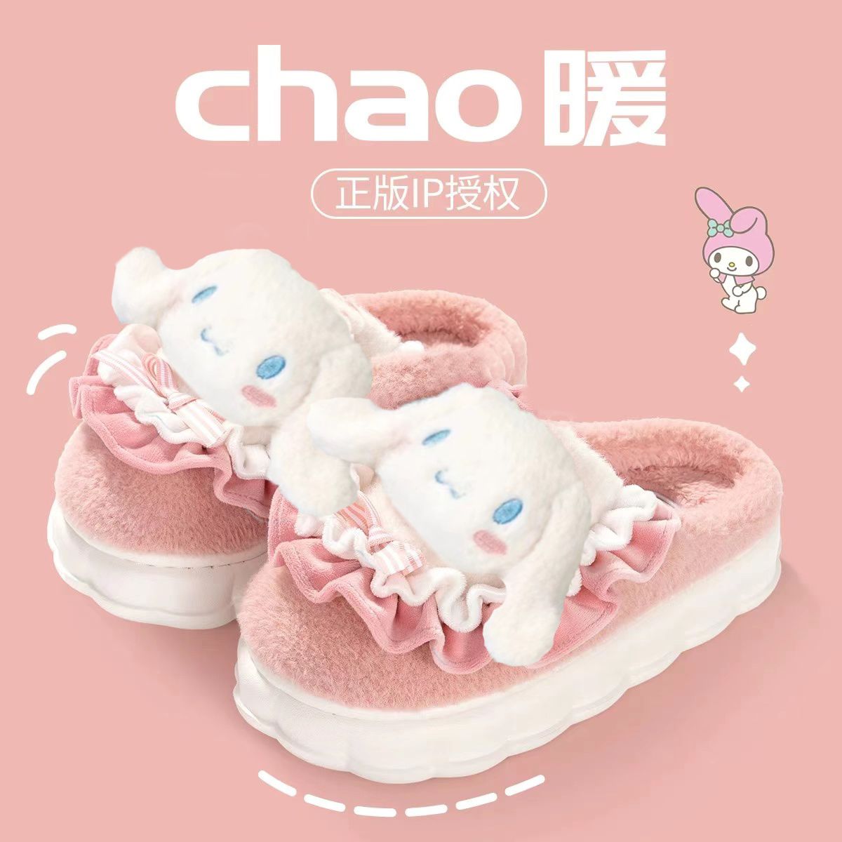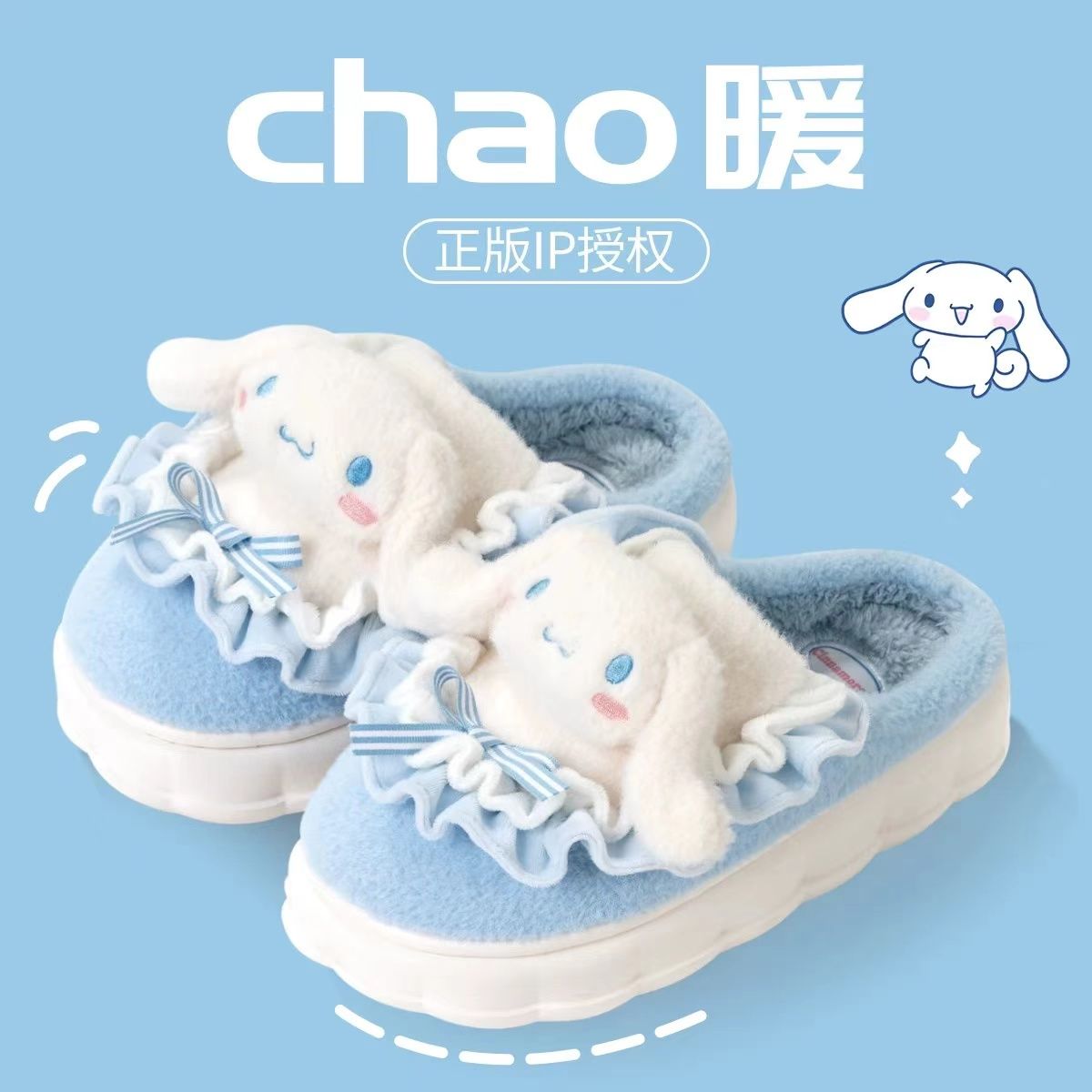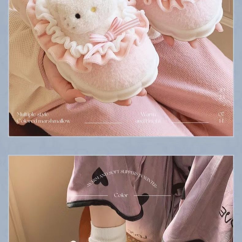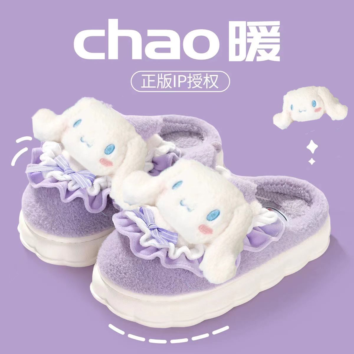 玉桂狗棉拖鞋女秋冬季室内家居可爱ins厚底防滑保暖毛绒拖鞋冬天