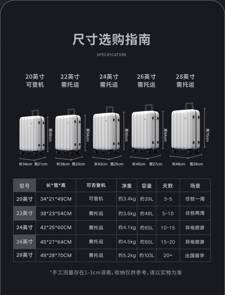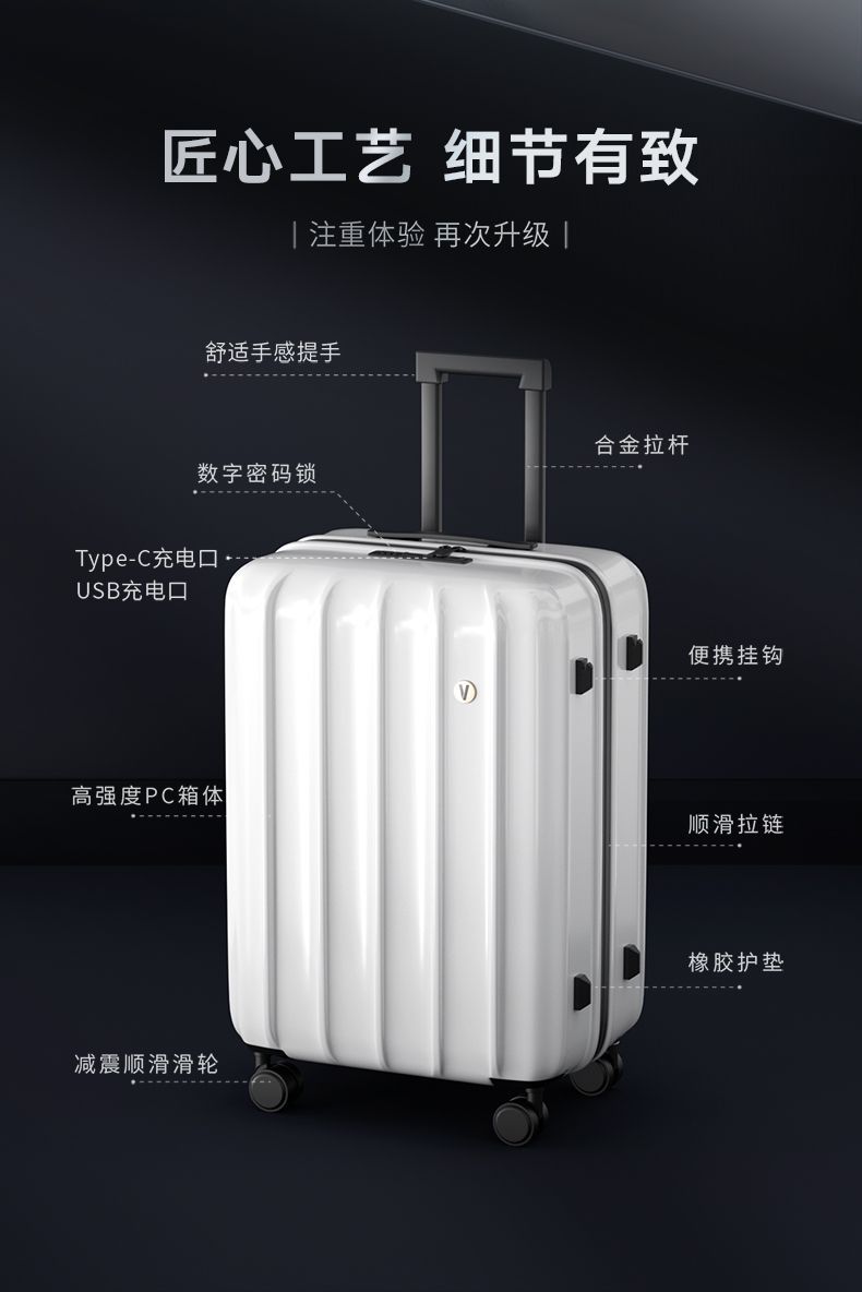 多功能可充电20寸学生行李箱大容量高颜值旅行行李箱静音万向轮