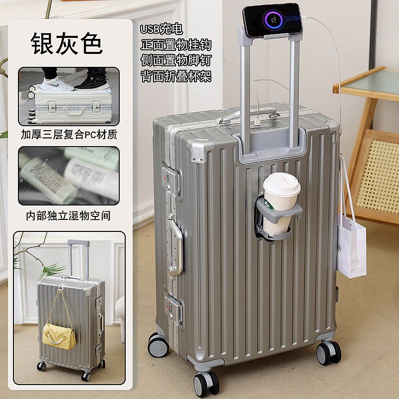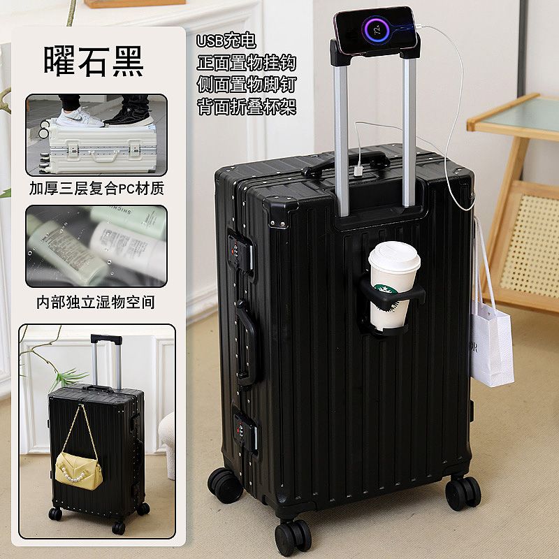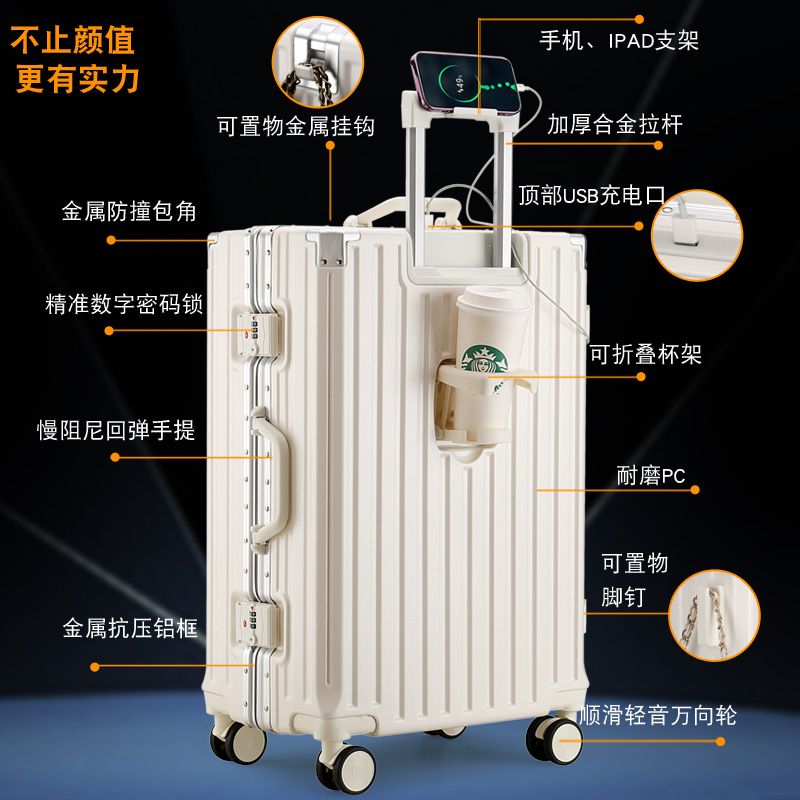 多功能行李箱女拉杆箱男铝框可充电大容量旅行20寸登机密码皮箱子