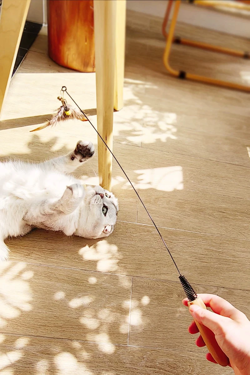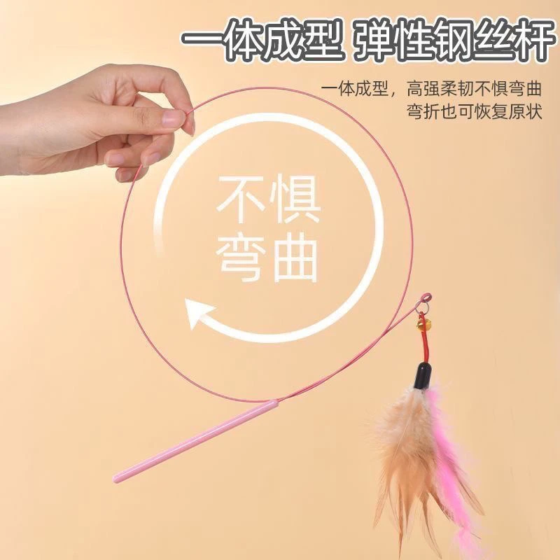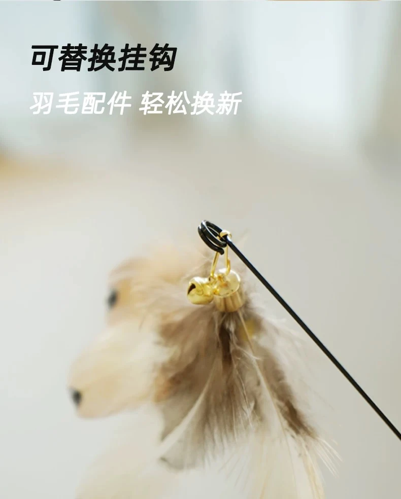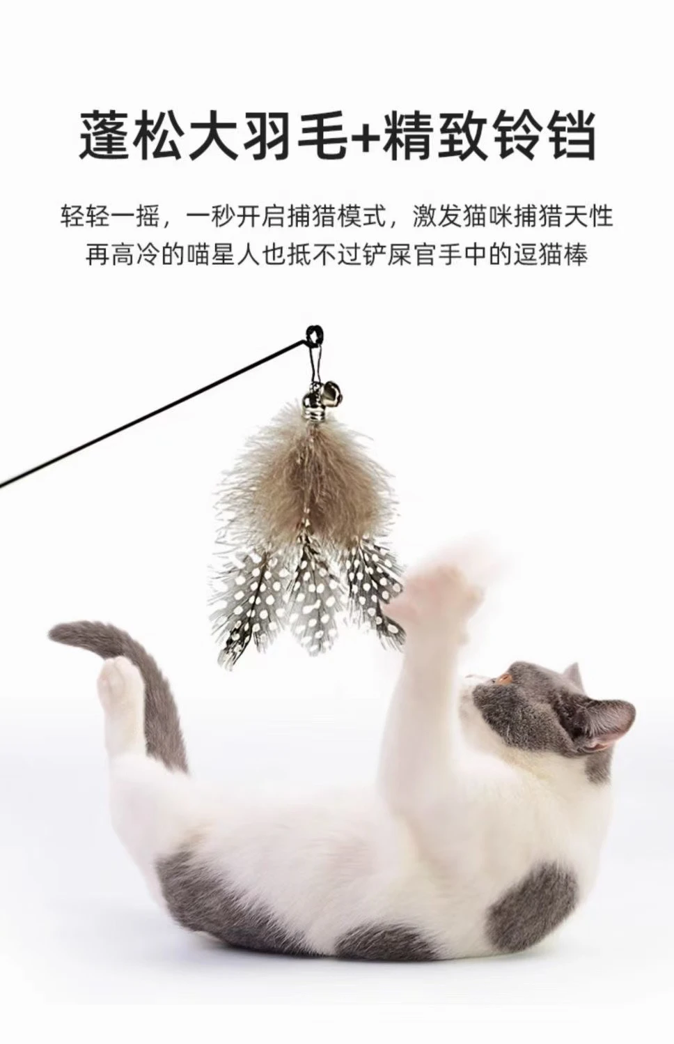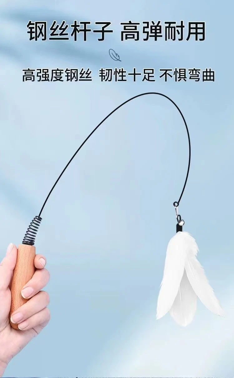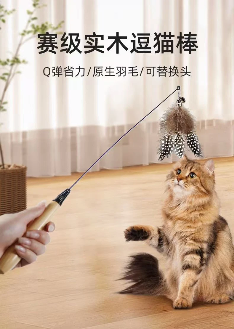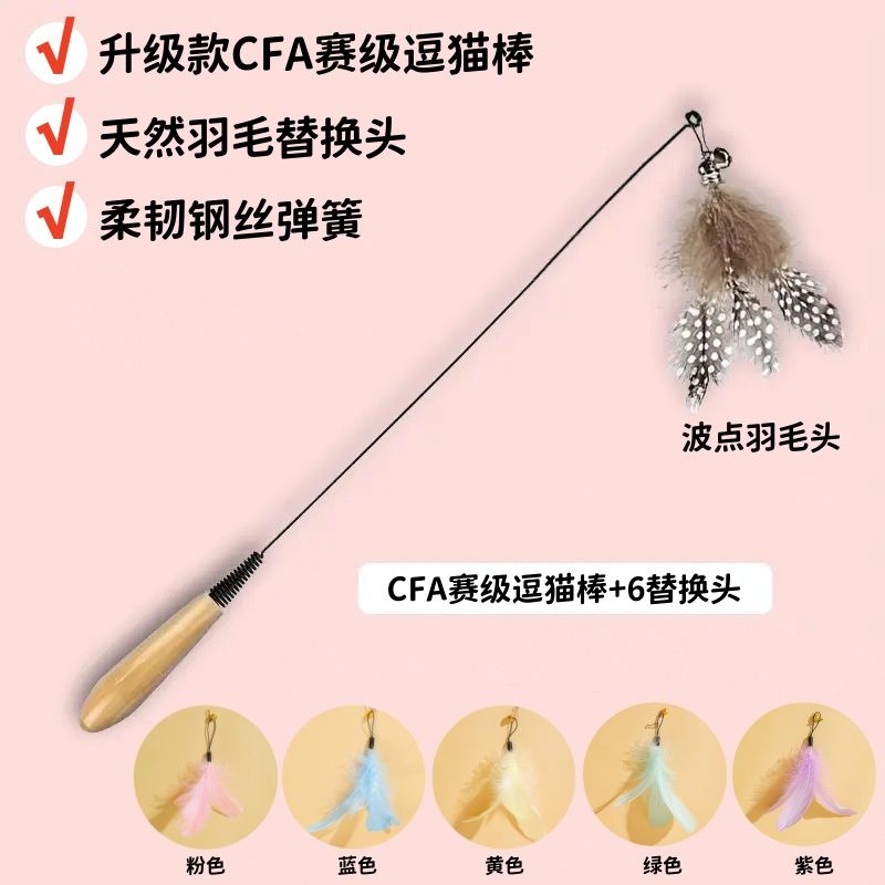 CFA赛级木柄逗猫棒长杆羽毛小猫自嗨解闷铃铛替换头耐咬小孩逗猫
