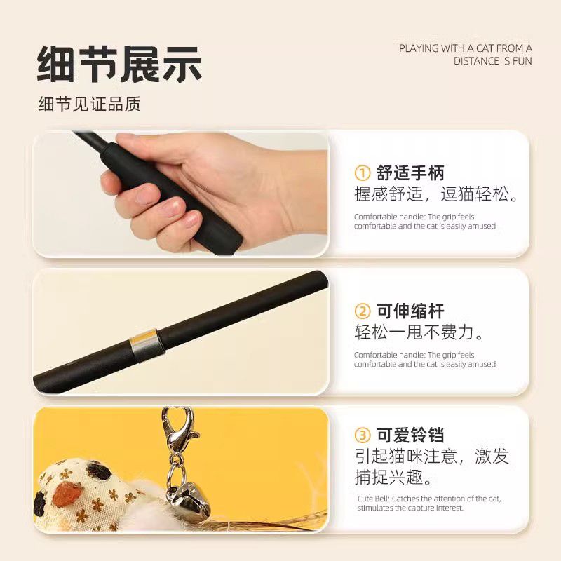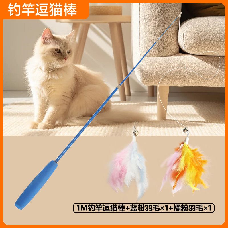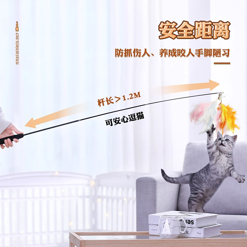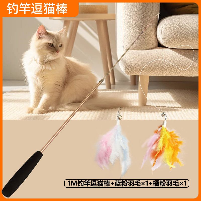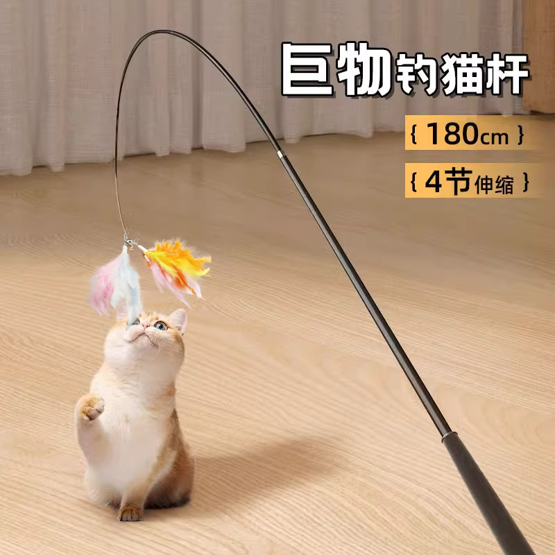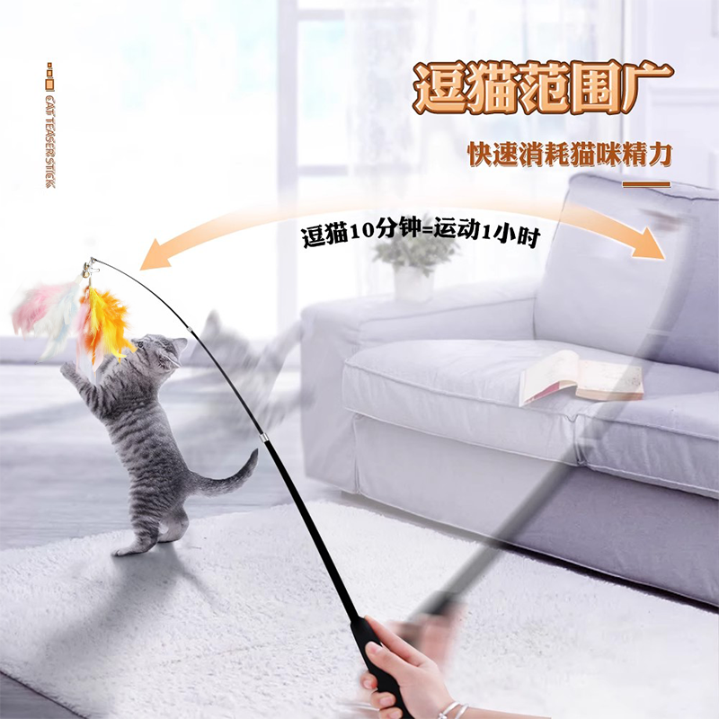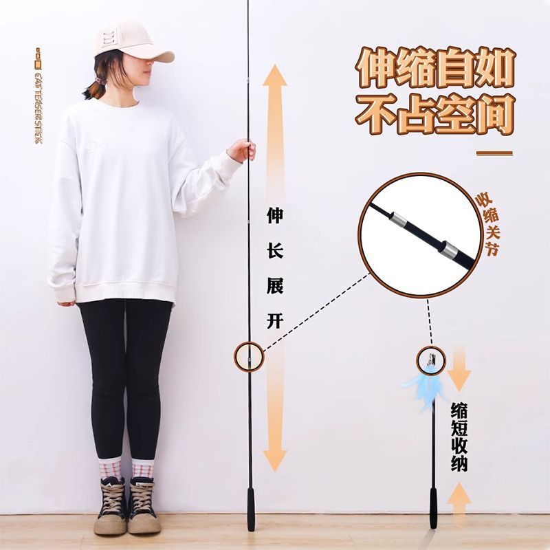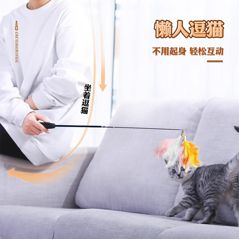 加长逗猫棒可伸缩杆长杆逗猫羽毛结实耐用自嗨解闷神器猫咪玩具