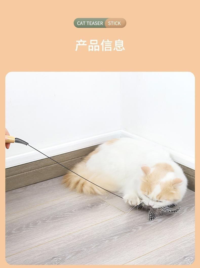 CFA赛级木柄弹簧逗猫棒猫咪互动自嗨解闷玩具幼猫可替换羽毛耐用