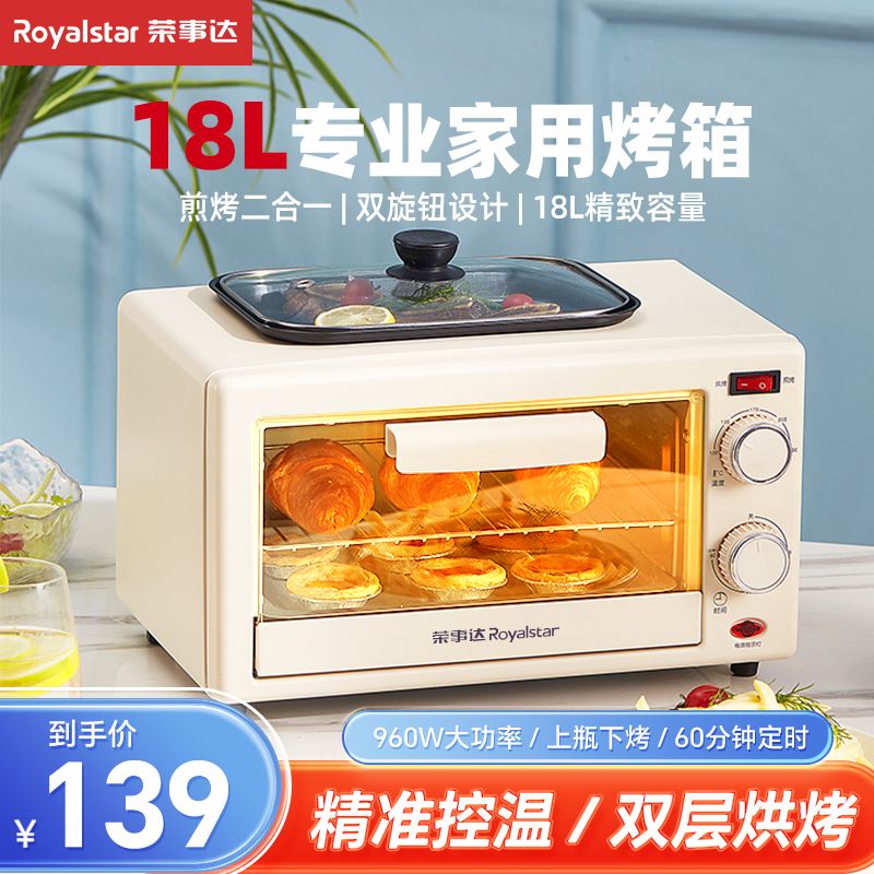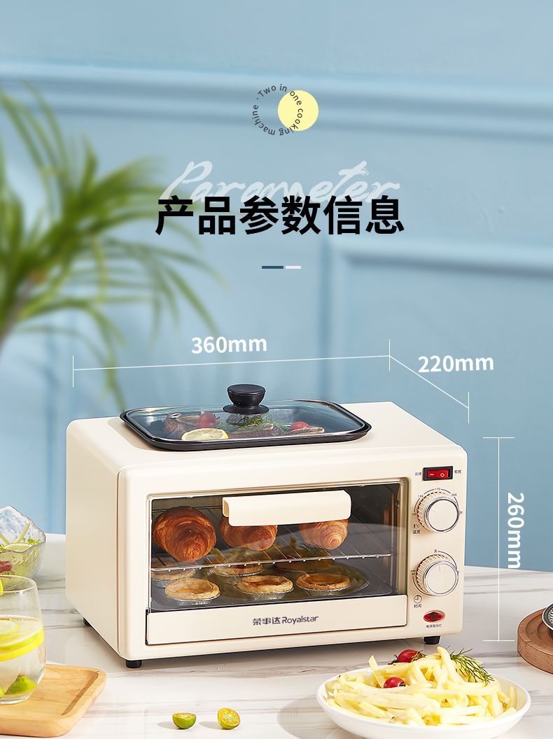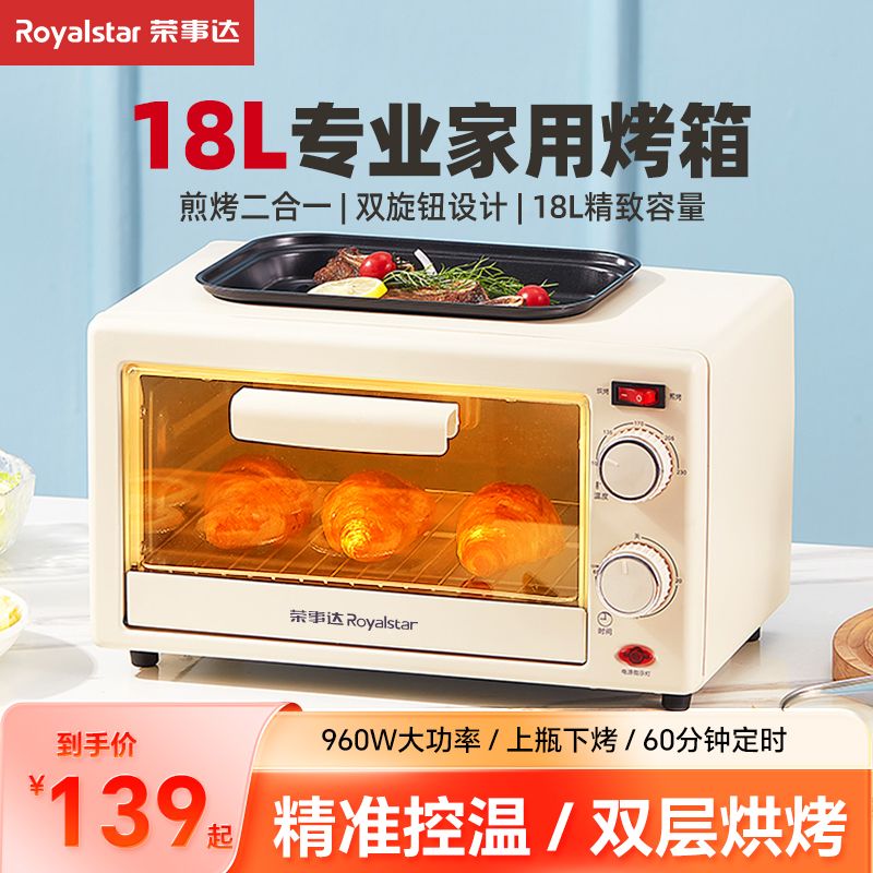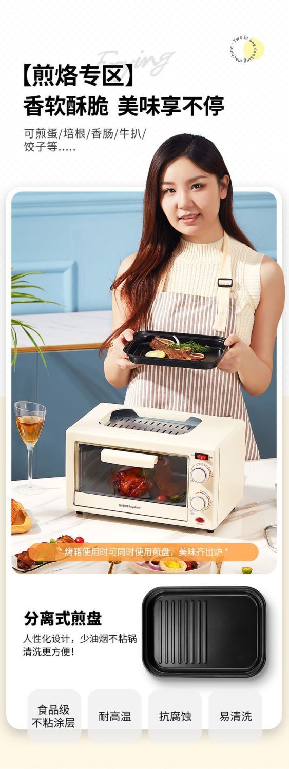 荣事达煎烤箱家用二合一电烤箱专业烘焙精准控温电烤炉网红早餐机