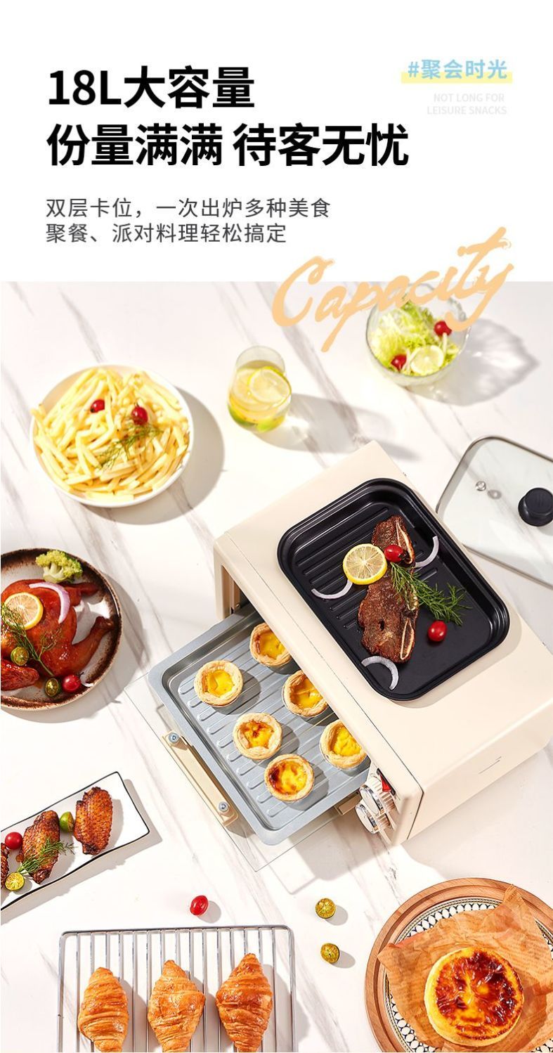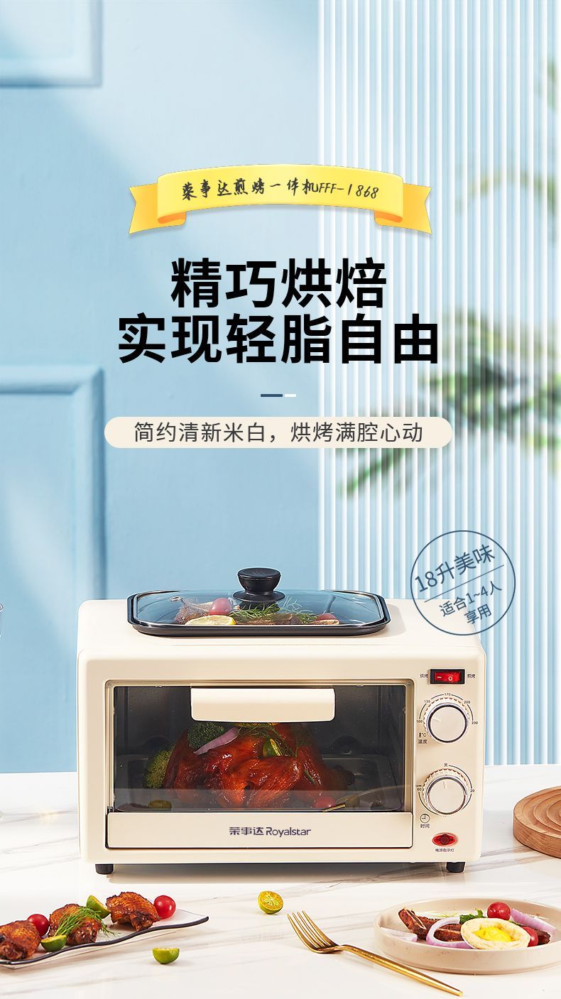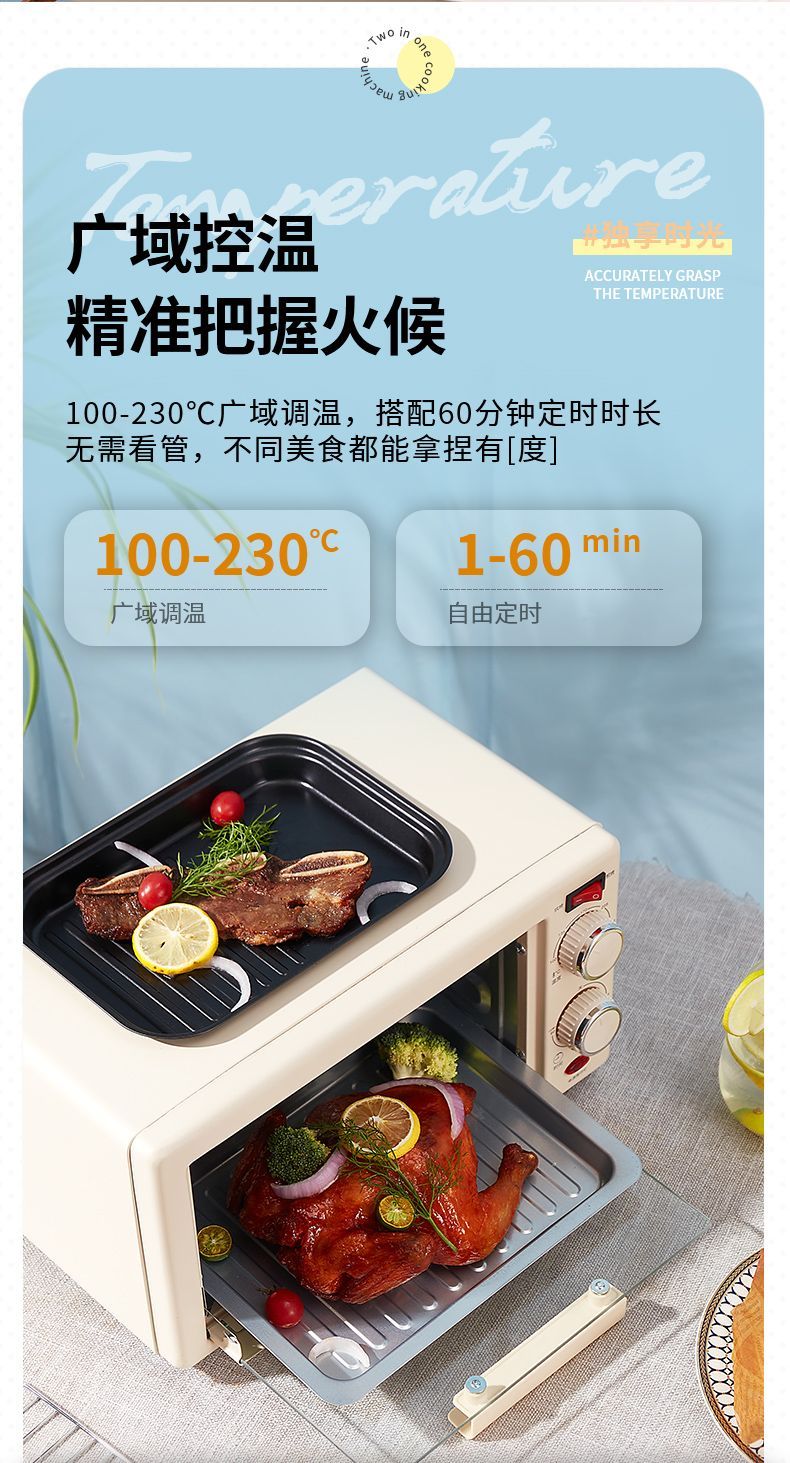 荣事达煎烤箱家用二合一电烤箱专业烘焙精准控温电烤炉网红早餐机