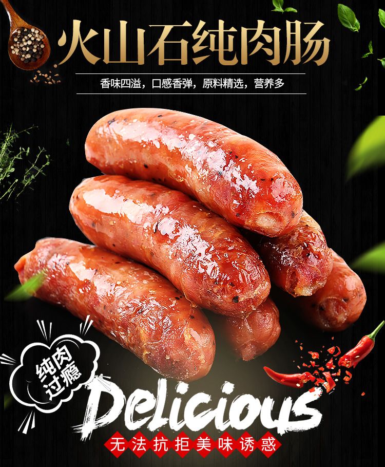 台湾风味纯肉肠火山石烤肠纯肉香肠黑椒地道肠热狗肠手工烤肠批发