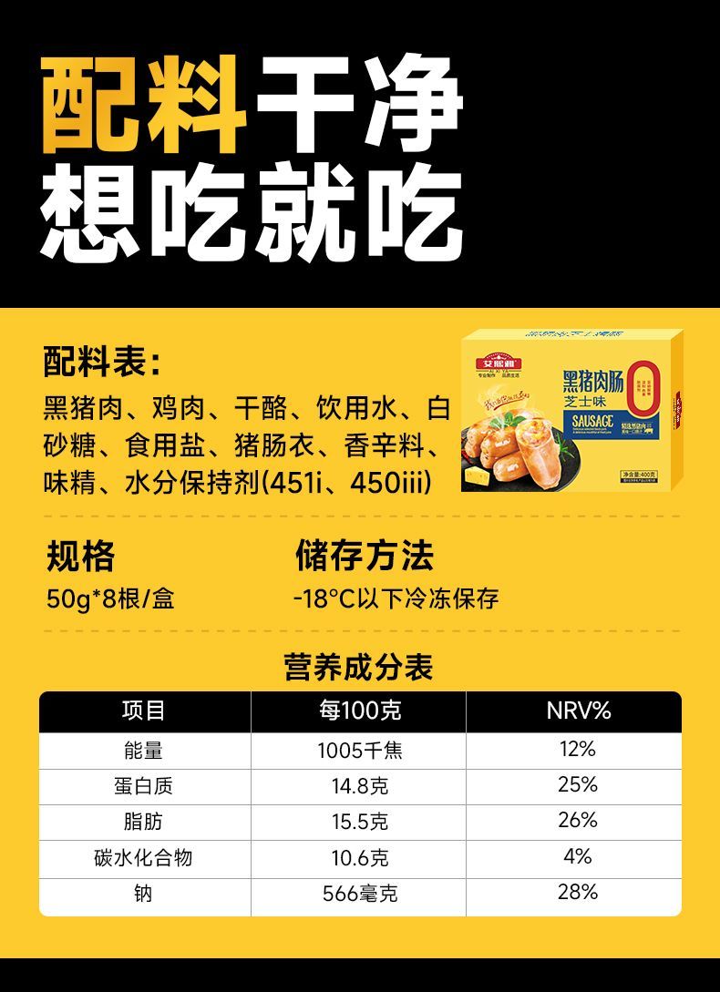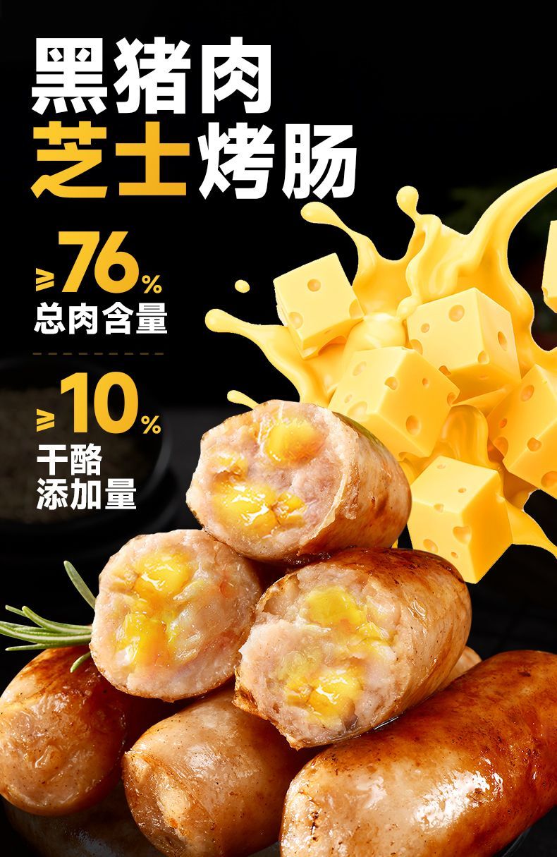 【爆浆芝士】烤肠火山石0淀粉黑猪肉香肠肉肠高品质地道肠黑椒