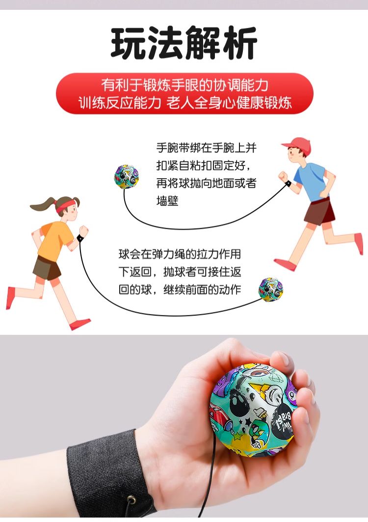 爆款手腕弹力球新款儿童回弹带绳子腕力球甩甩球回力球玩具摆地摊