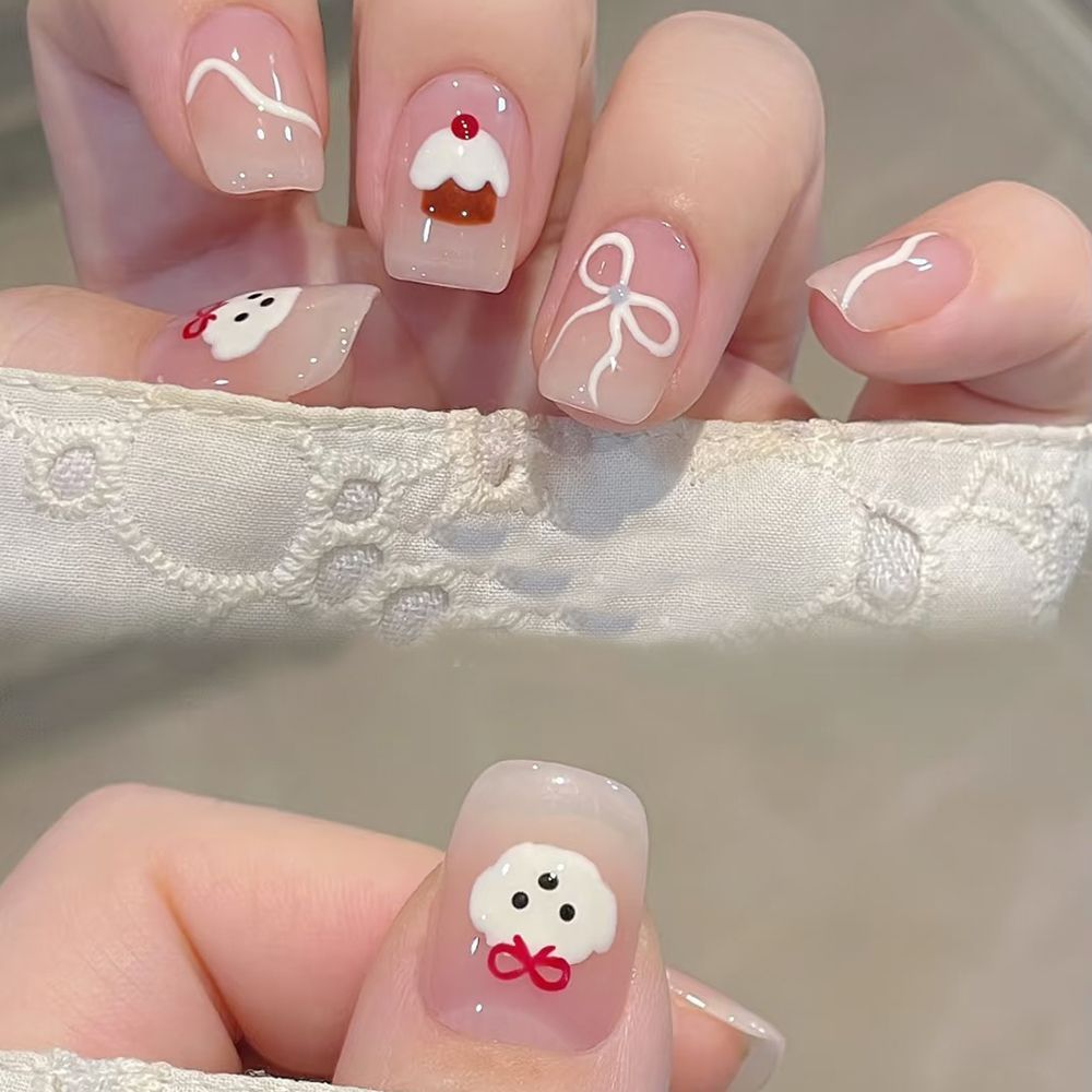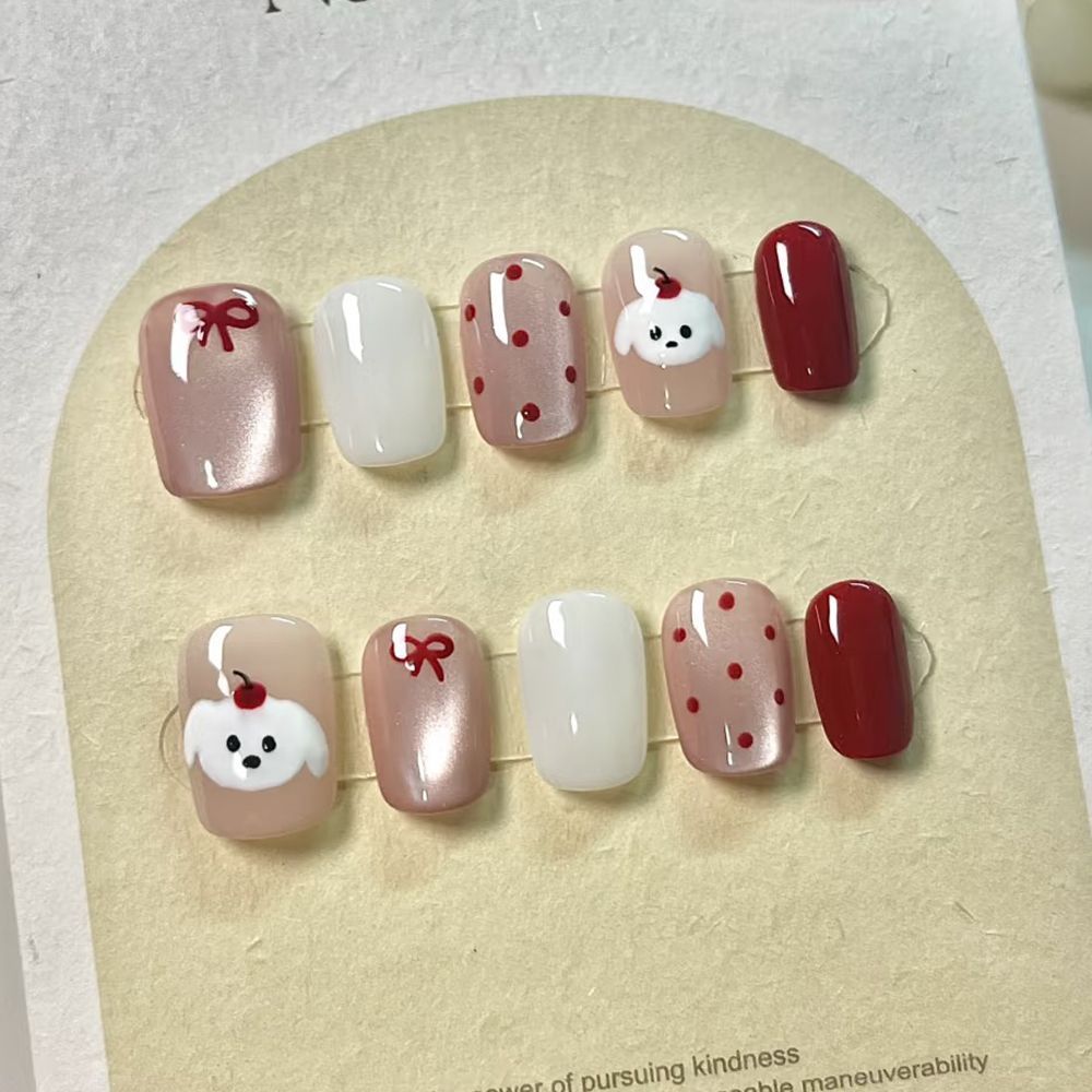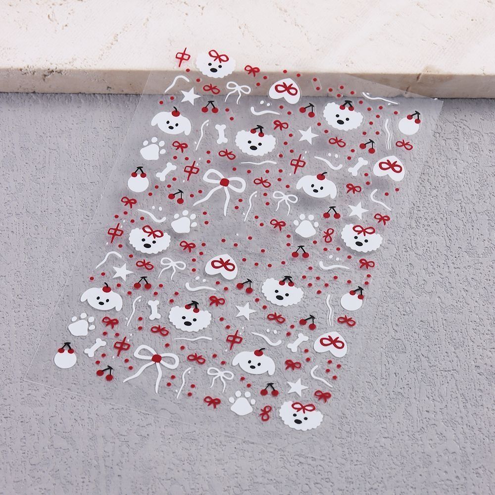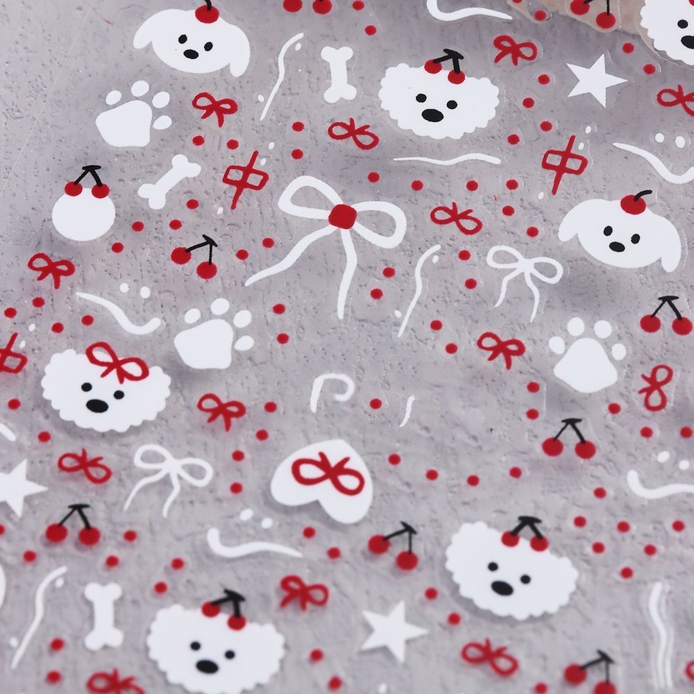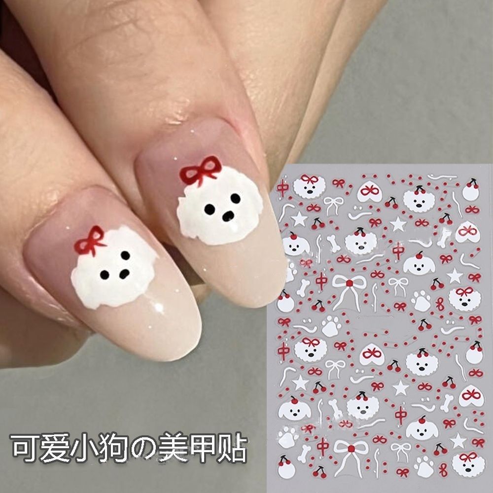 网红新款可爱美甲贴纸卡通童趣彩绘樱桃小狗波点蝴蝶结背胶装饰贴
