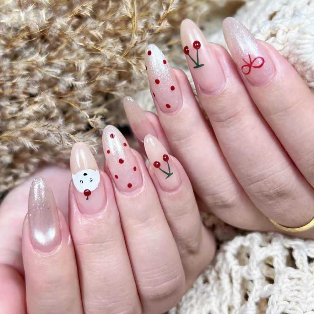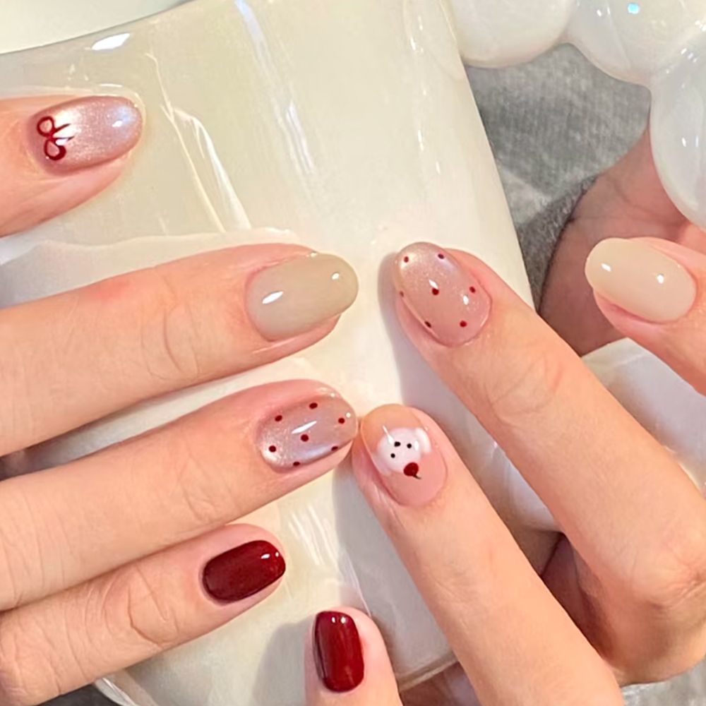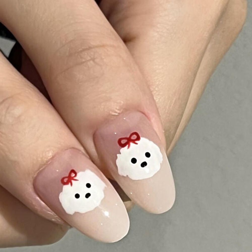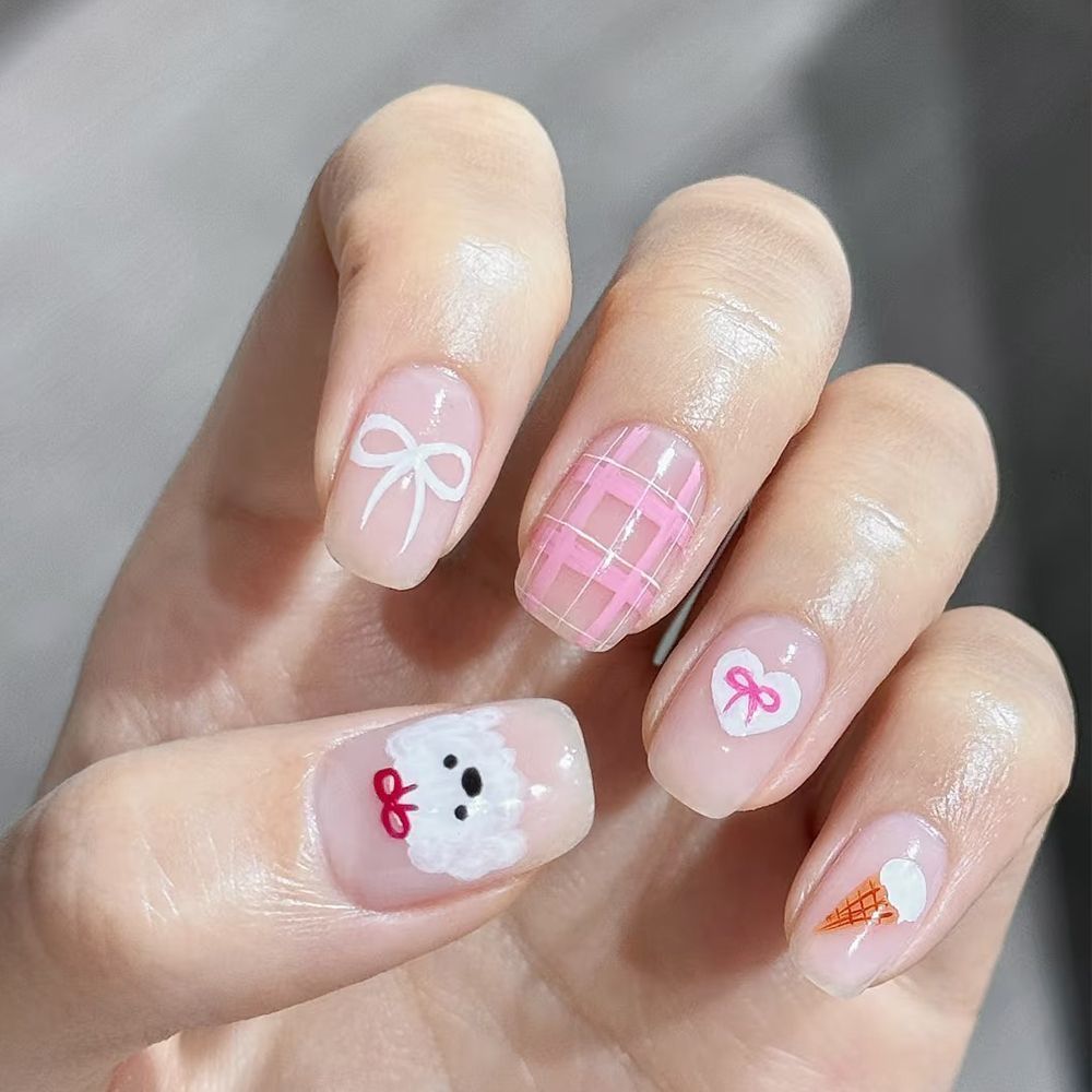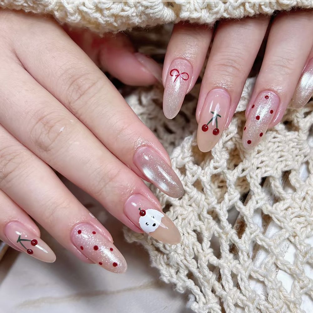 网红新款可爱美甲贴纸卡通童趣彩绘樱桃小狗波点蝴蝶结背胶装饰贴