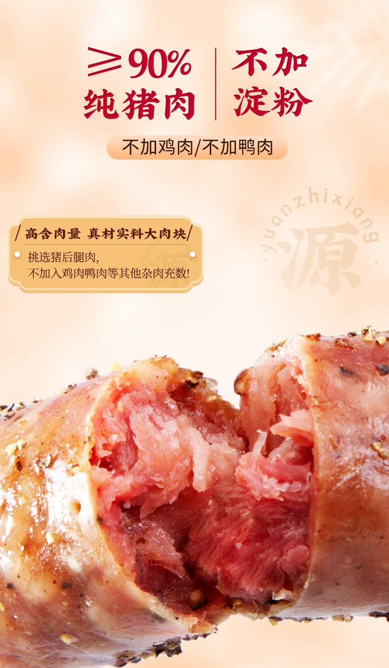 源之香90%纯肉纯猪肉肠火山石烤肠无淀粉地道肠台湾香肠烧烤食材