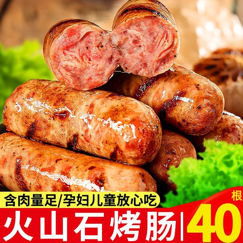 鑫睿厨火山石猪肉烤肠纯肉肠早餐脆皮香爆汁黑胡椒台式热狗肠10根