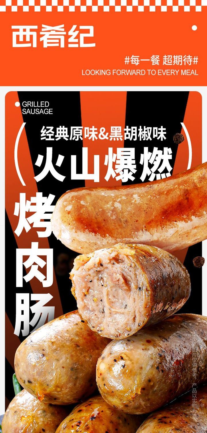西肴纪火山石烤肠地道脆皮肉肠空气炸锅食材肉热狗肠黑胡椒烤香肠