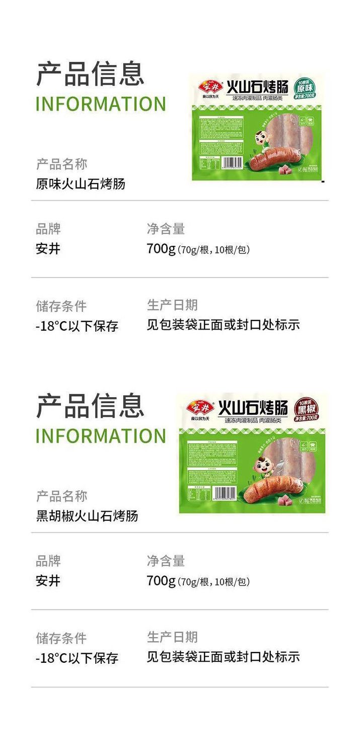 | [original] anjoy volcanic rock roasted sausage 700g * 3 bags(【原味】安井火山石烤肠700g*3袋) | USD $10.5 | 999999 piece available |