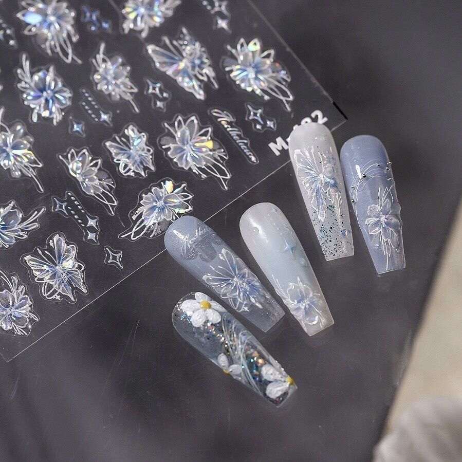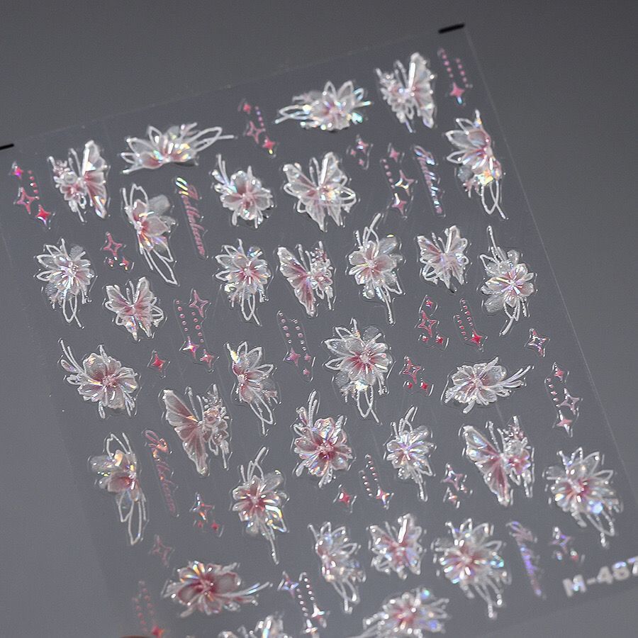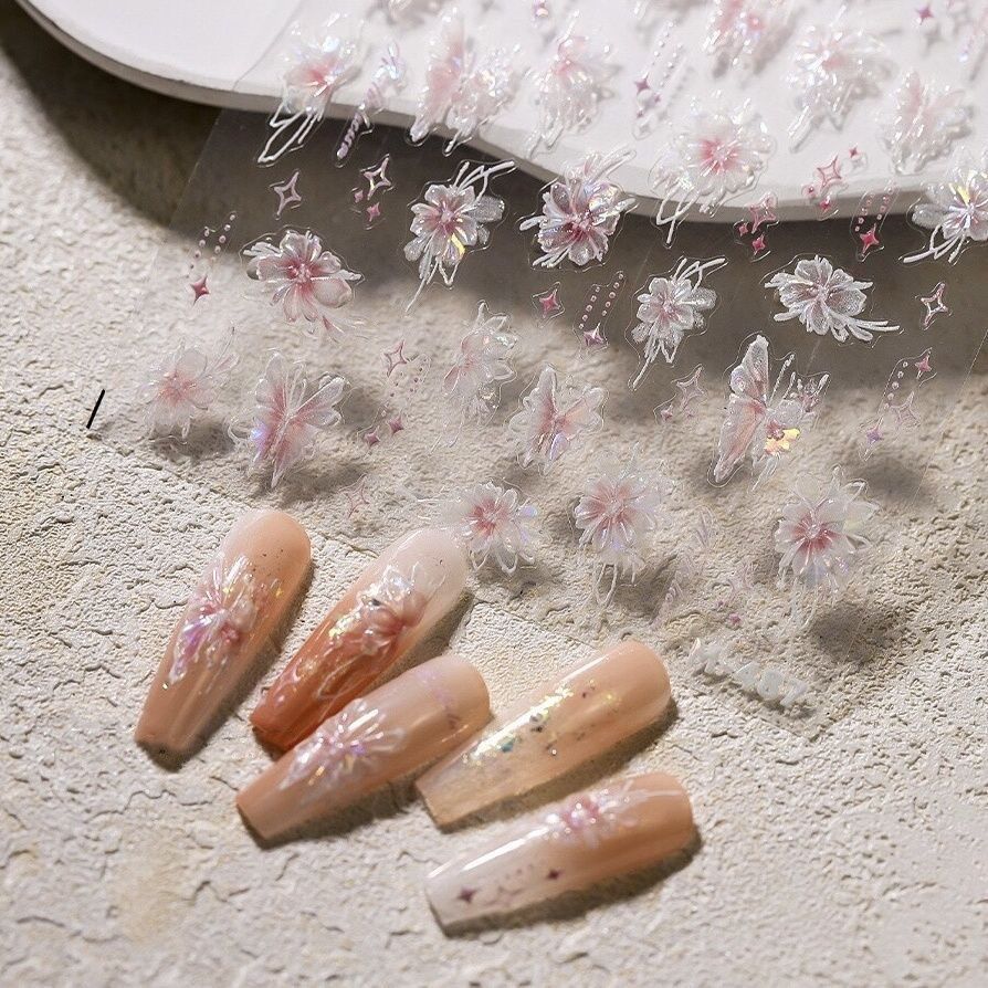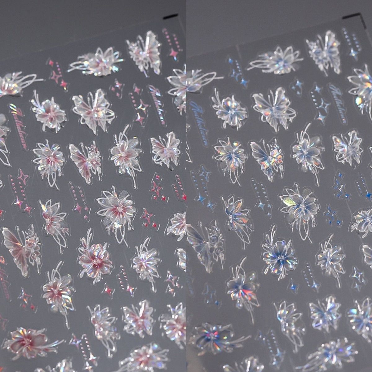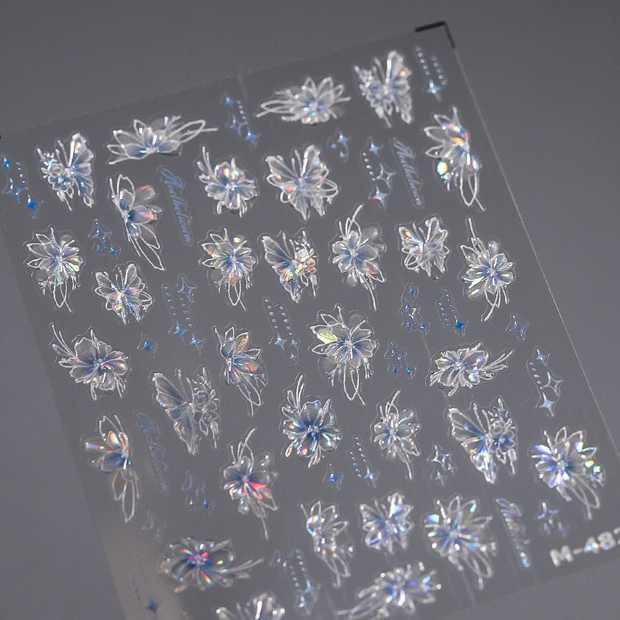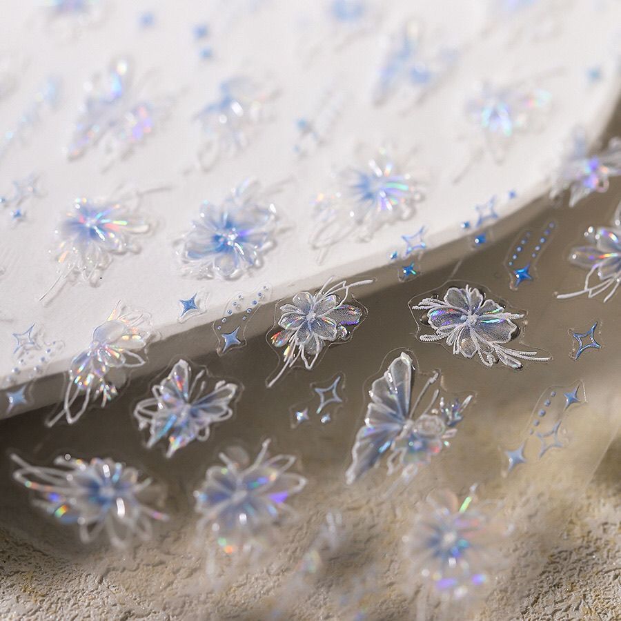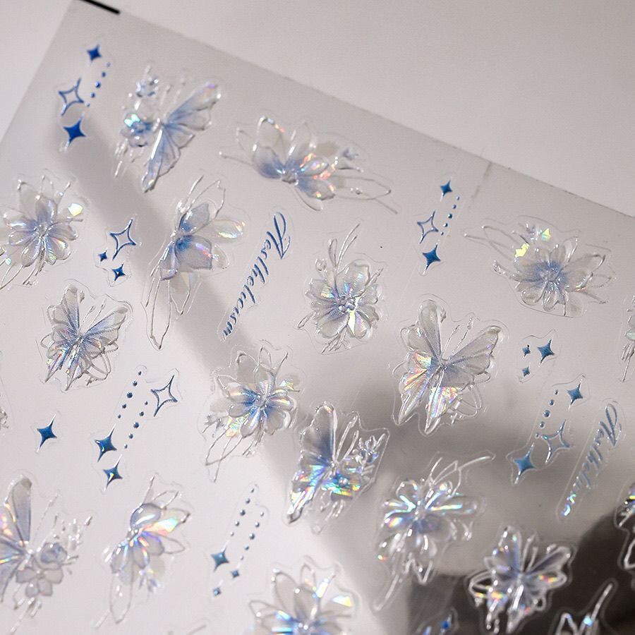 冰透琉璃花蝴蝶美甲贴纸清透仙女粉粉蝴蝶高级蝶翼灵动蝴蝶指甲贴