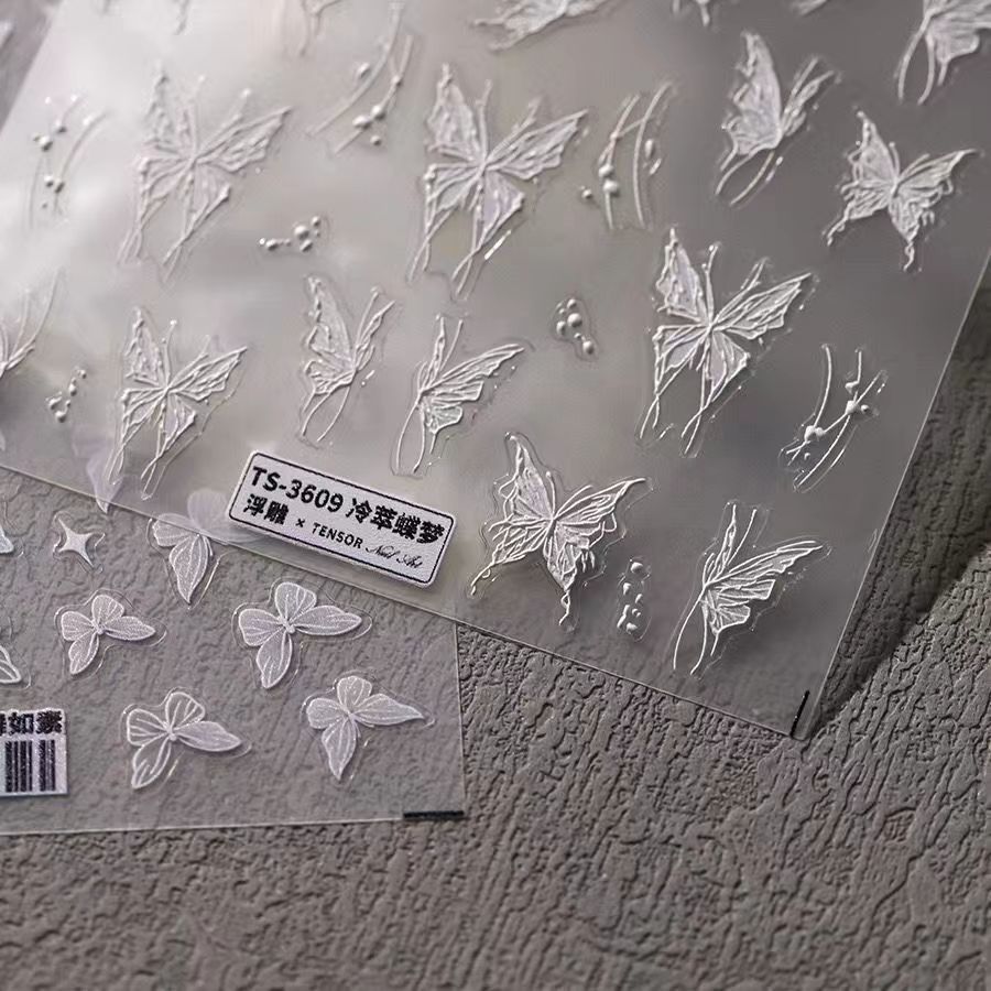 网红新款美甲化蝶液态蝴蝶贴纸浮雕仙女薄韧白色小蝴蝶指甲贴装饰