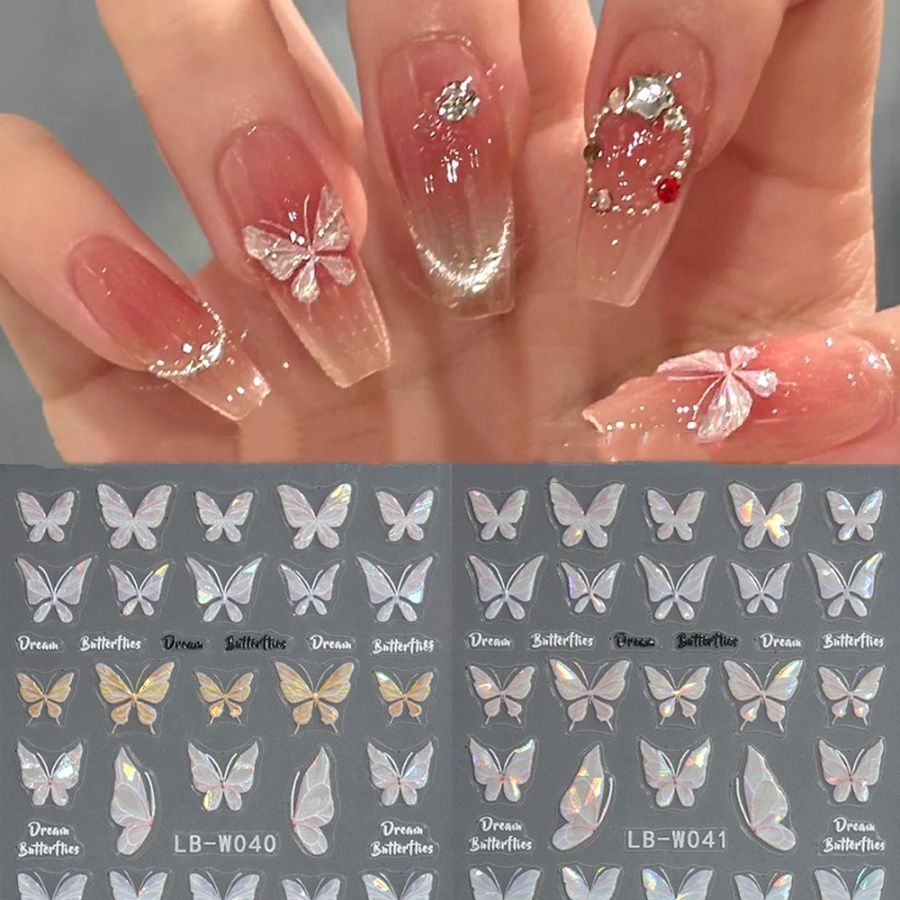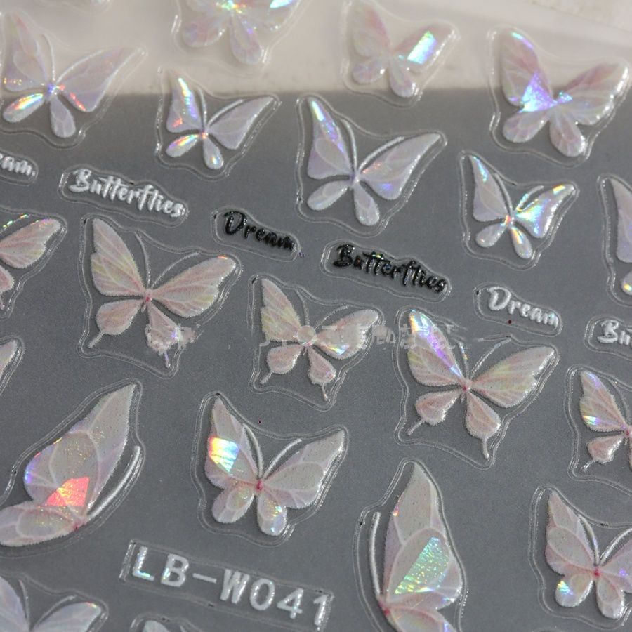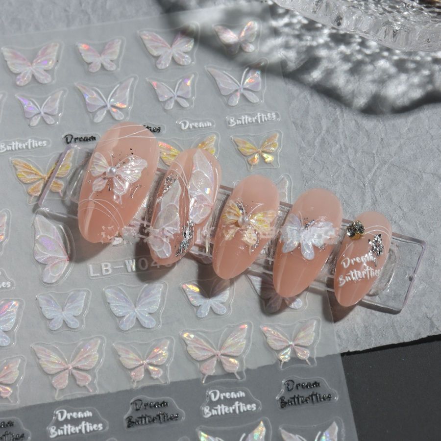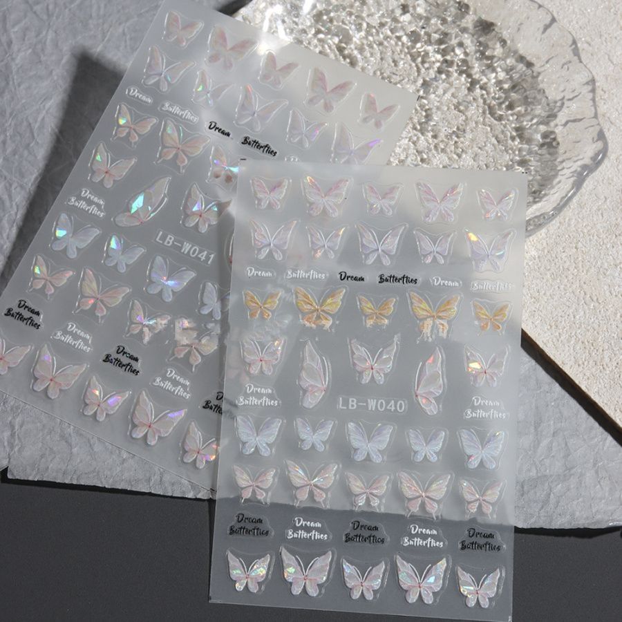 美甲贴纸ins网红贝壳光蝴蝶日系仙气纯欲风冰晶蝴蝶5D背胶贴装饰