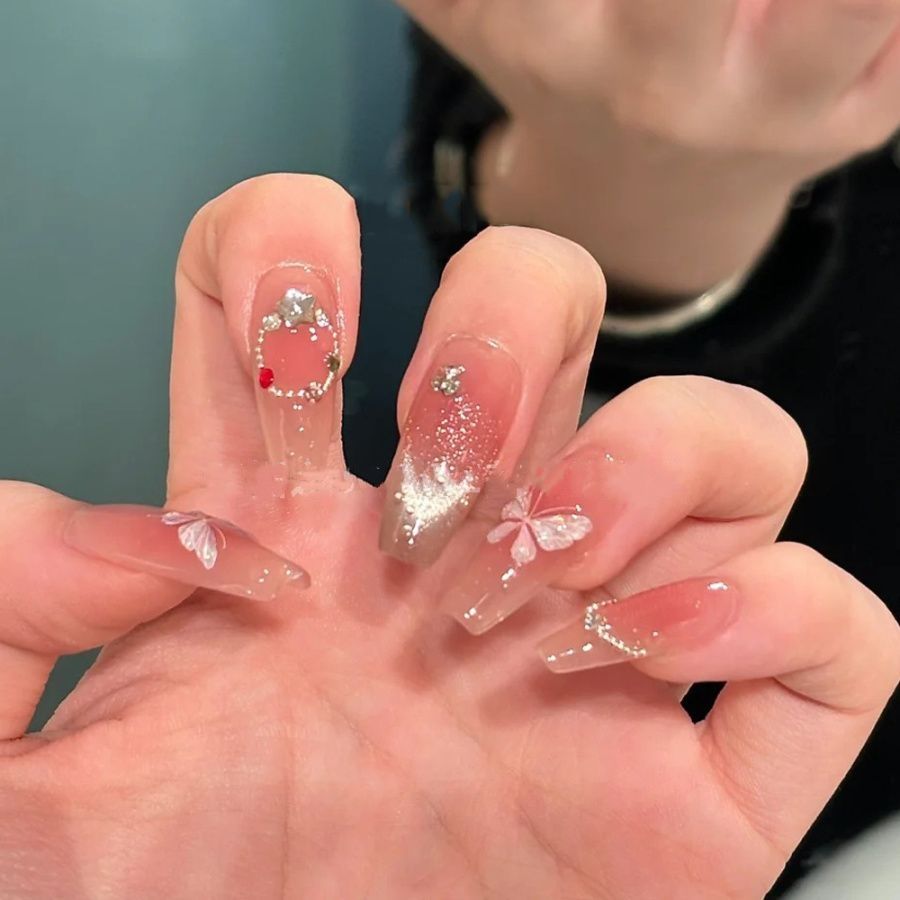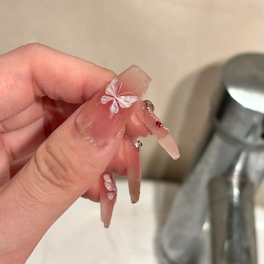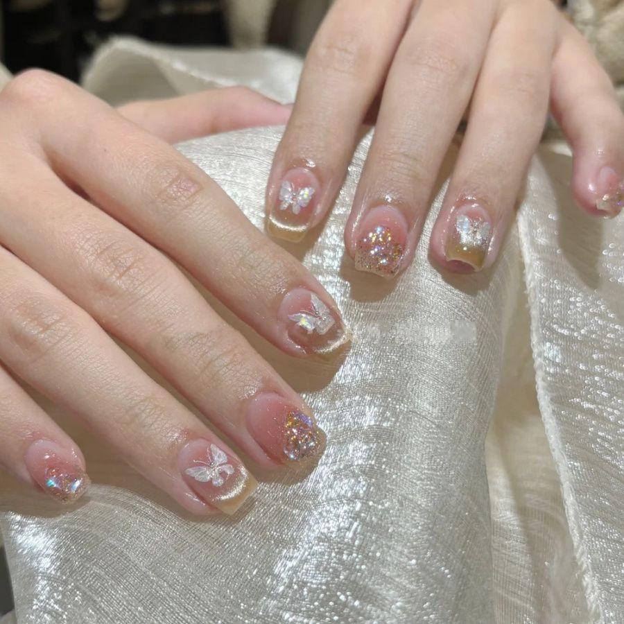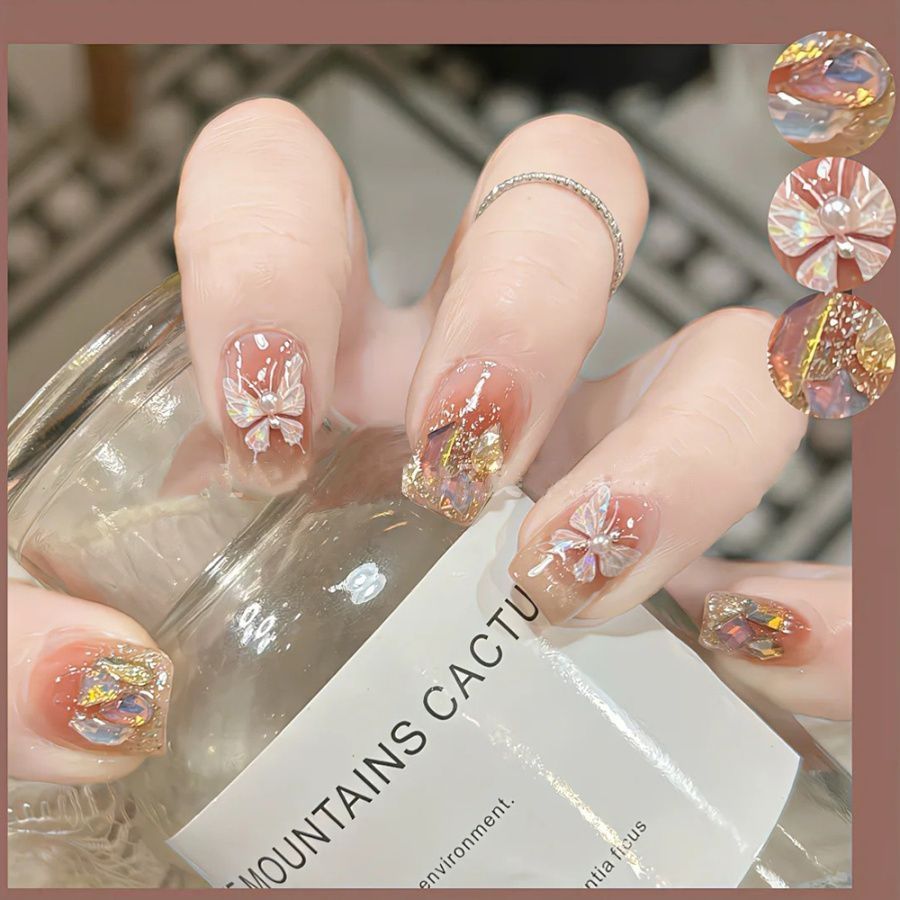 美甲贴纸ins网红贝壳光蝴蝶日系仙气纯欲风冰晶蝴蝶5D背胶贴装饰