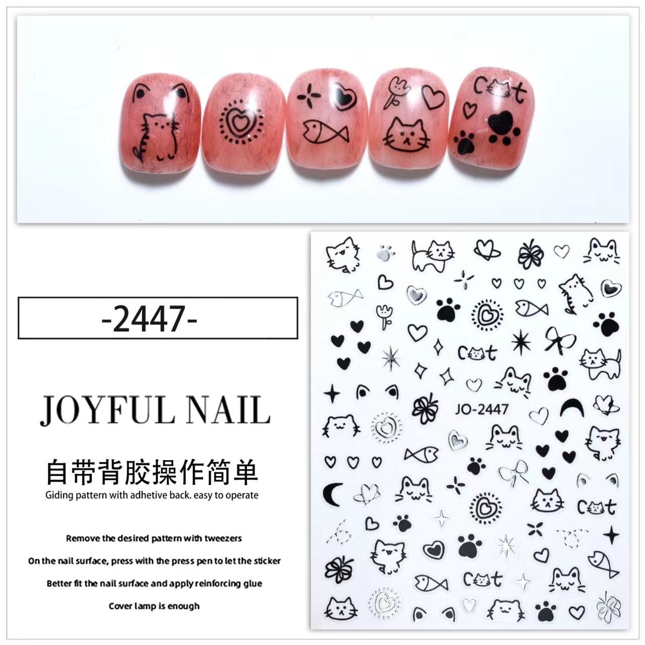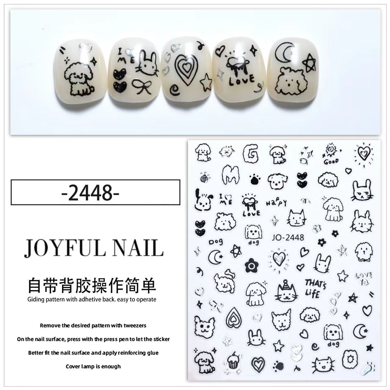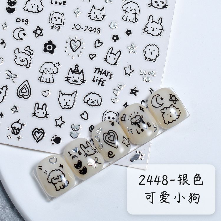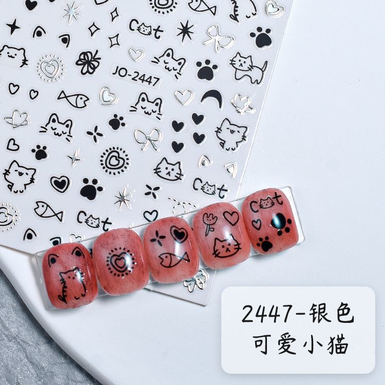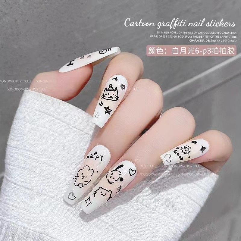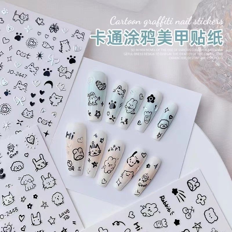卡通涂鸦贴纸猫咪爱心星芒辣妹童趣小猫小狗手绘图案贴花背胶美甲