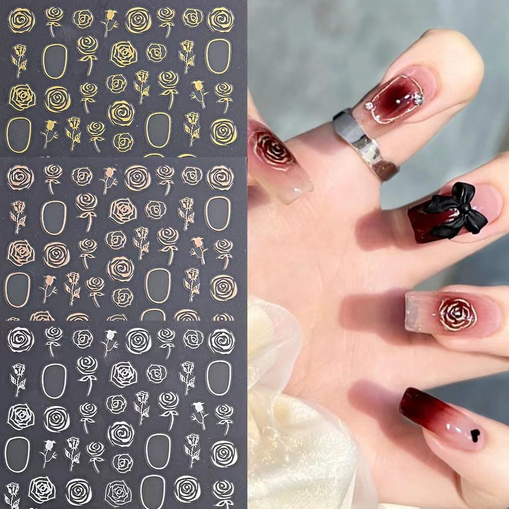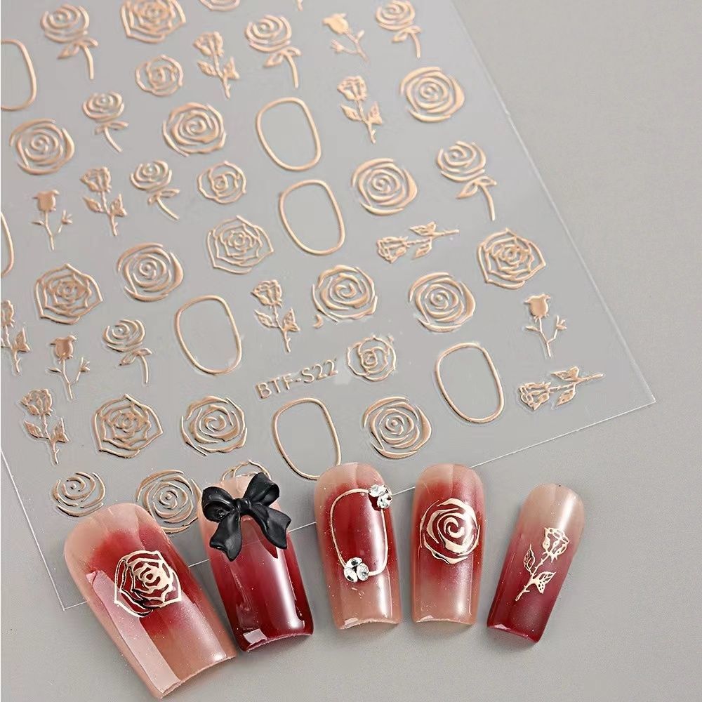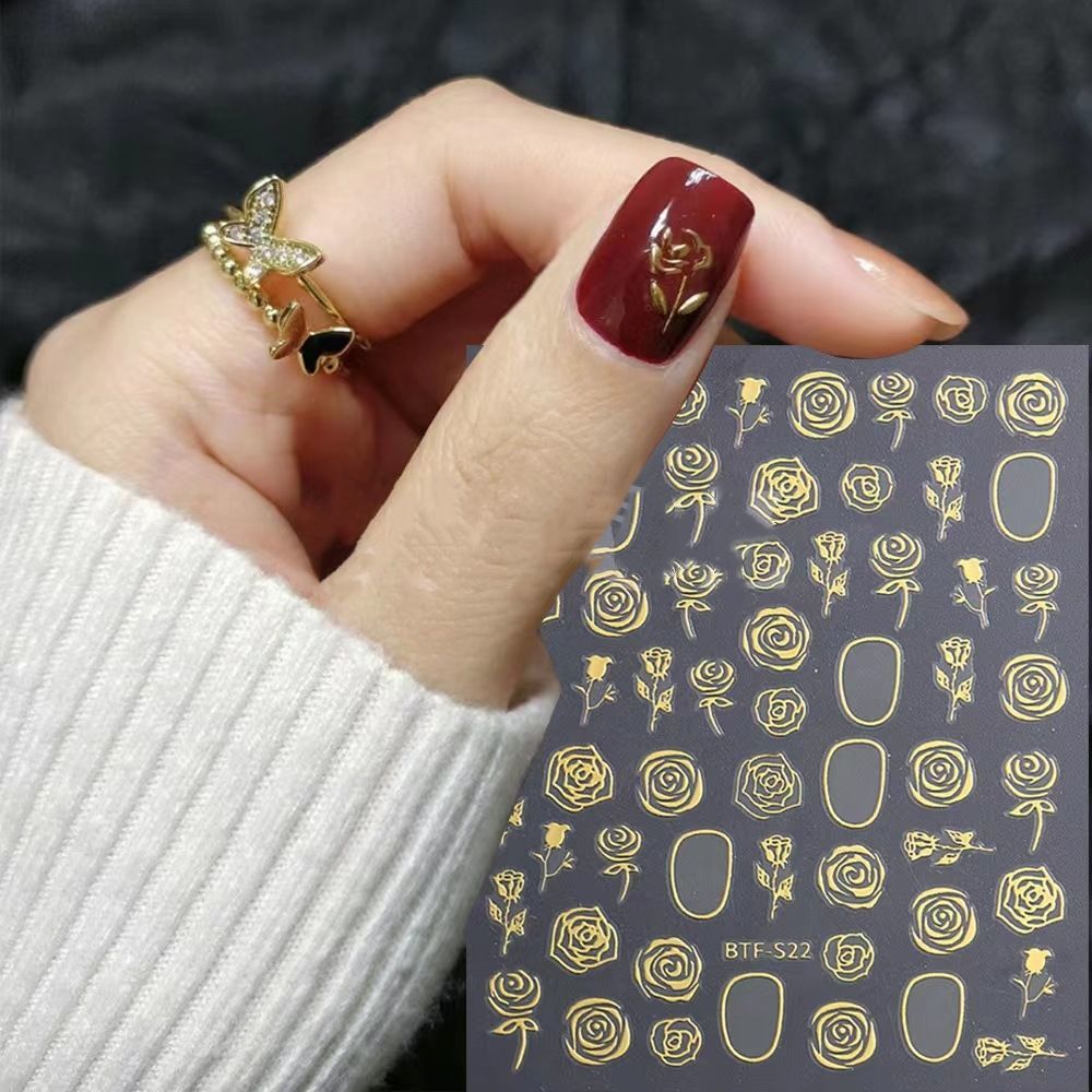 网红新款3D立体玫瑰花美甲贴纸爆款樱花卉贴纸小图案背胶指甲贴