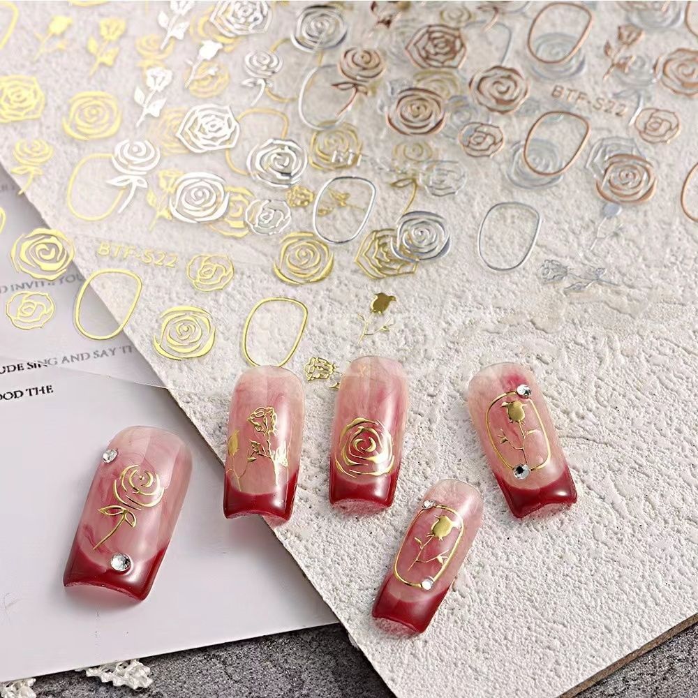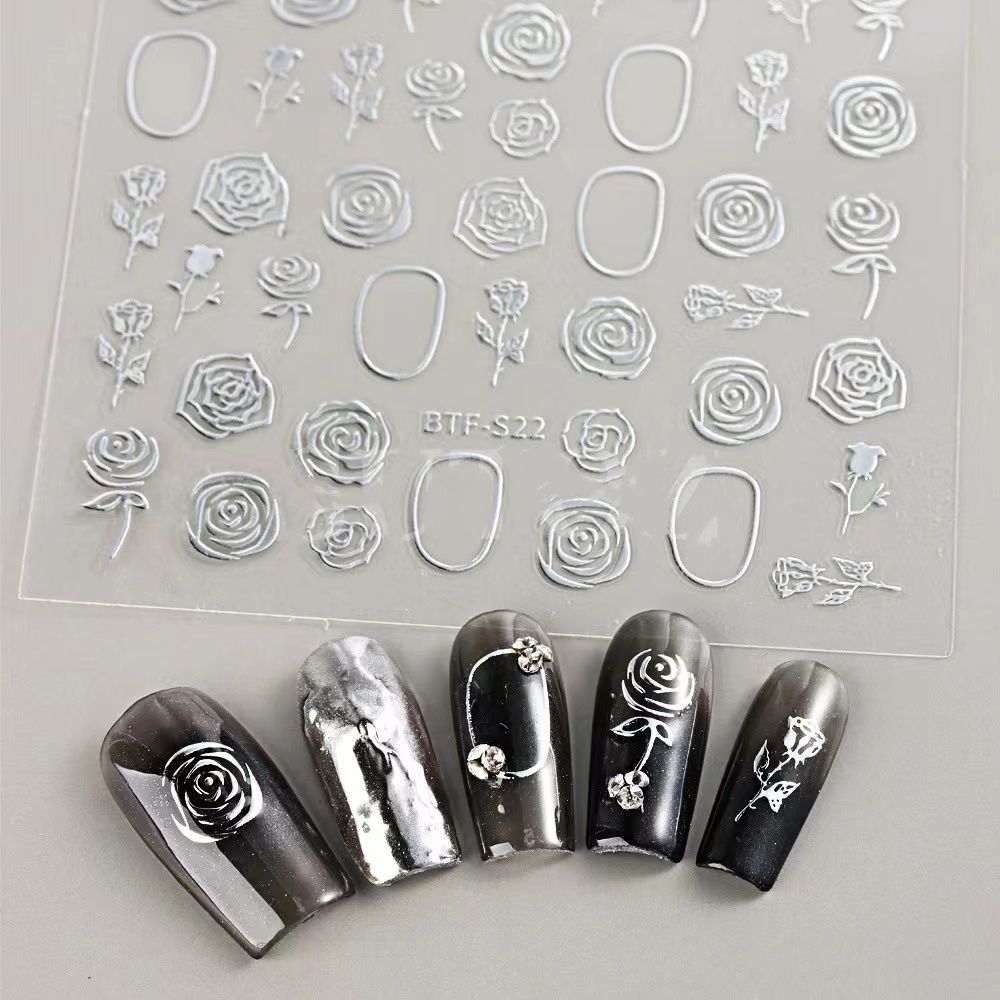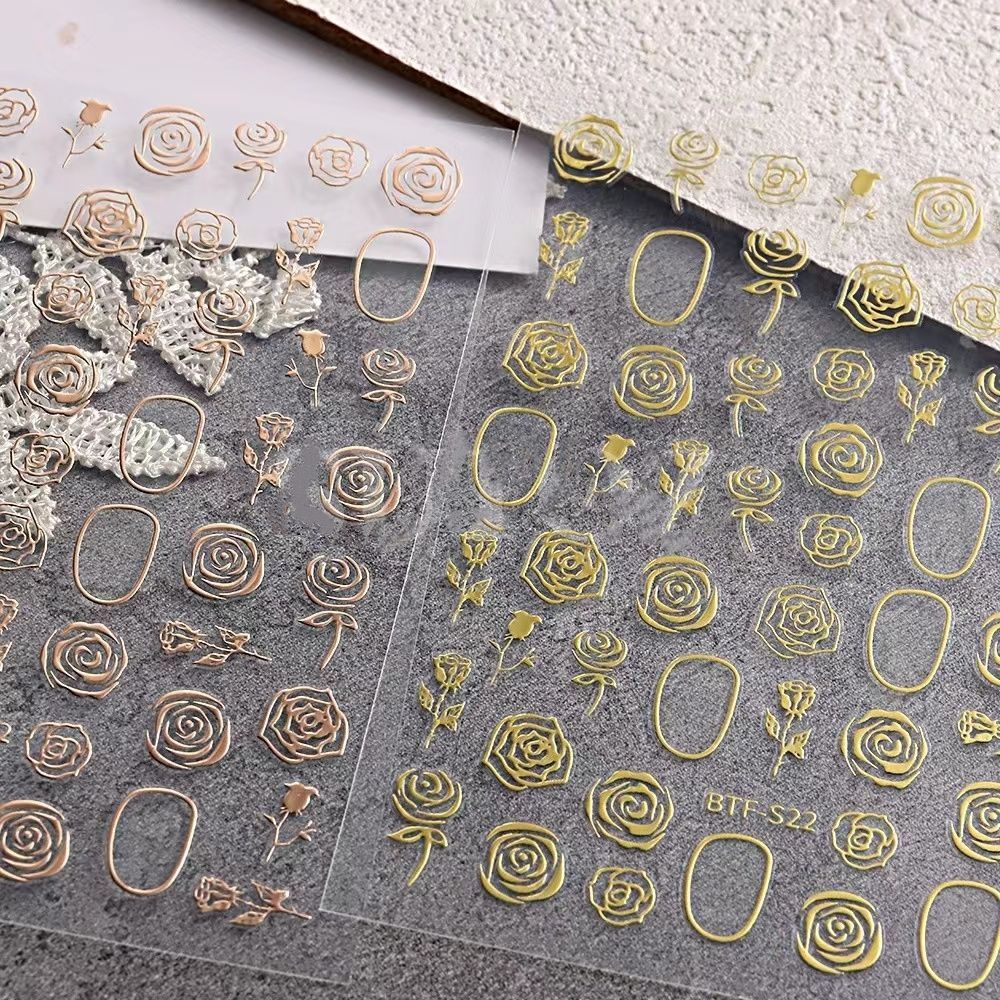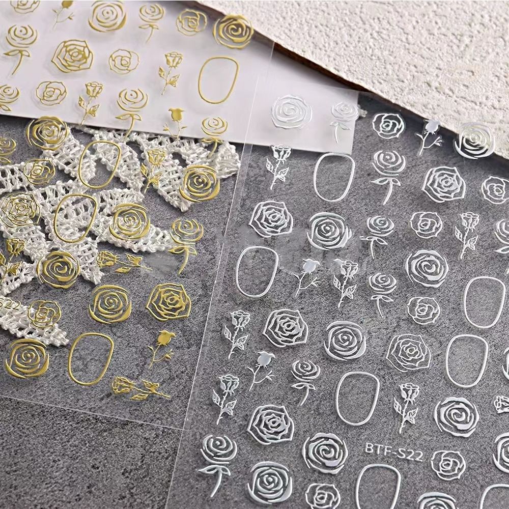 网红新款3D立体玫瑰花美甲贴纸爆款樱花卉贴纸小图案背胶指甲贴