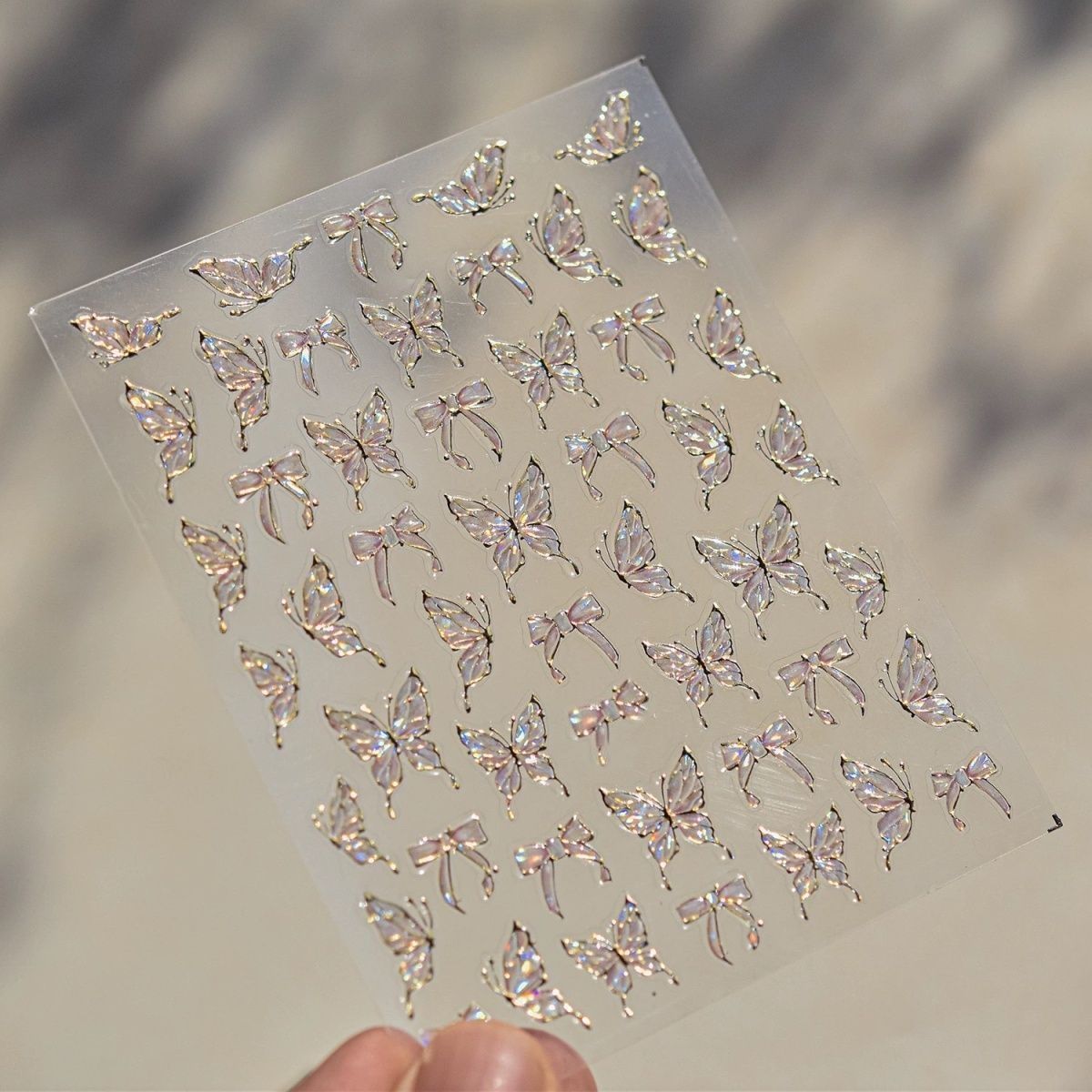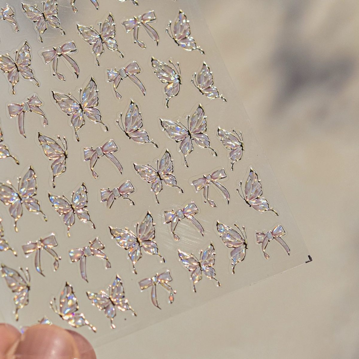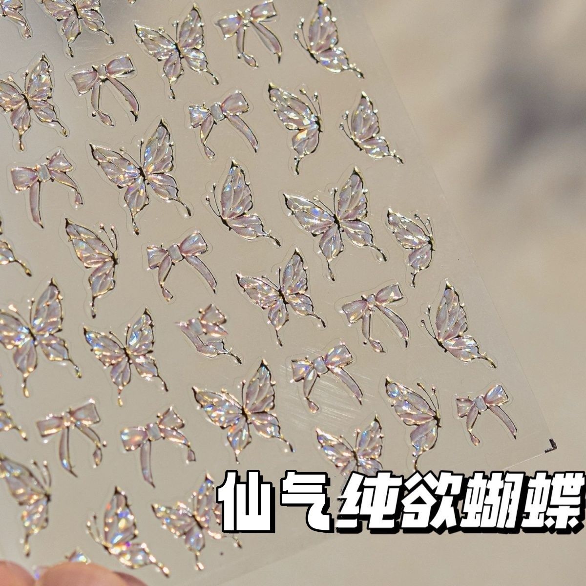 爆闪高级仙女蝴蝶美甲贴纸极光透亮冰晶仙气精致蝴蝶结背胶美甲贴