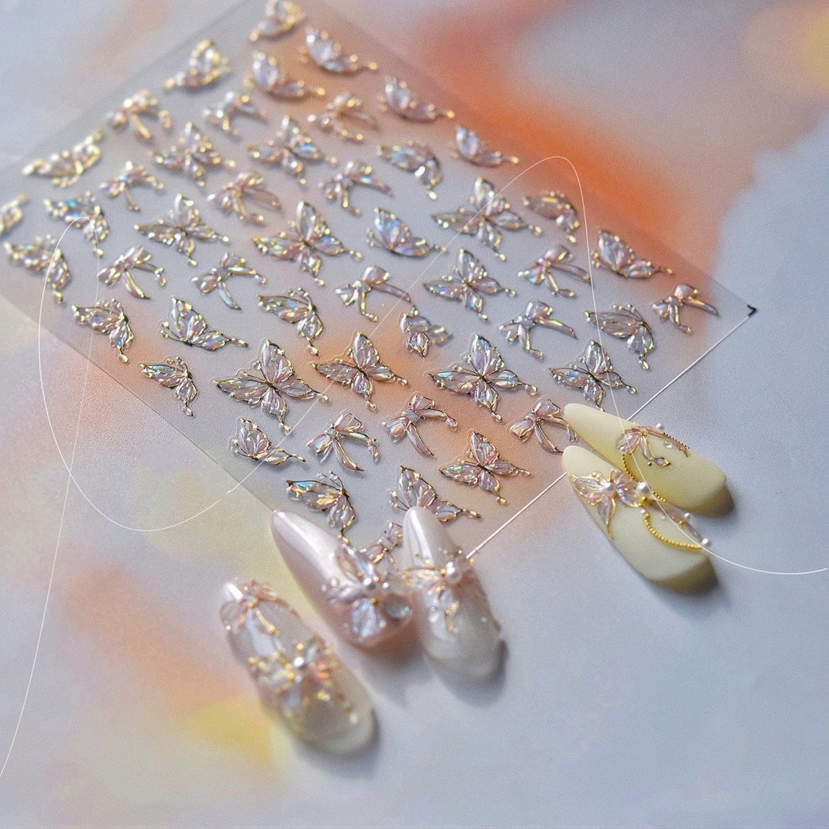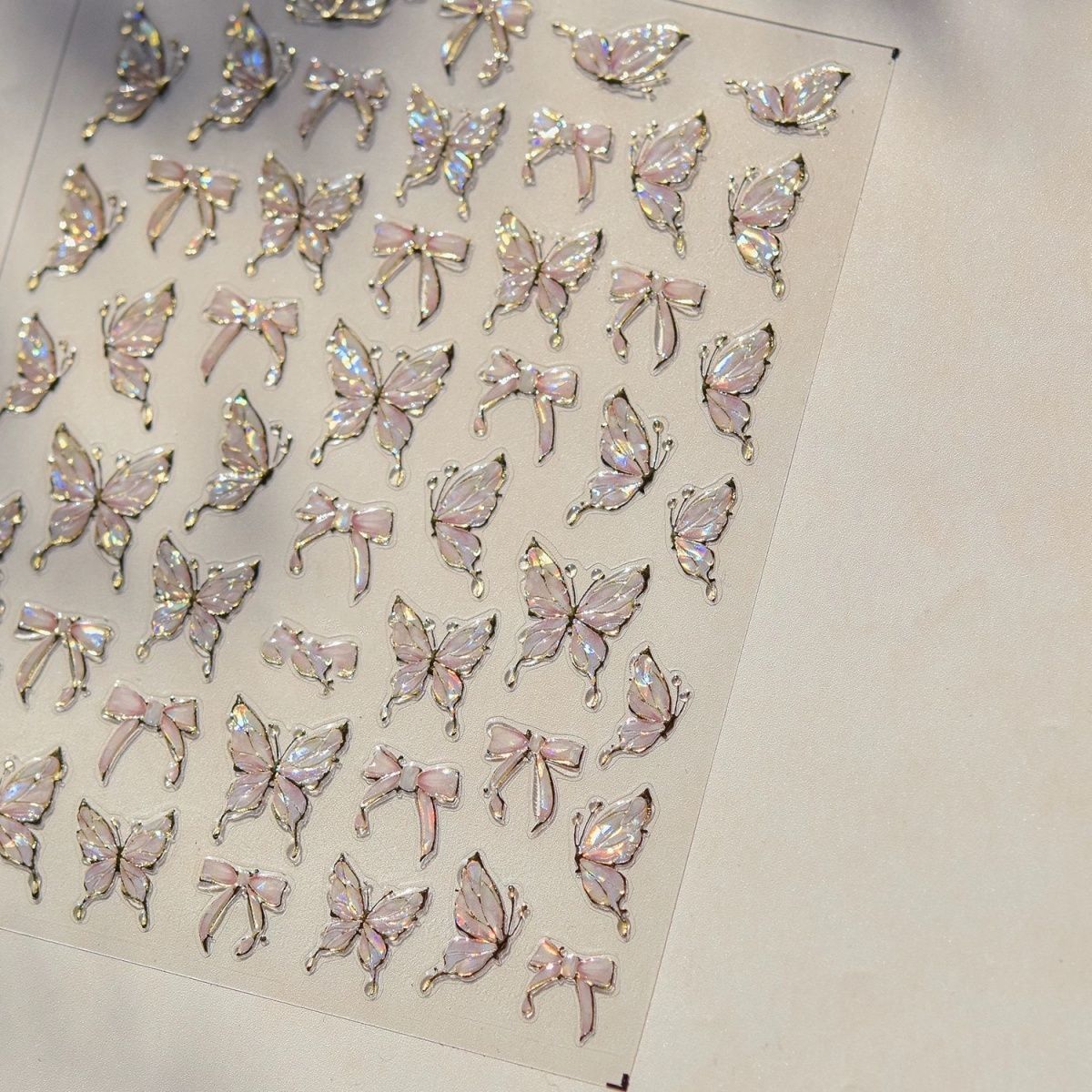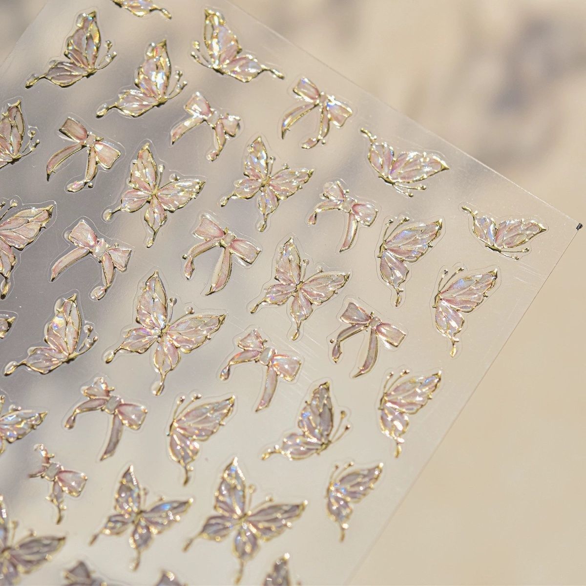 爆闪高级仙女蝴蝶美甲贴纸极光透亮冰晶仙气精致蝴蝶结背胶美甲贴
