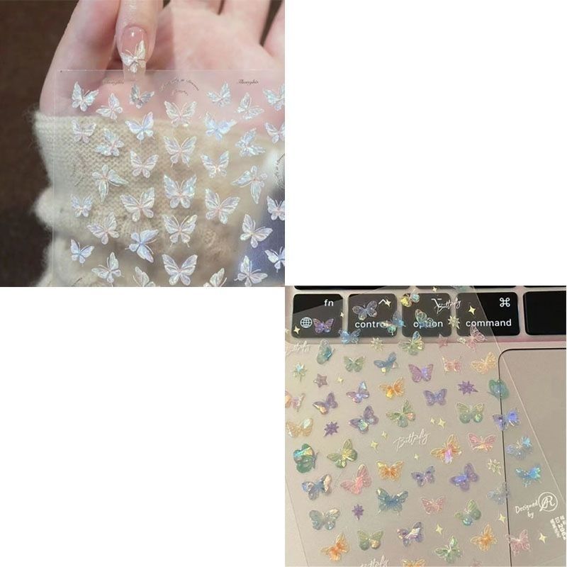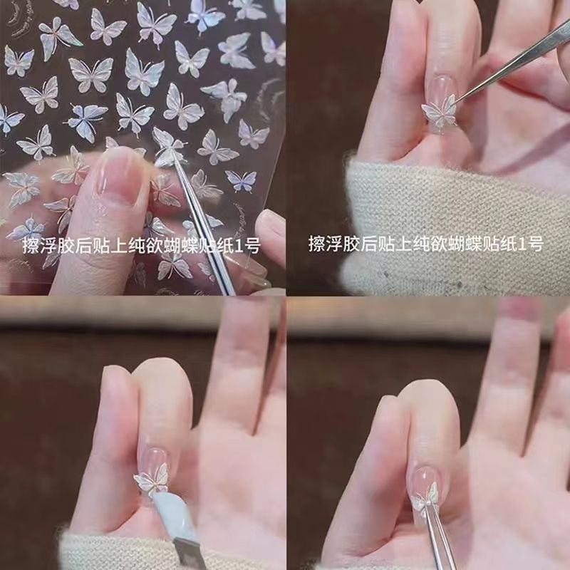 小红书爆款蝴蝶翼流光贴纸高级平面美甲贴纸缤纷蝴蝶仙女指甲贴纸