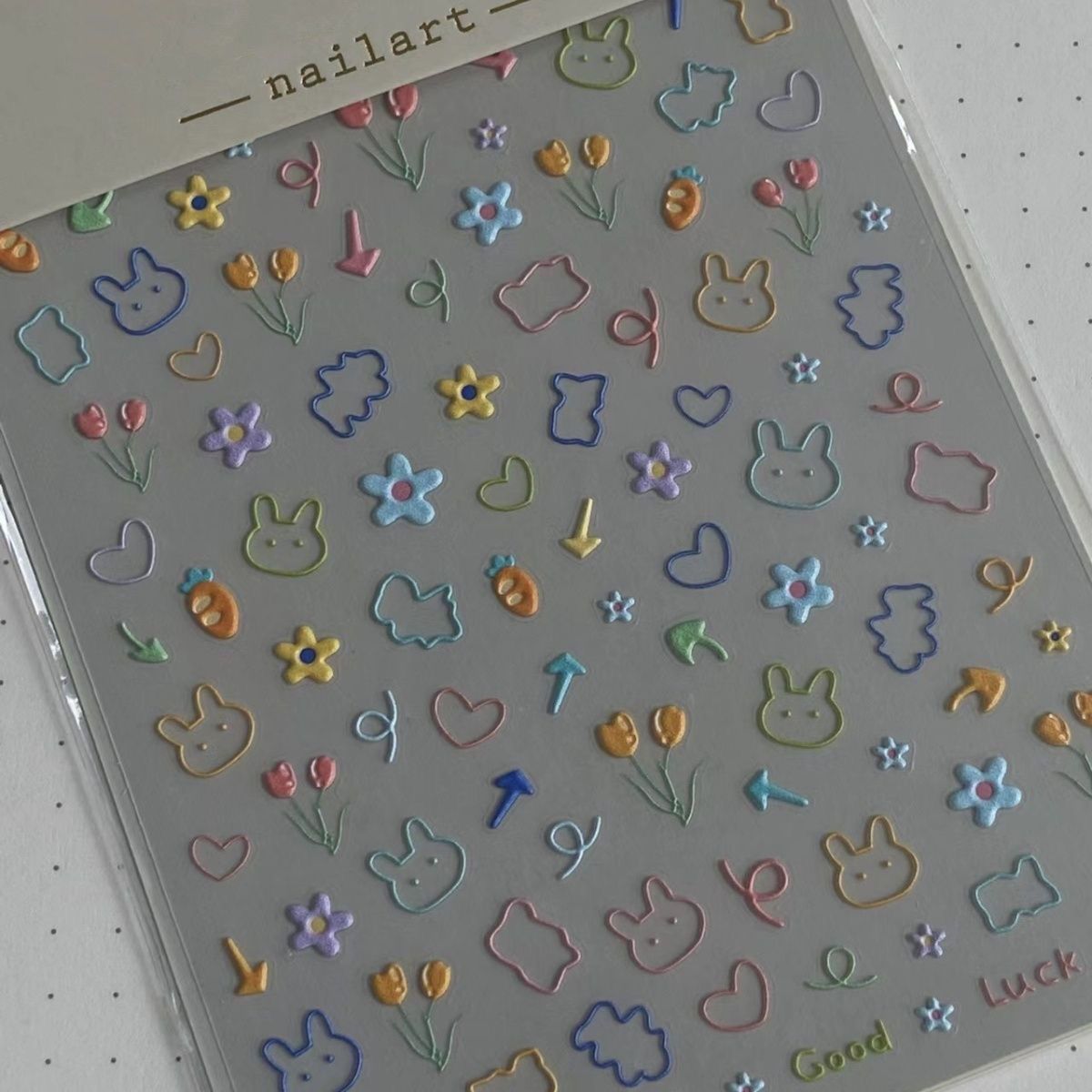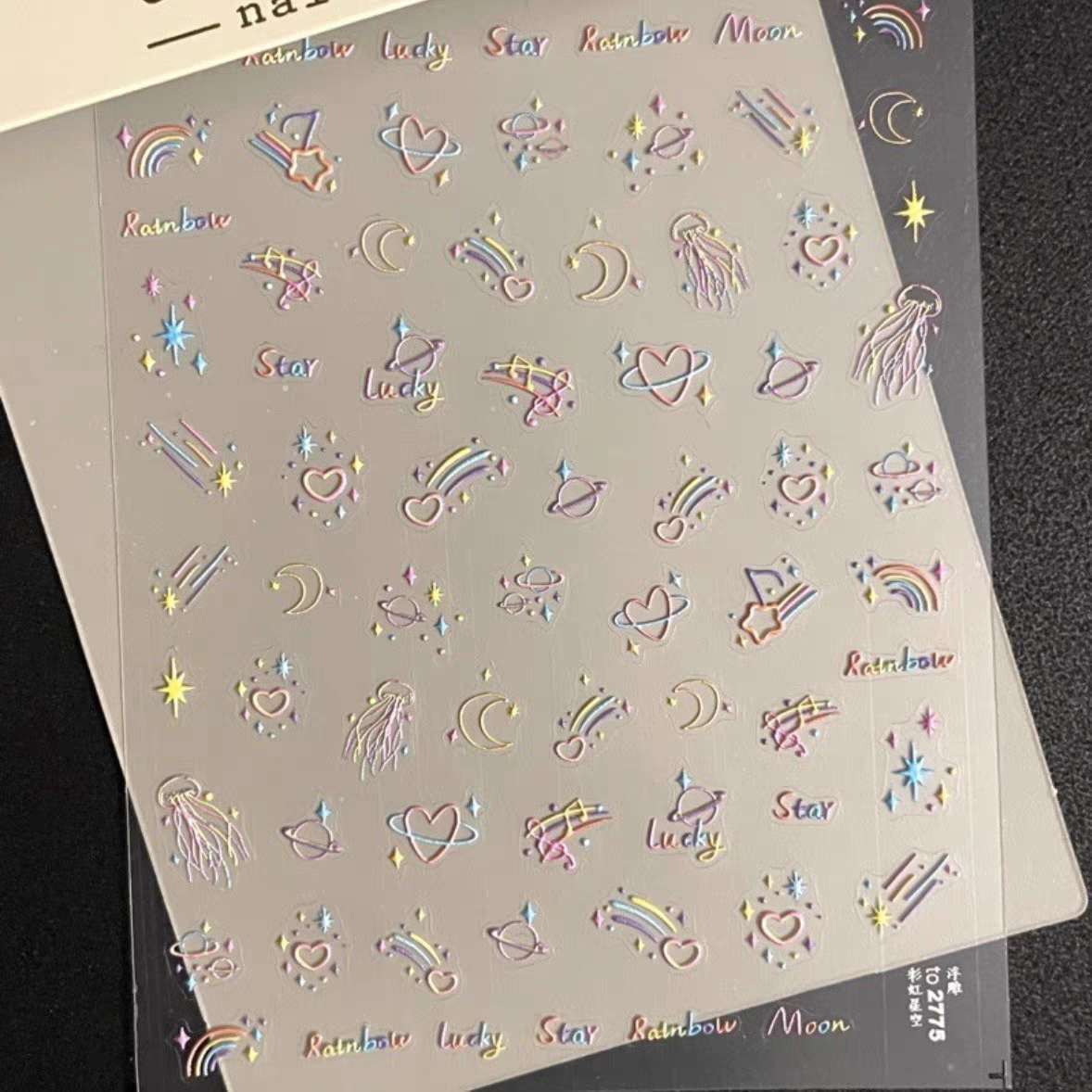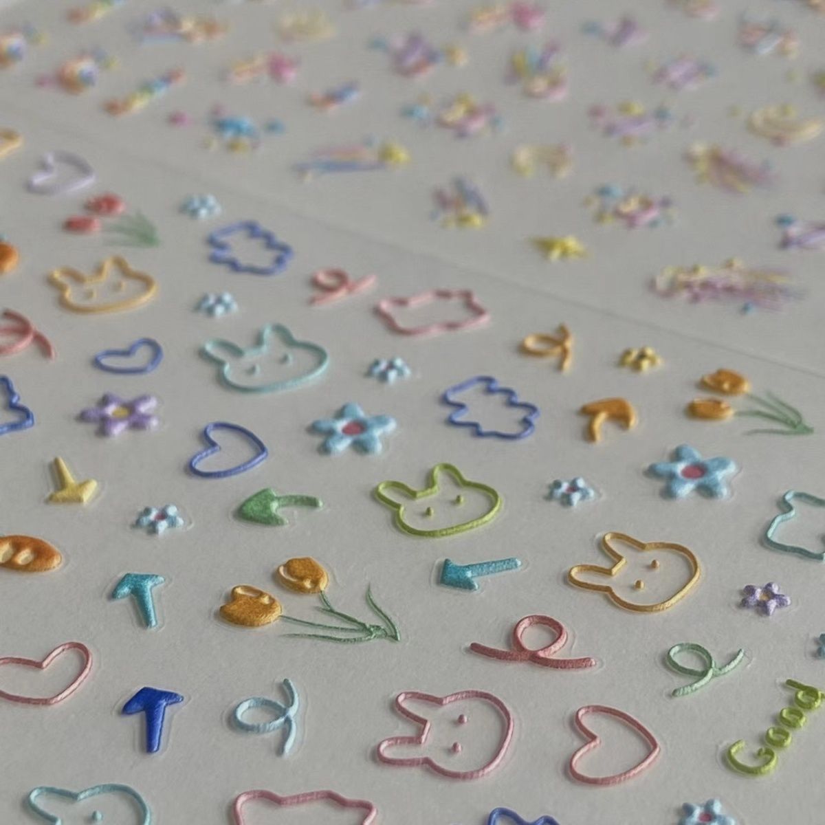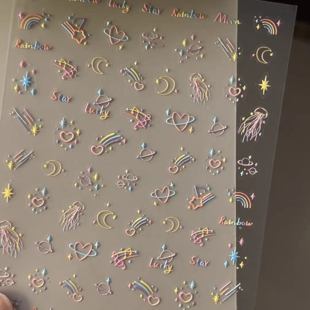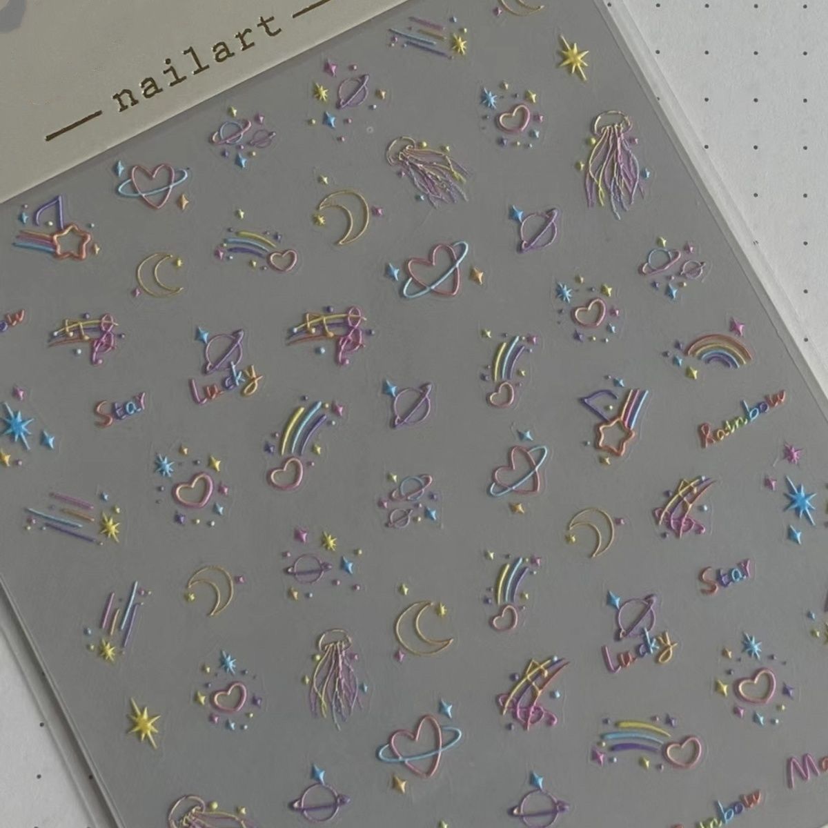 小红书同款童趣表情美甲贴星球宇宙星空银河diy涂鸦浮雕立体贴纸
