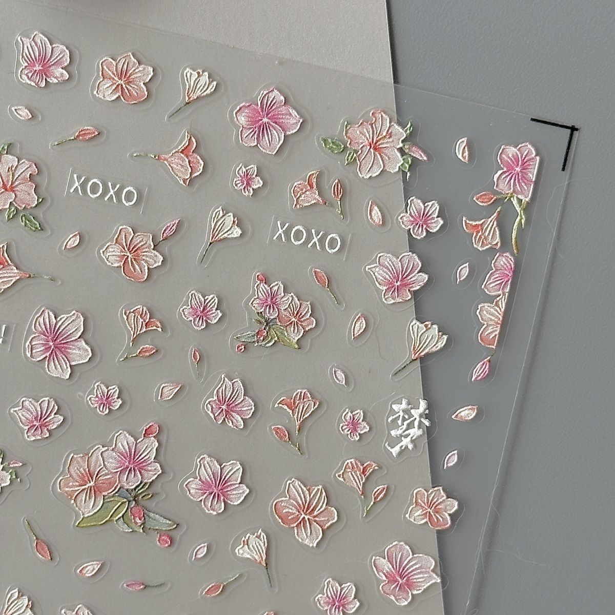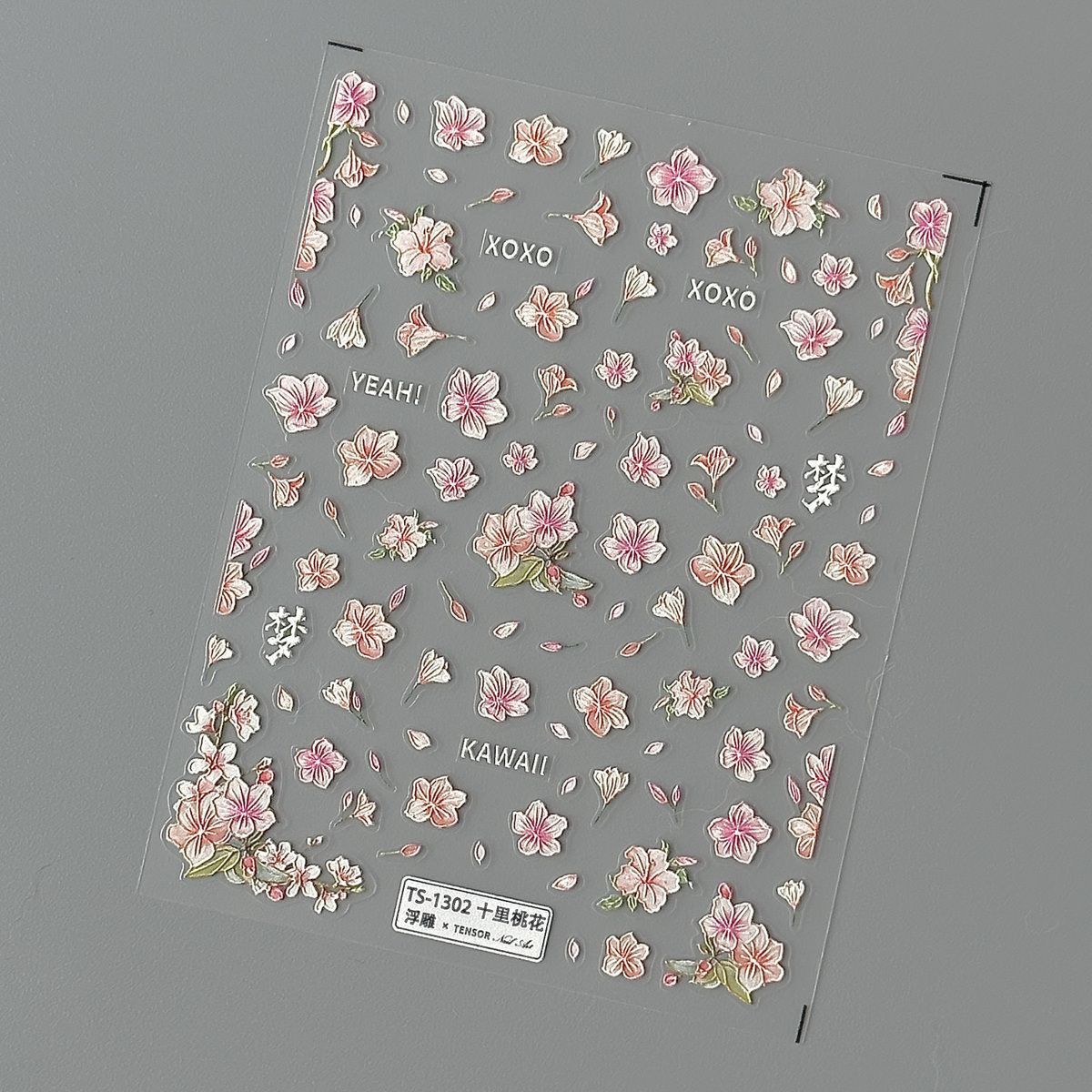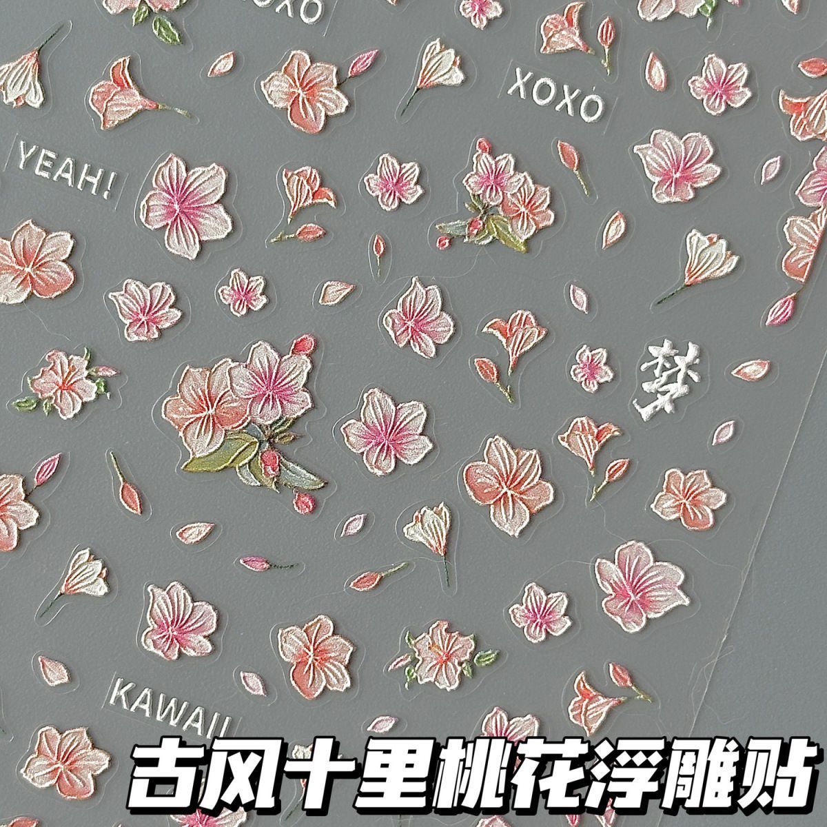 小红书爆款古风十里桃花指甲贴浮雕国风学生diy防水美甲装饰贴纸