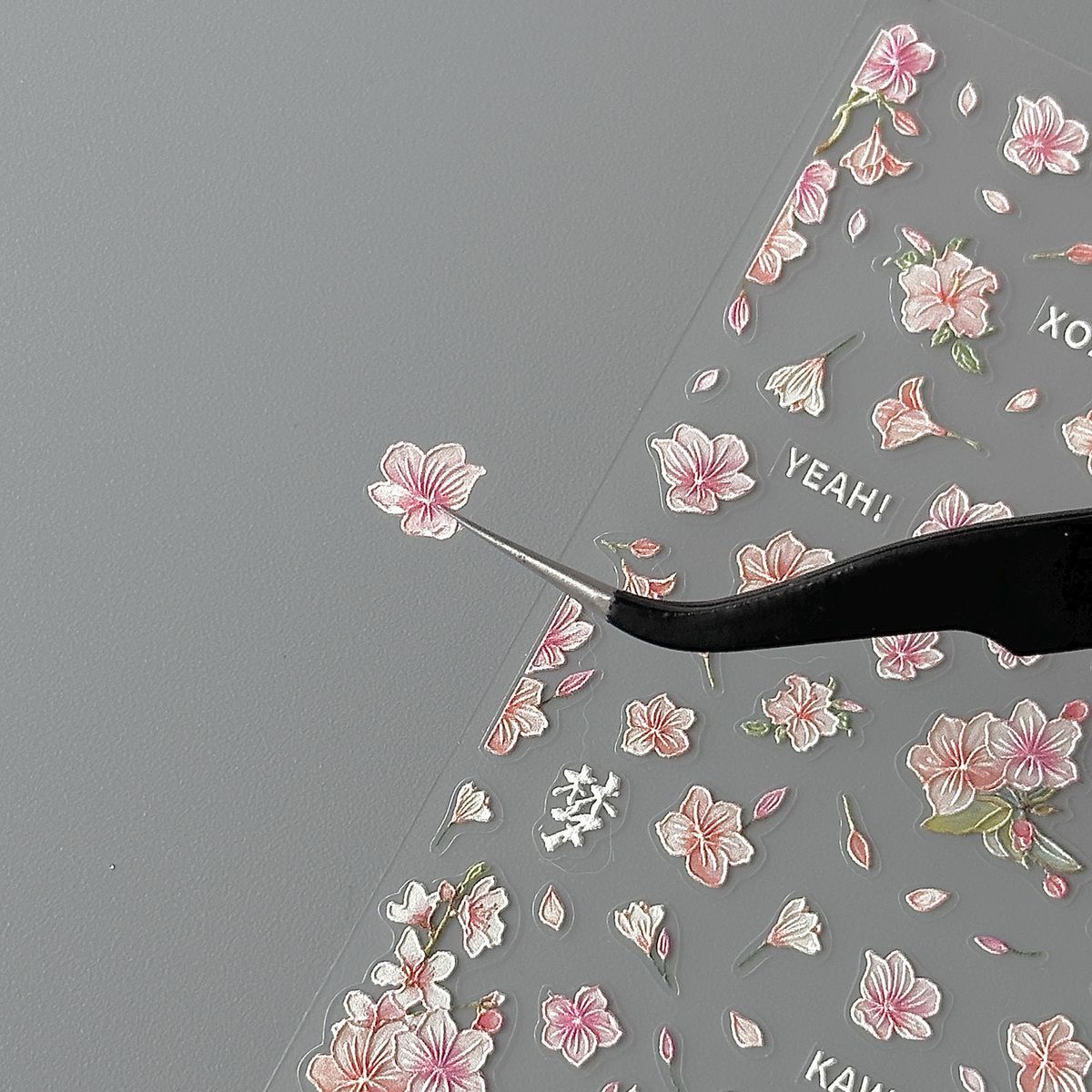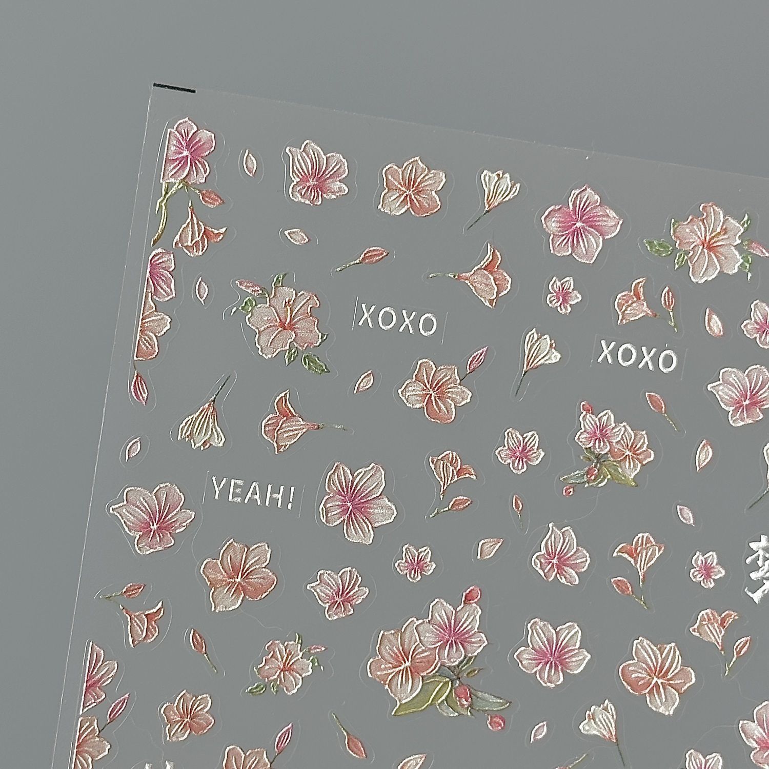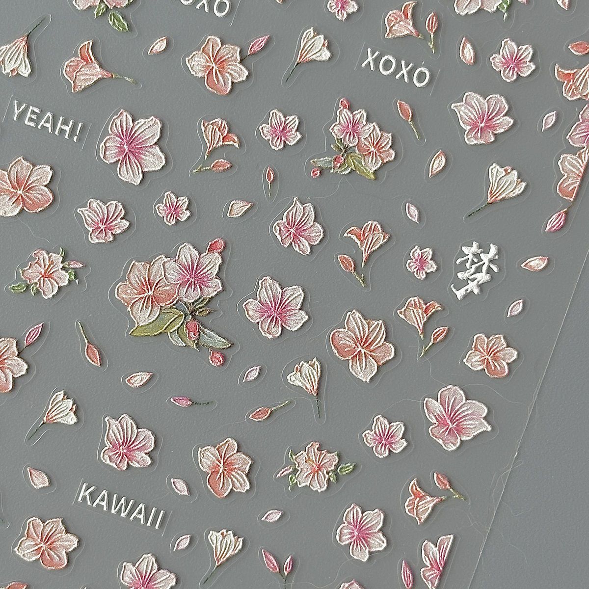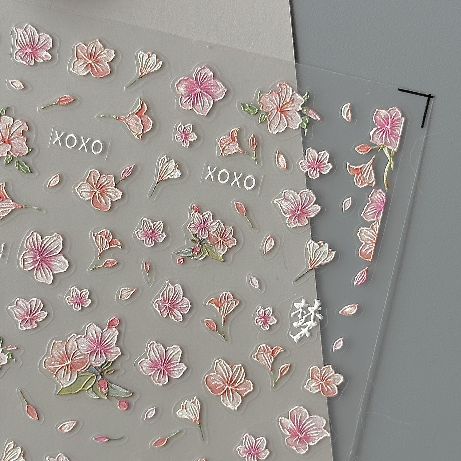 小红书爆款古风十里桃花指甲贴浮雕国风学生diy防水美甲装饰贴纸
