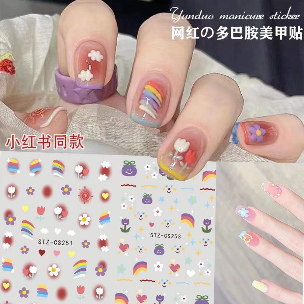 网红爆款夏日多巴胺女美甲贴纸糖果色小彩虹可爱小清新指甲贴片