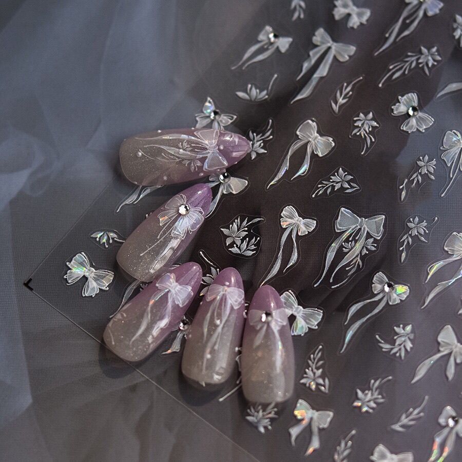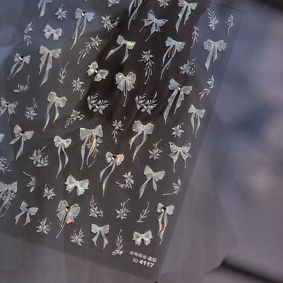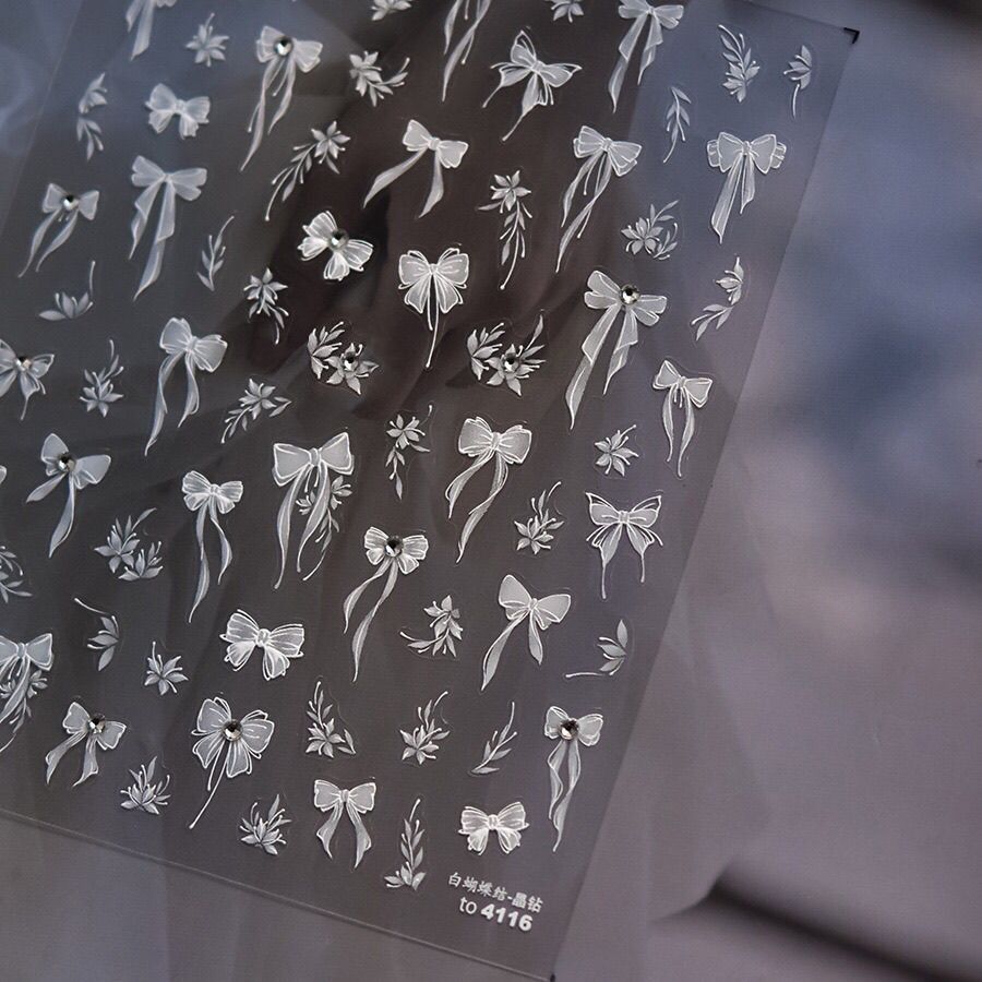晶钻贝壳光白蝴蝶结美甲贴网红ins珍珠优雅流苏长蝴蝶结指甲装饰